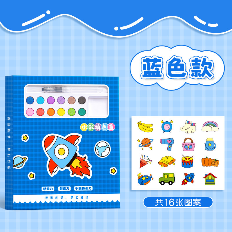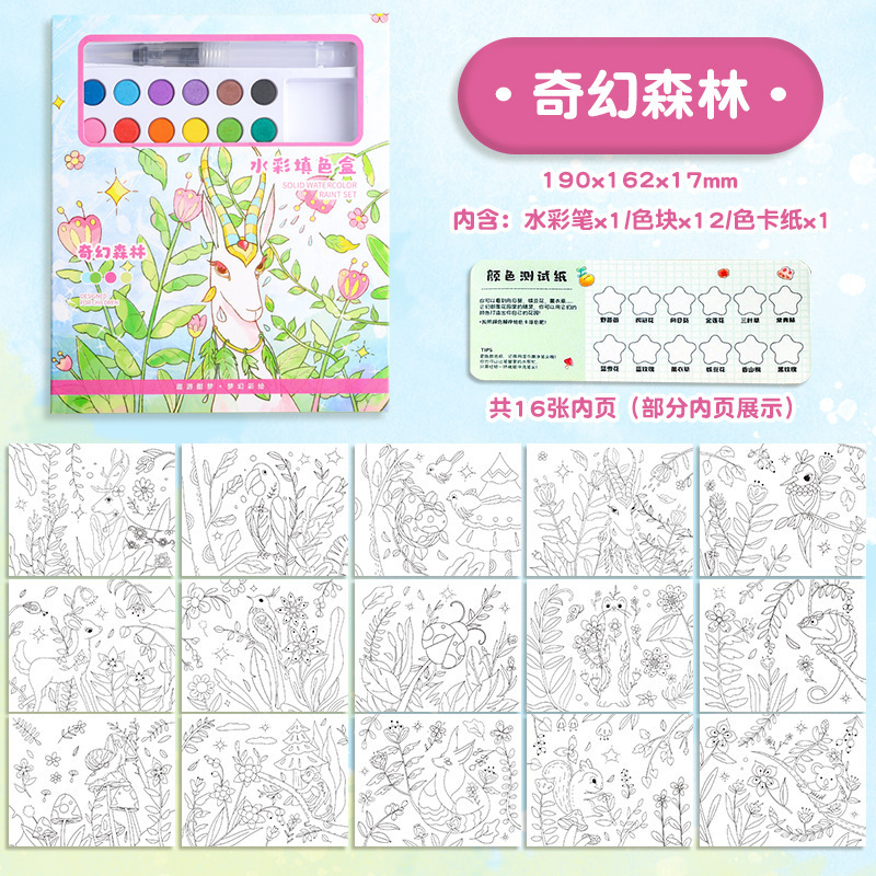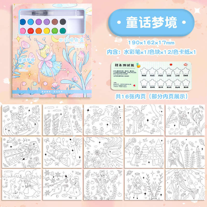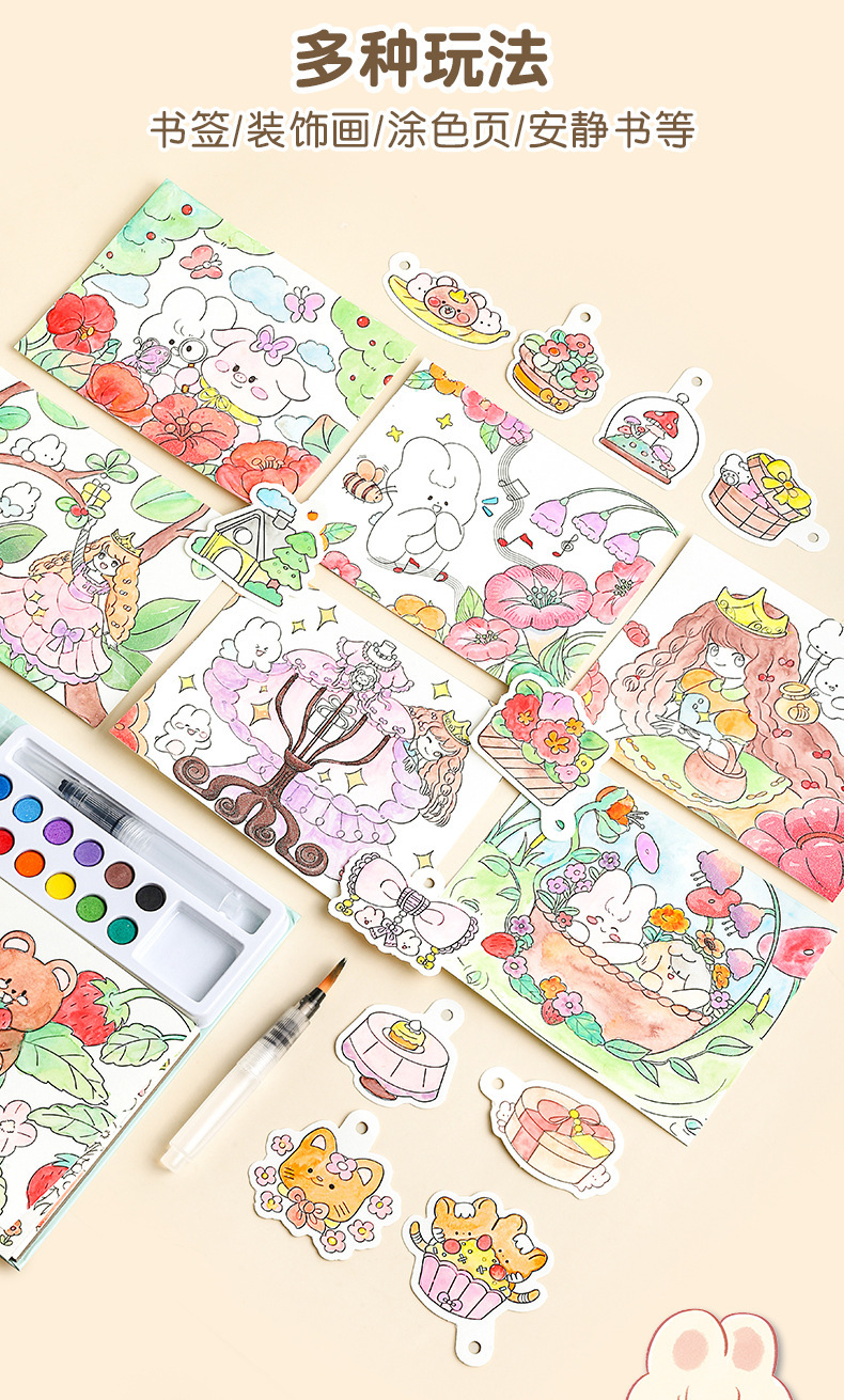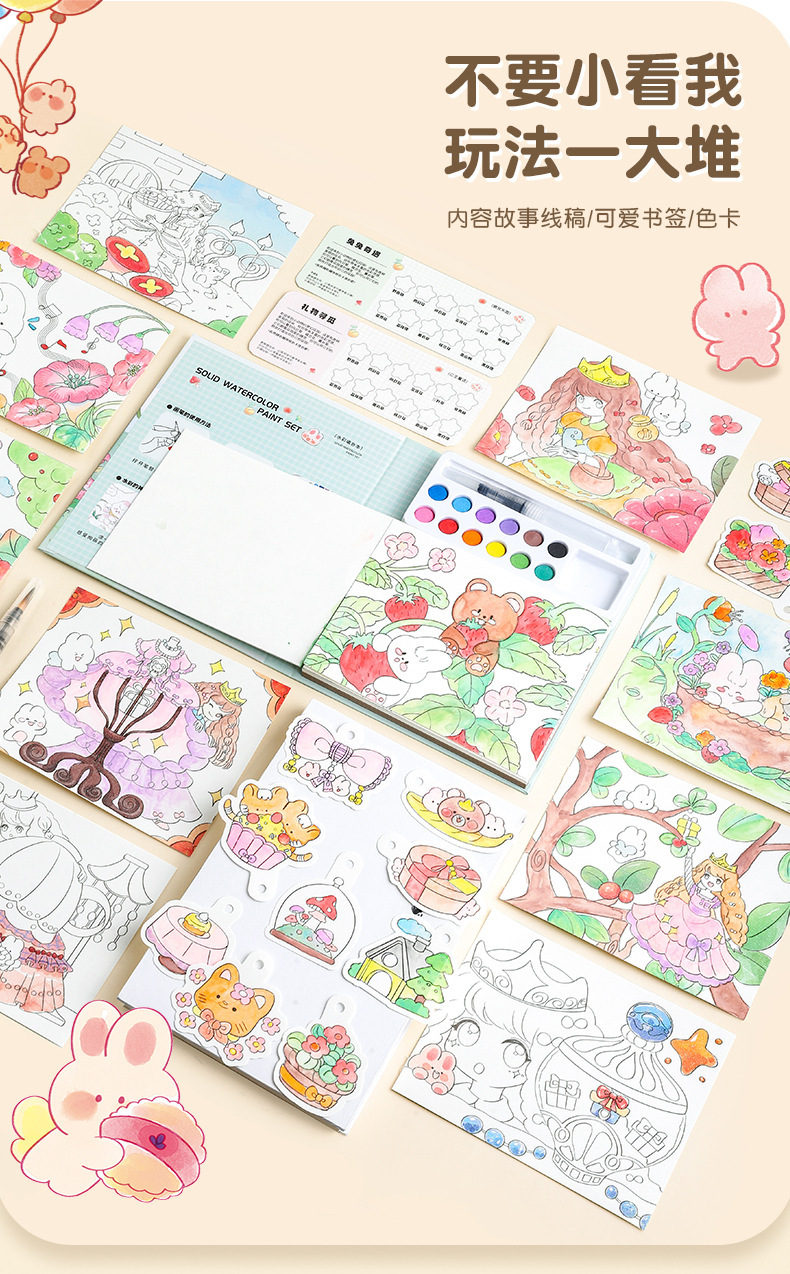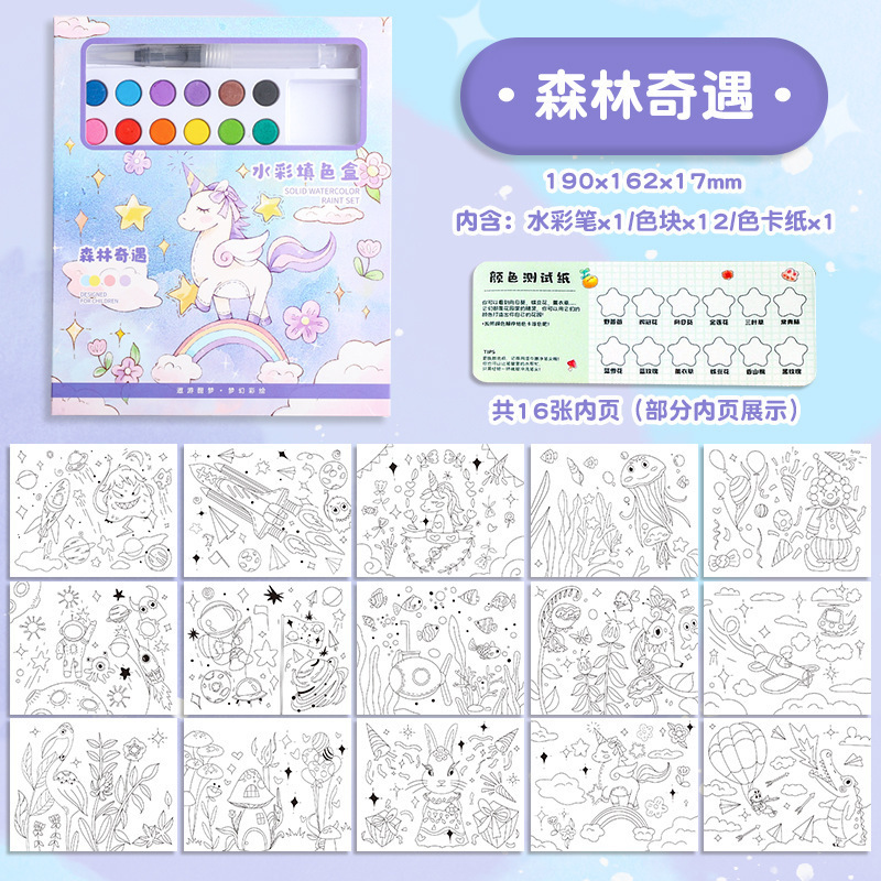 新款儿童涂色diy画本自带画笔颜料水彩画填色本ins风便携绘画套装