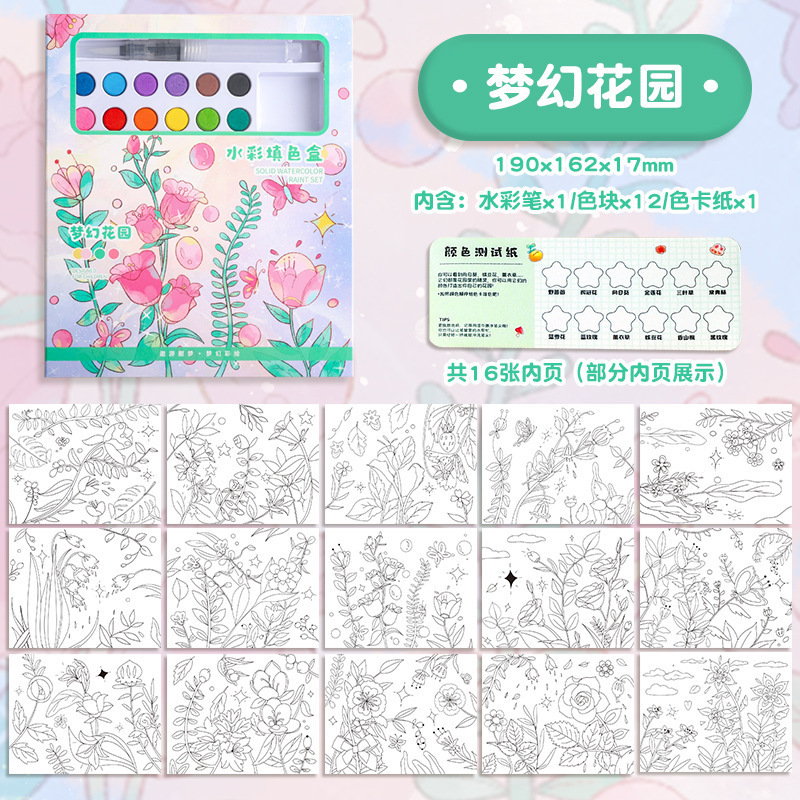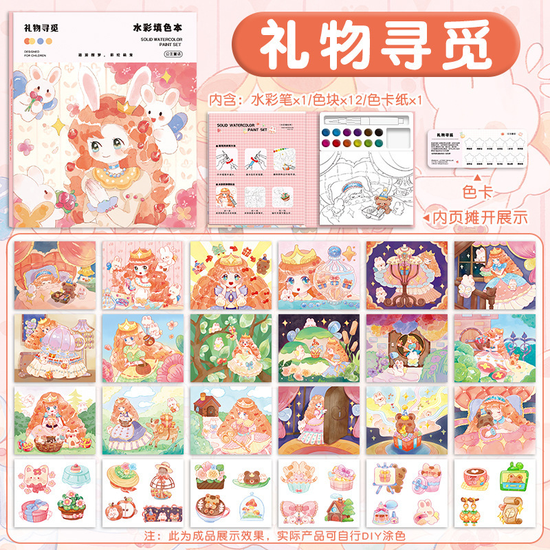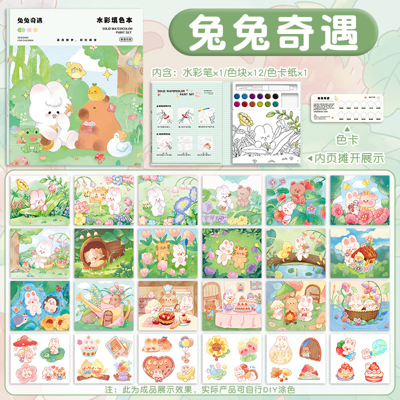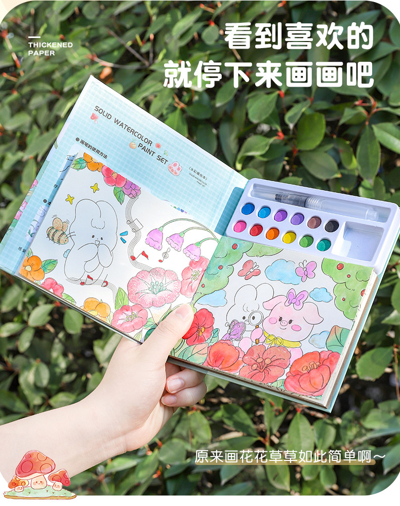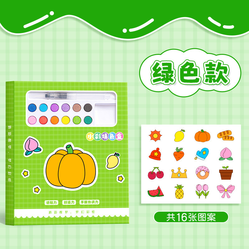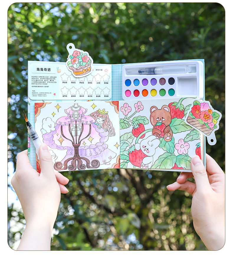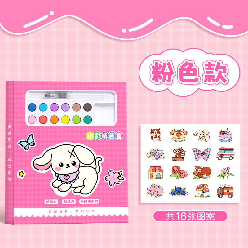 新款儿童涂色diy画本自带画笔颜料水彩画填色本ins风便携绘画套装