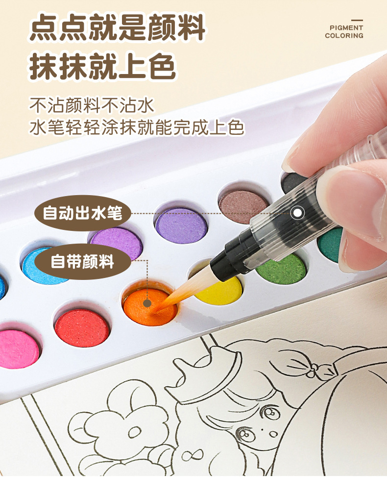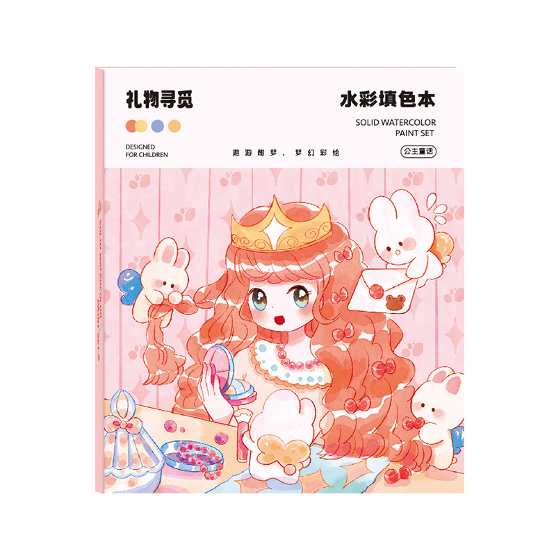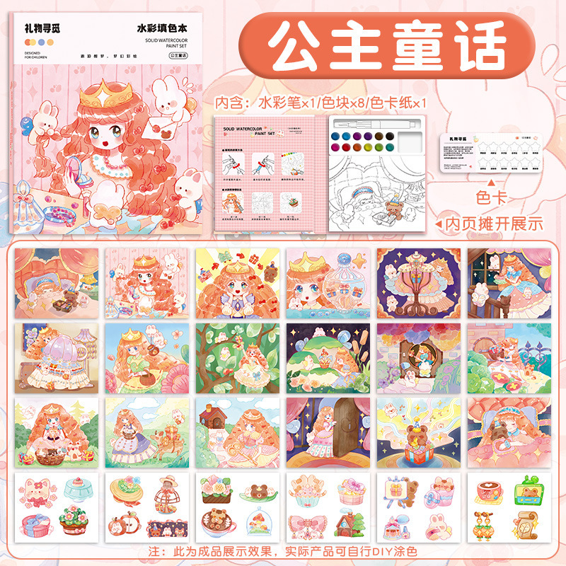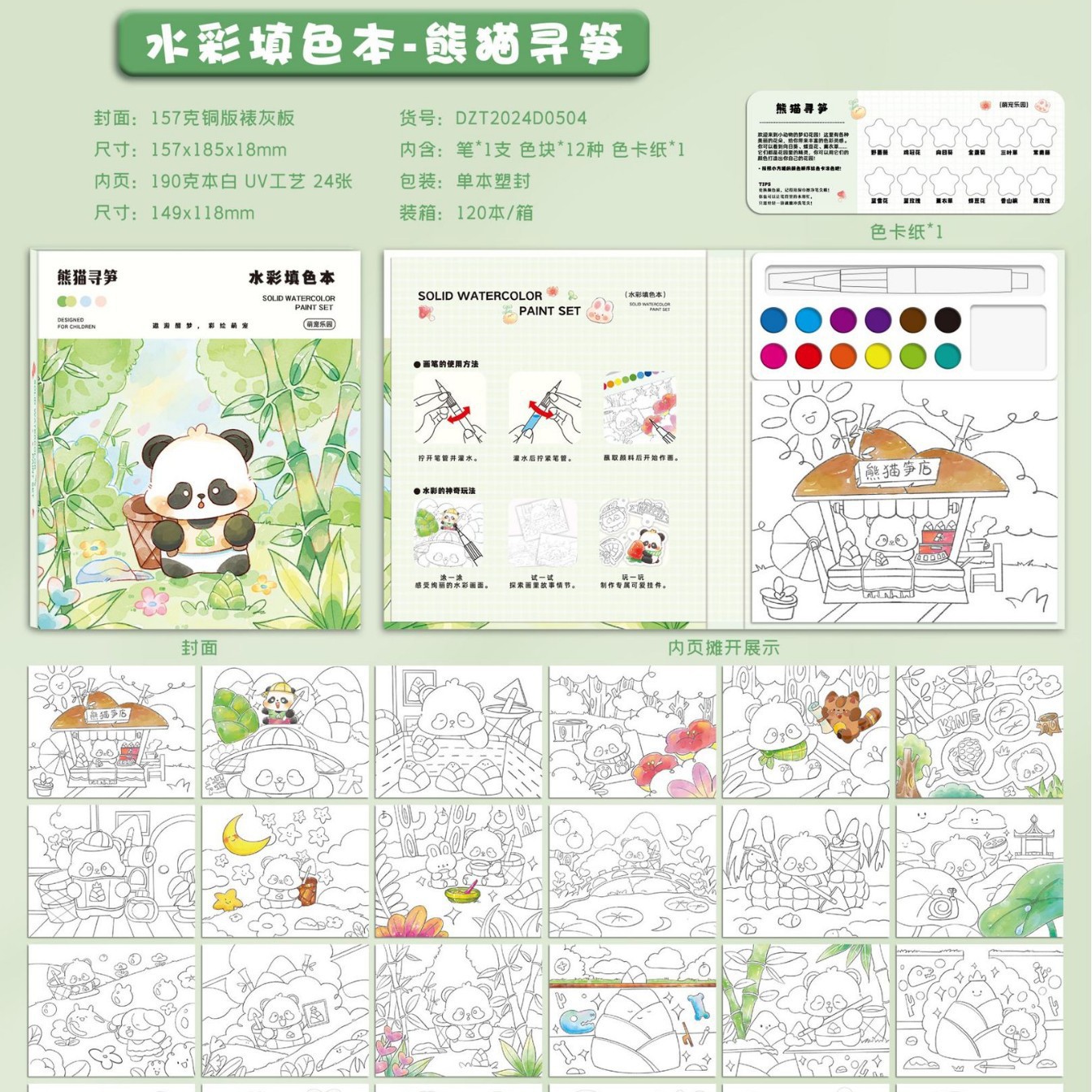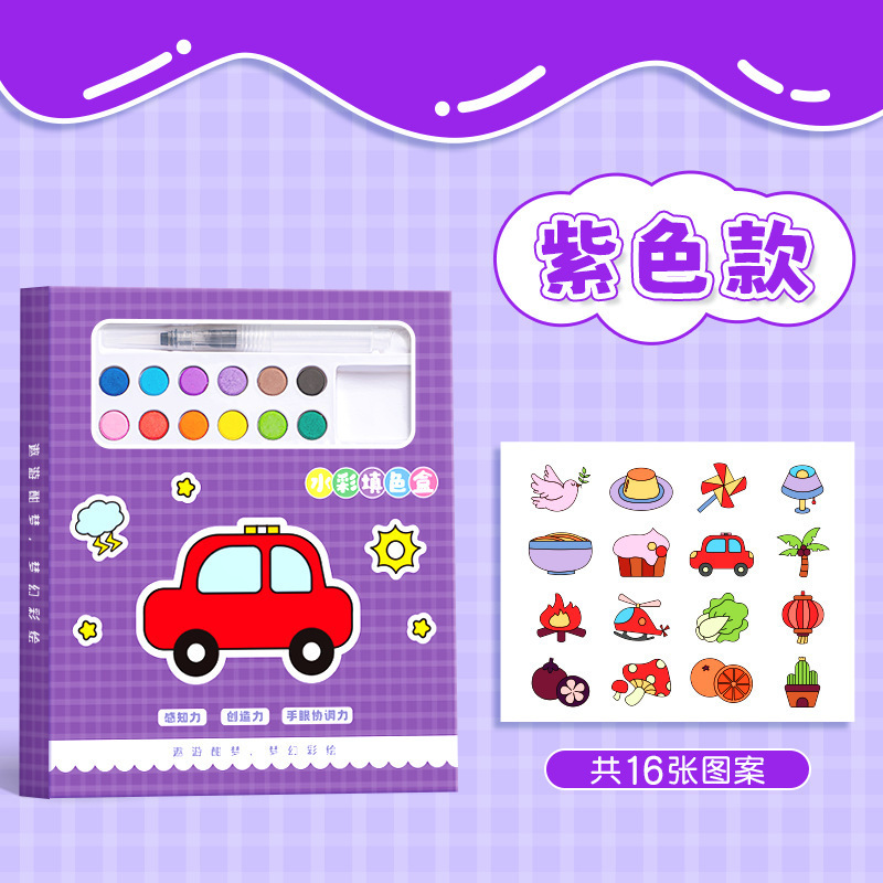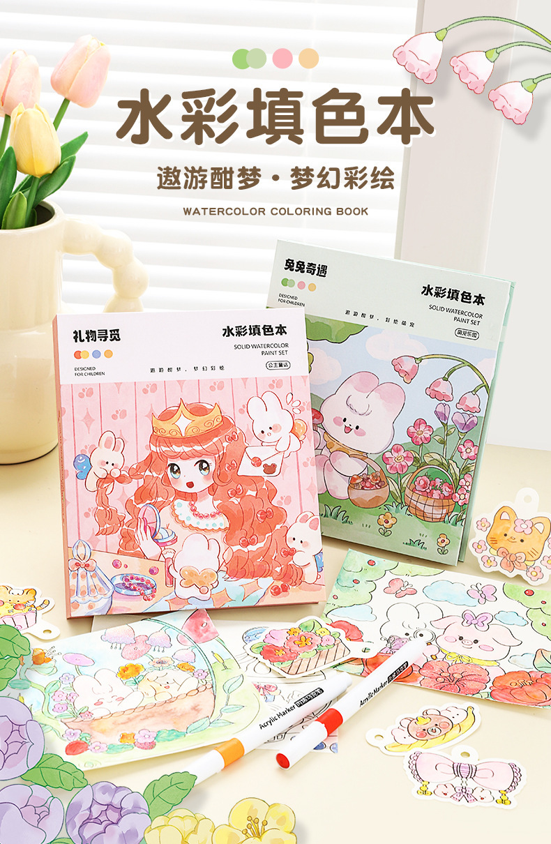 新款儿童涂色diy画本自带画笔颜料水彩画填色本ins风便携绘画套装