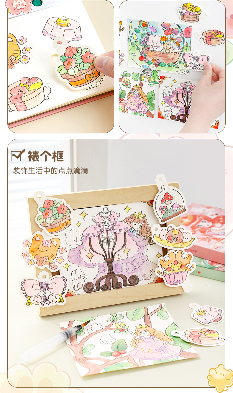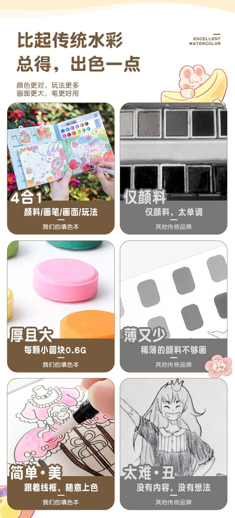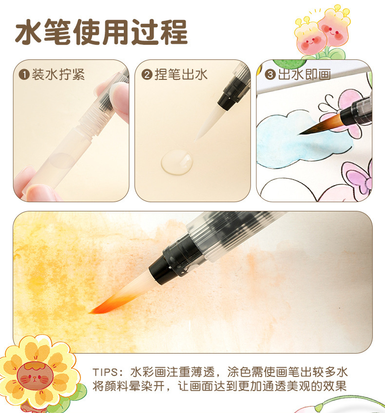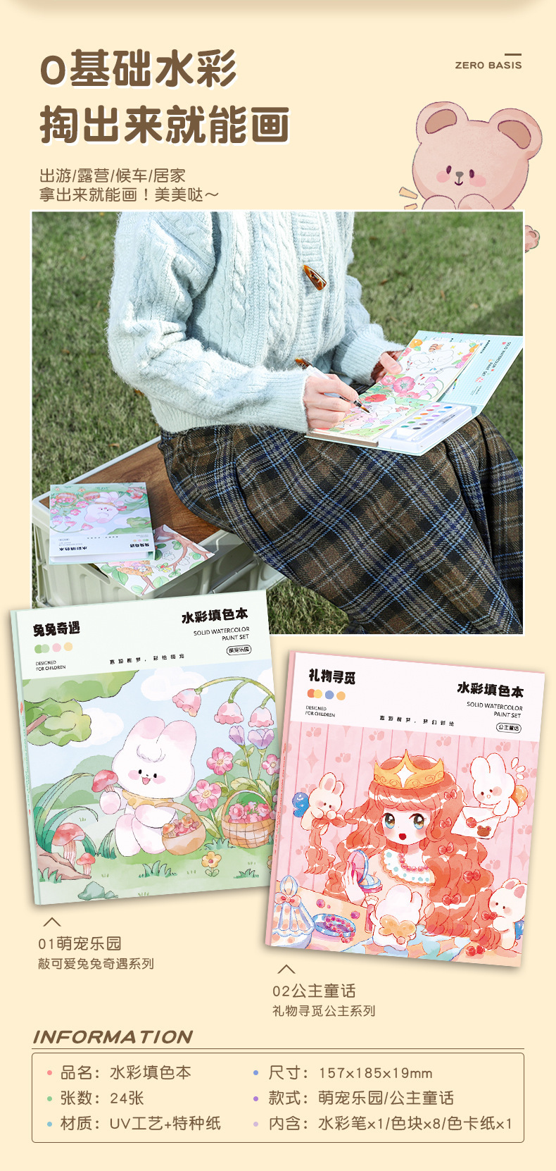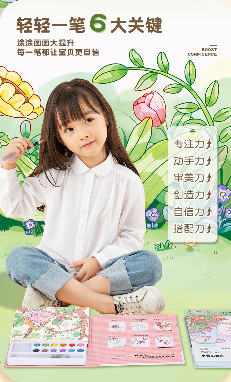 新款儿童涂色diy画本自带画笔颜料水彩画填色本ins风便携绘画套装