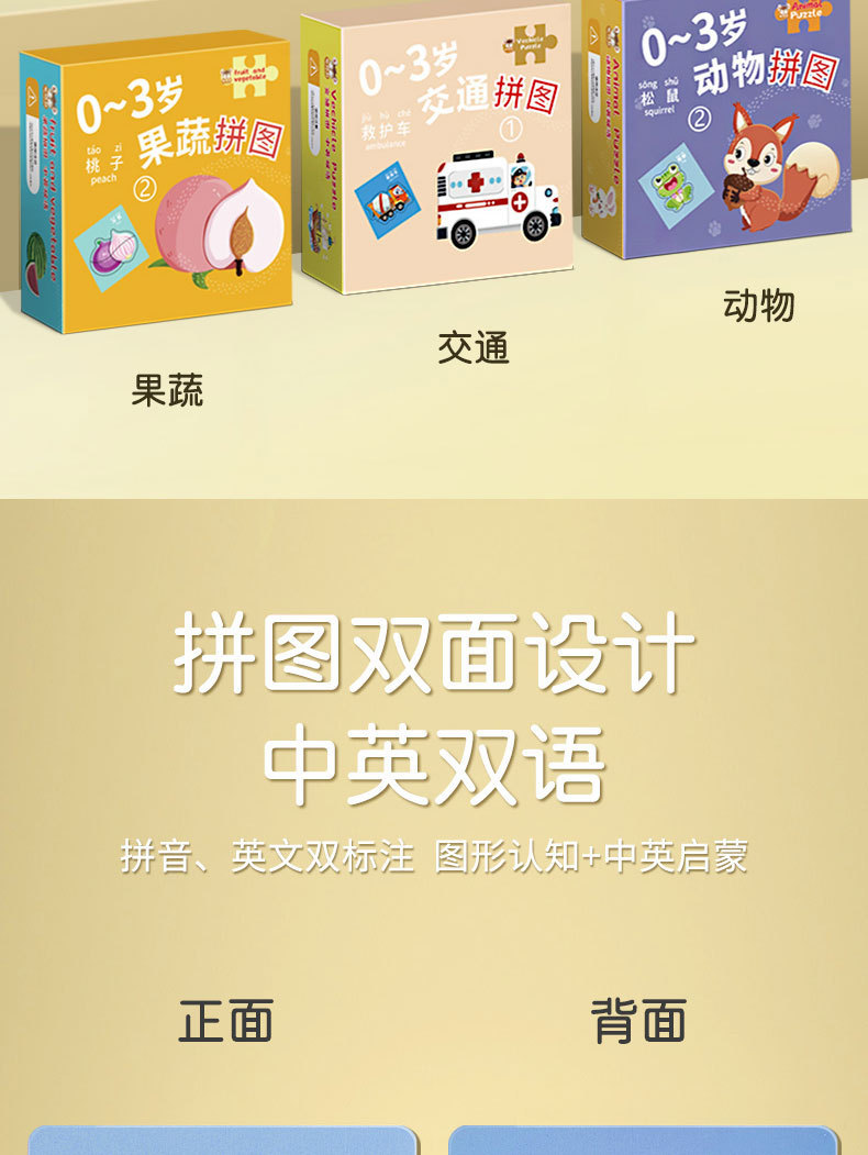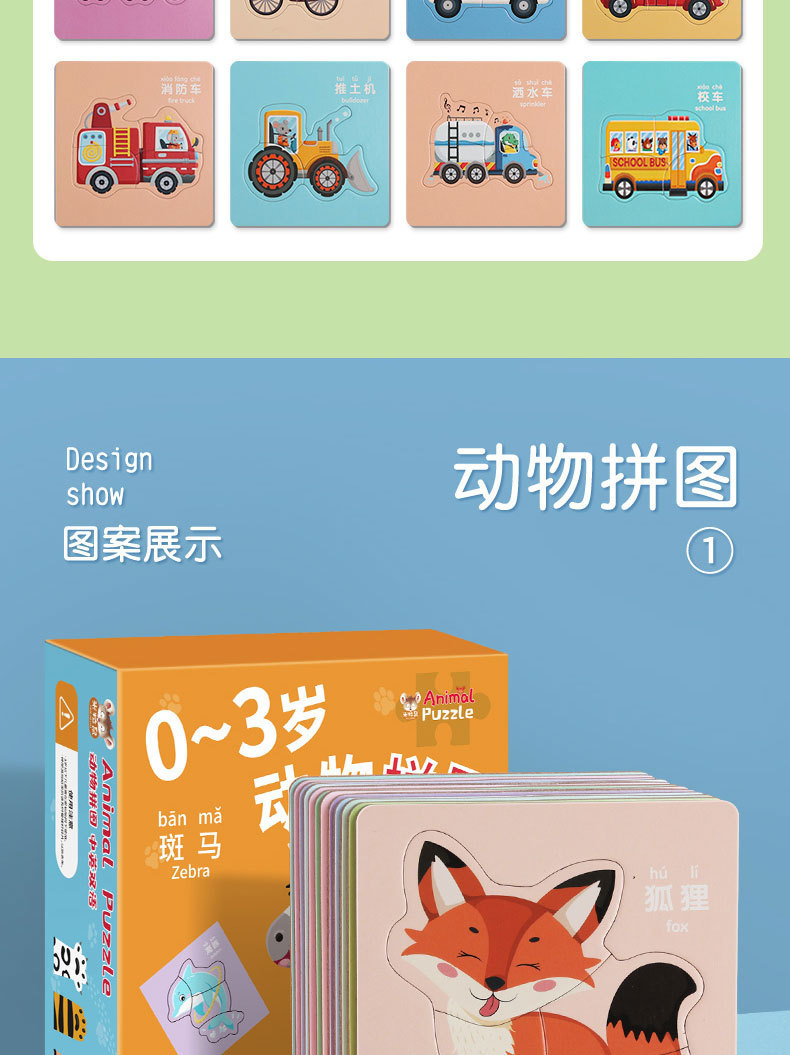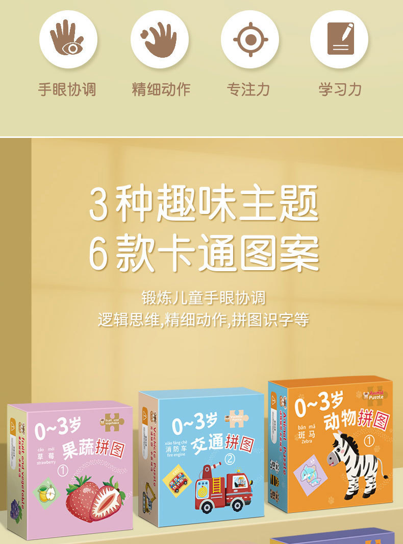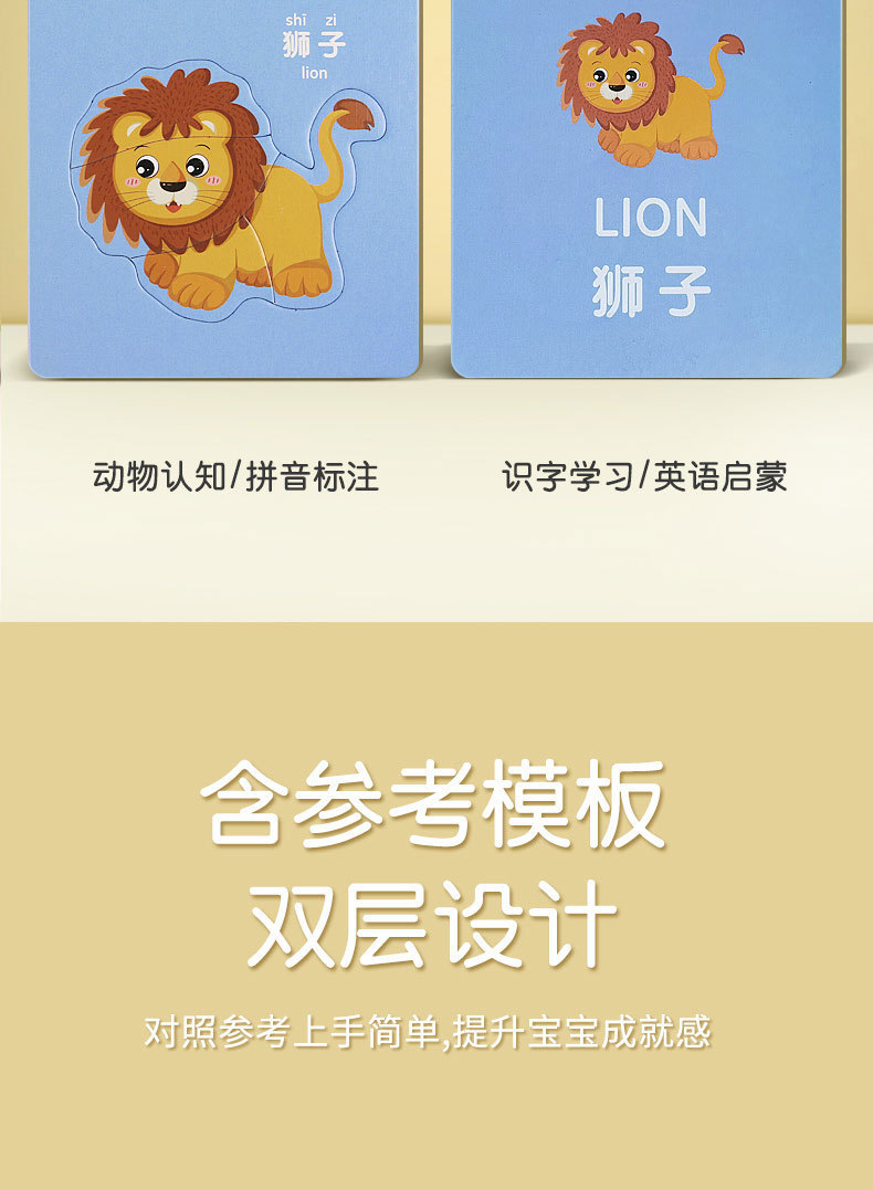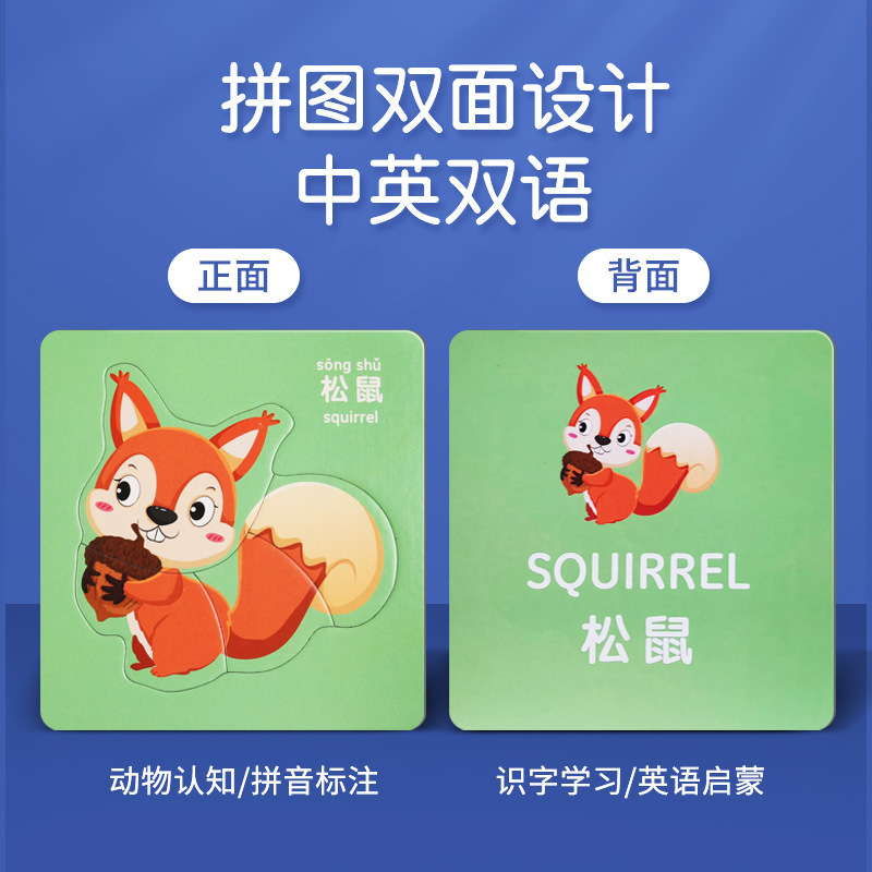 儿童动物拼图益智宝宝3到6岁幼儿拼图入门级早教男孩女孩启蒙拼图