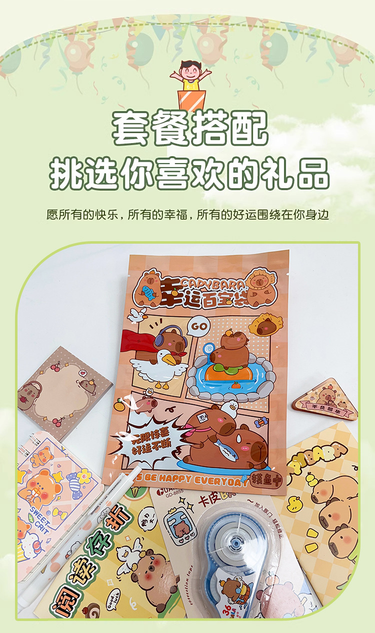 新款卡皮巴拉文具盲学生可爱礼物礼包儿童节幸运惊喜实用小礼品