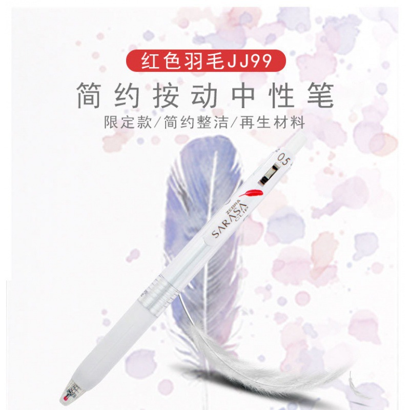 日本ZEBRA斑马红色羽毛限定JJ99按动中性笔 JJ15白杆黑色水笔批发