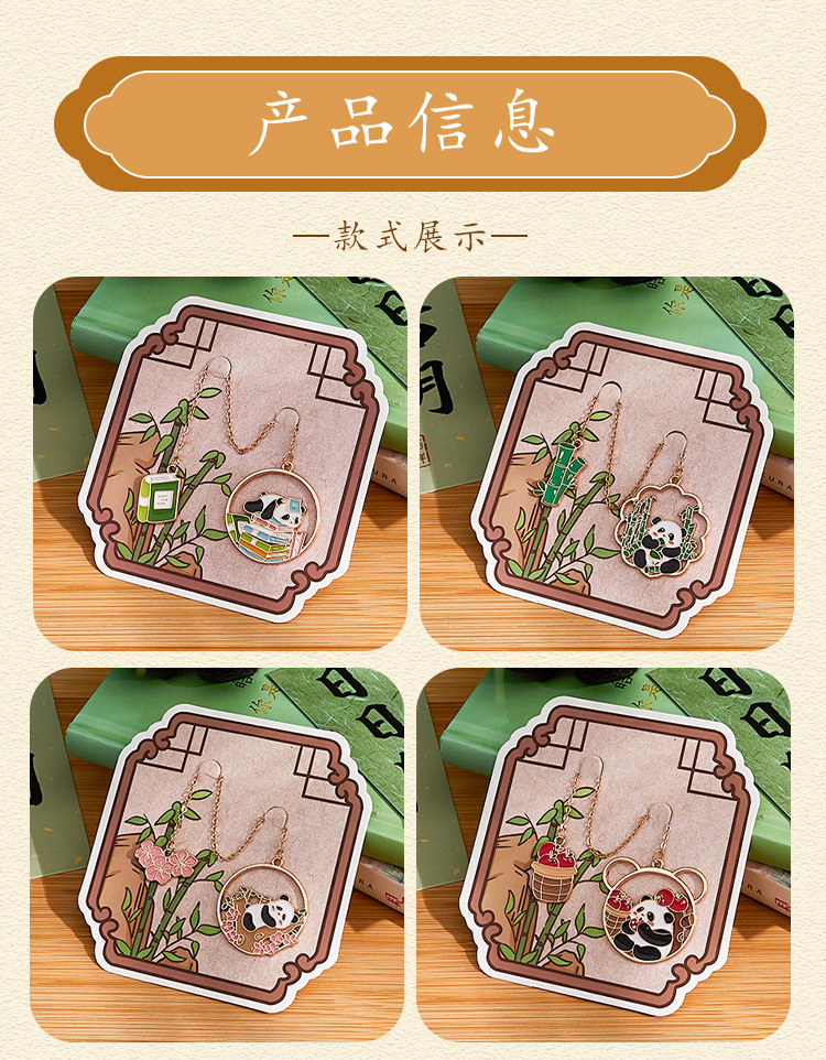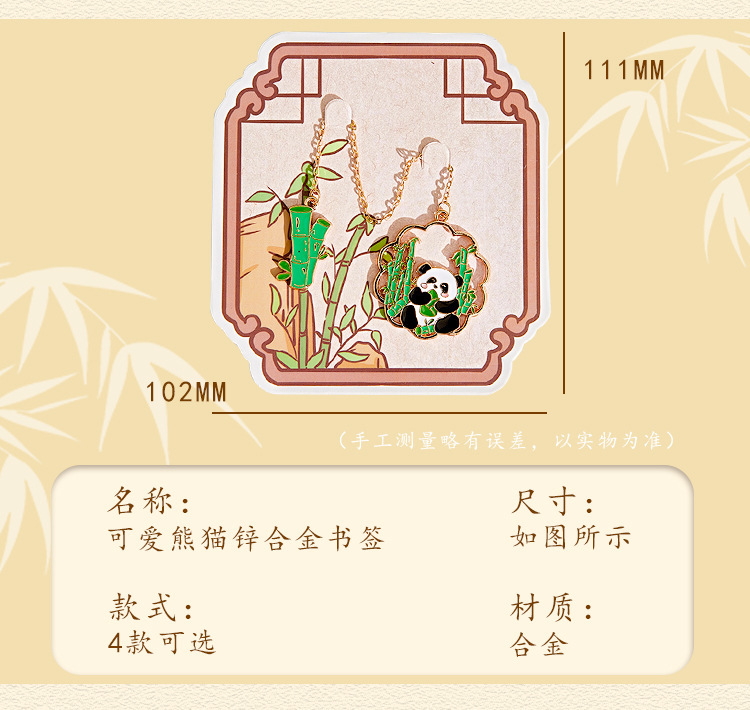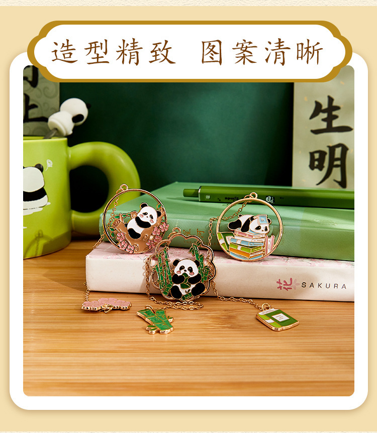 熊猫金属书签可爱创意儿童毕业礼物卡通挂件学生阅读标记书页夹