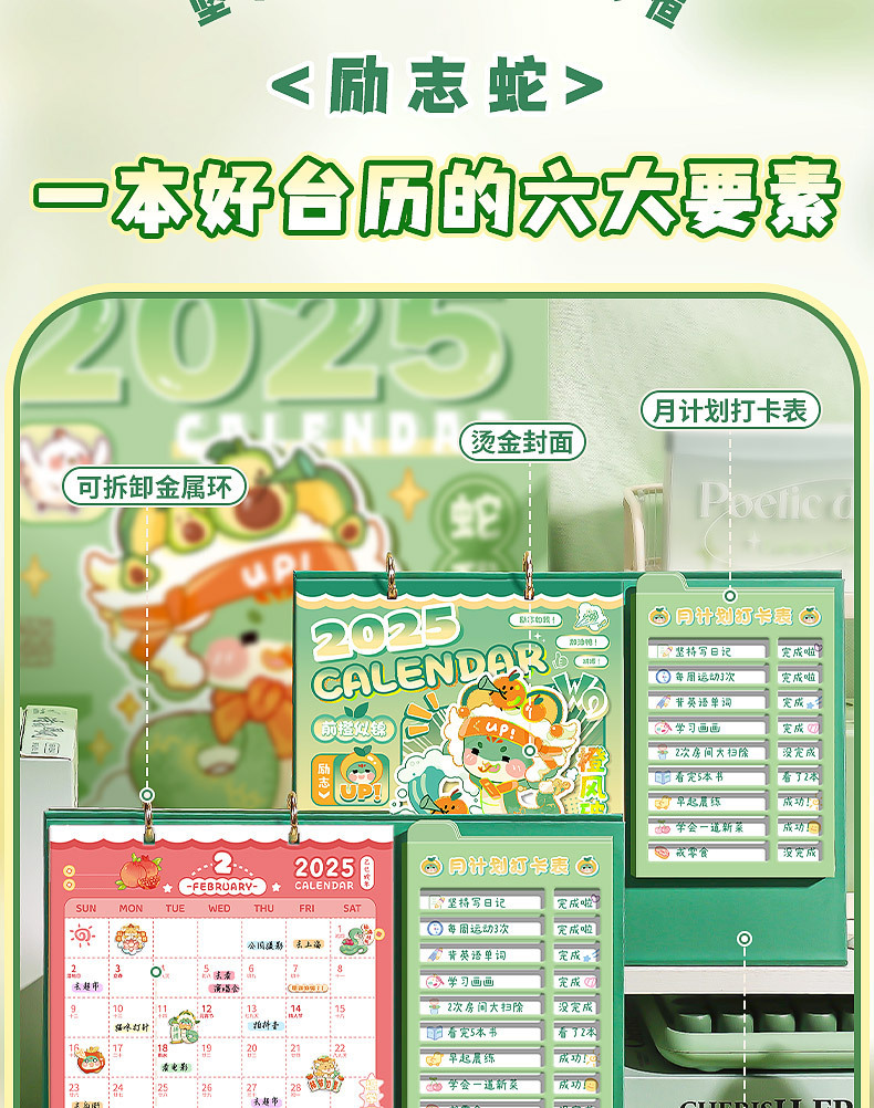 2025年创意励志台历打卡日历桌面摆件办公打卡计划表精美台历日历