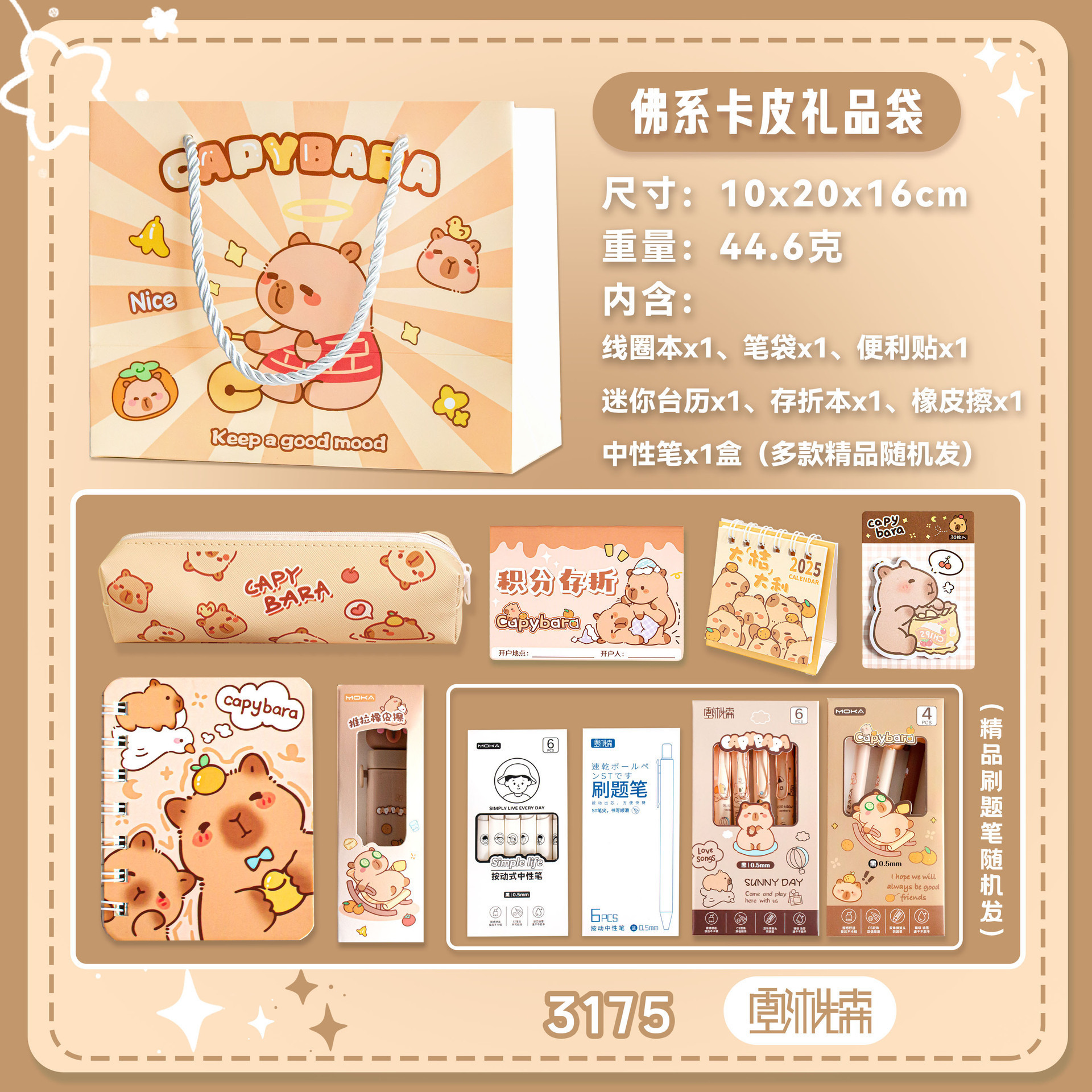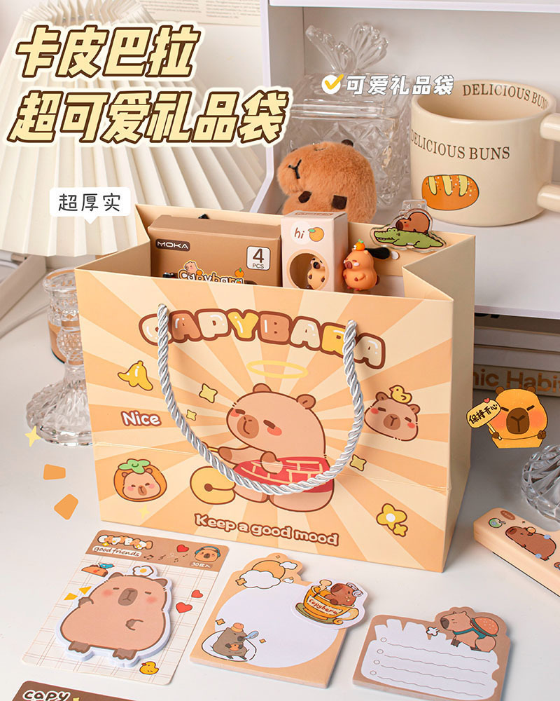 卡皮巴拉新款文具套装小学生礼物可爱学习用品创意手提文具大礼包