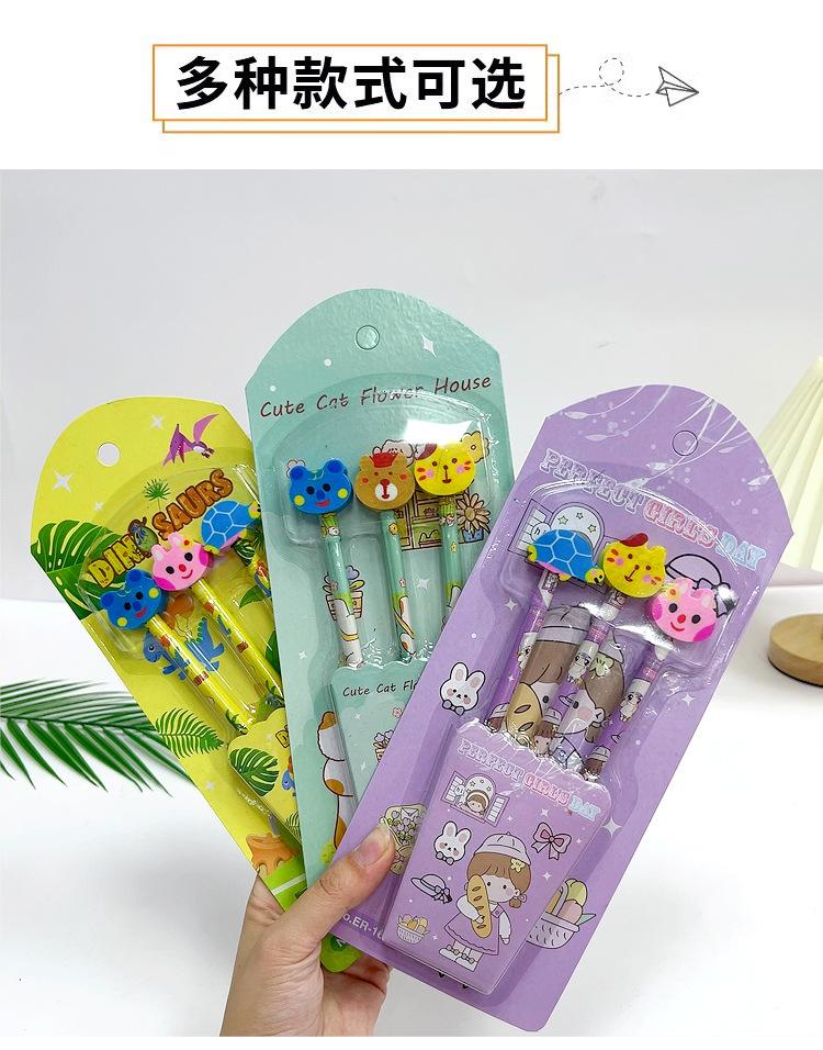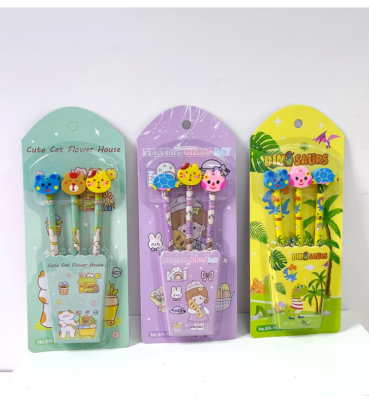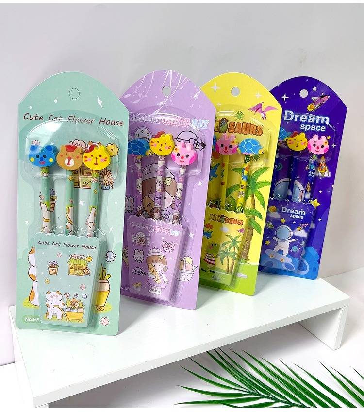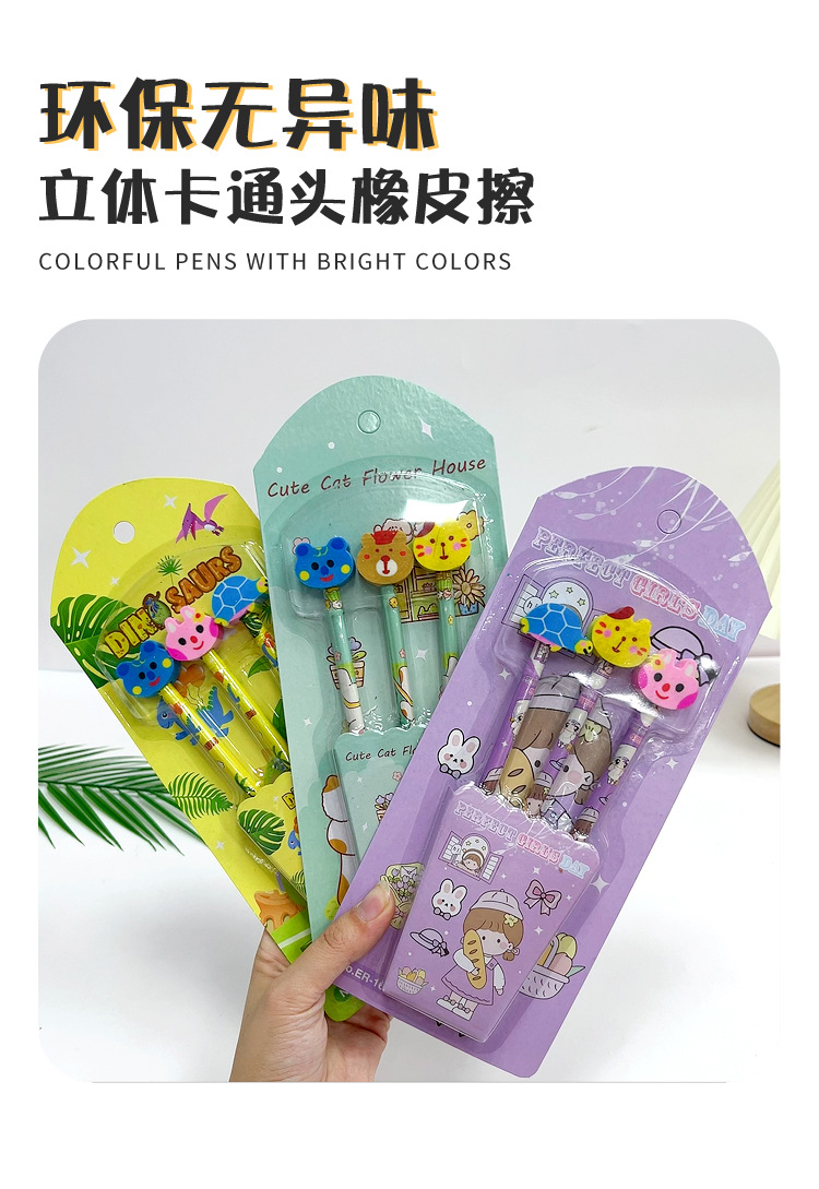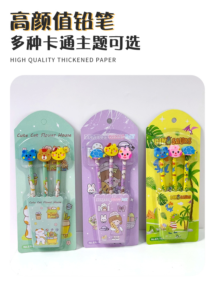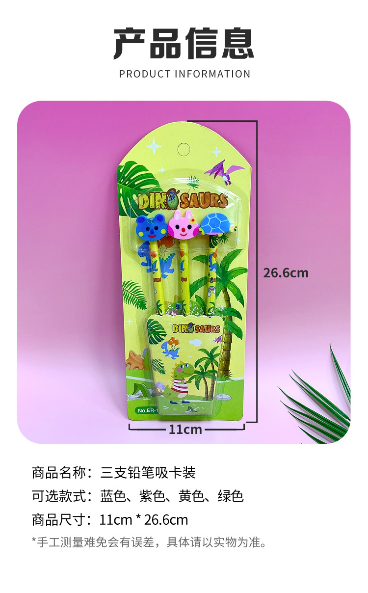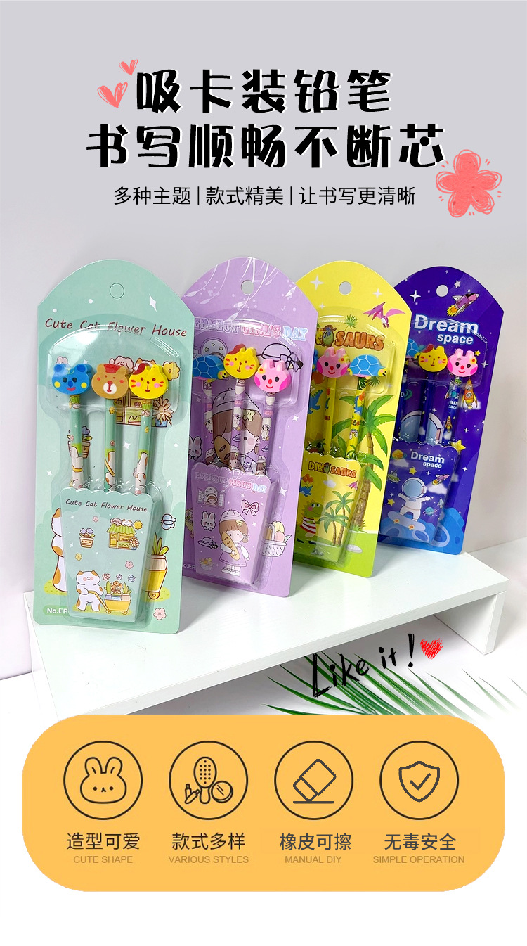 卡通铅笔套装新款吸卡装铅笔三件套小学生六一儿童节奖品奖励批发