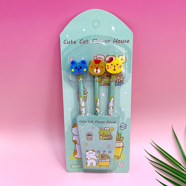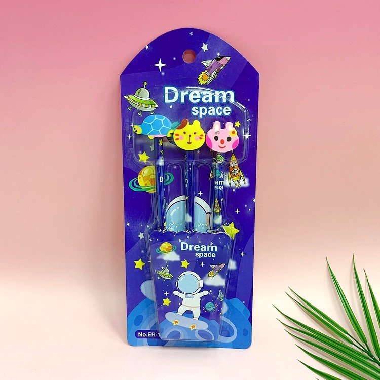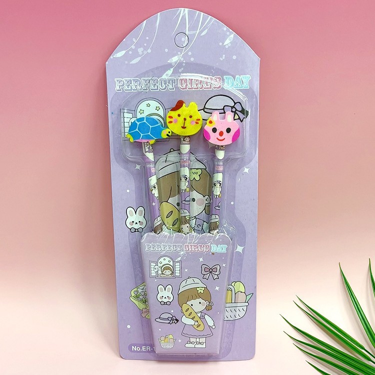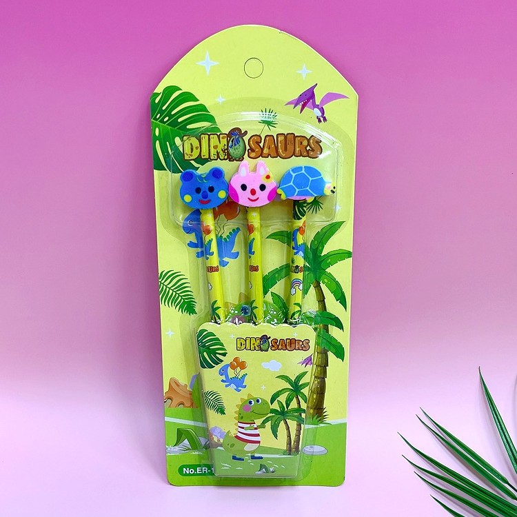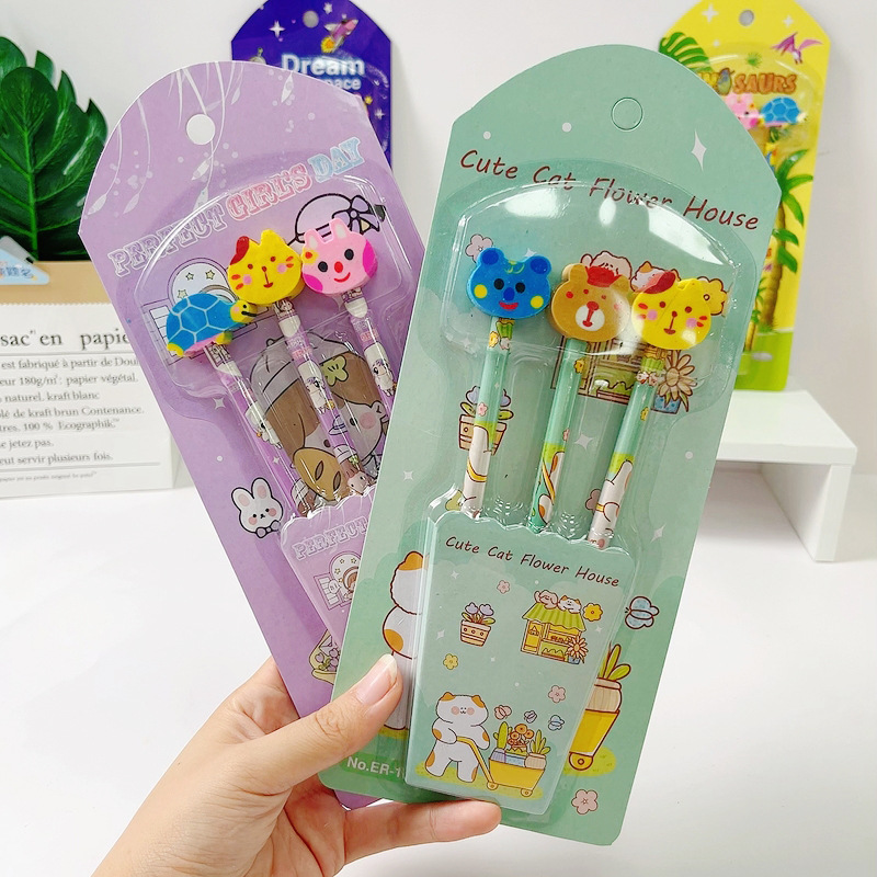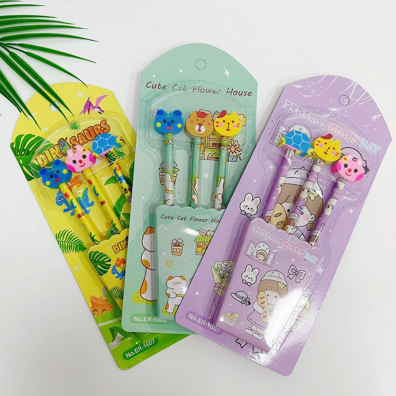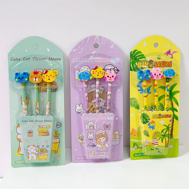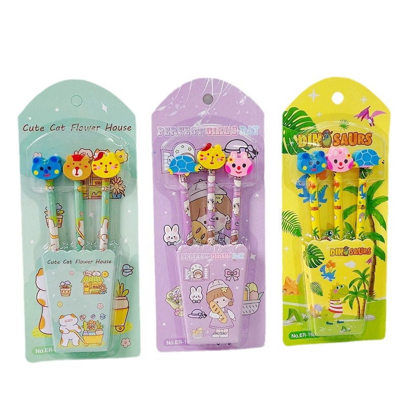 卡通铅笔套装新款吸卡装铅笔三件套小学生六一儿童节奖品奖励批发
