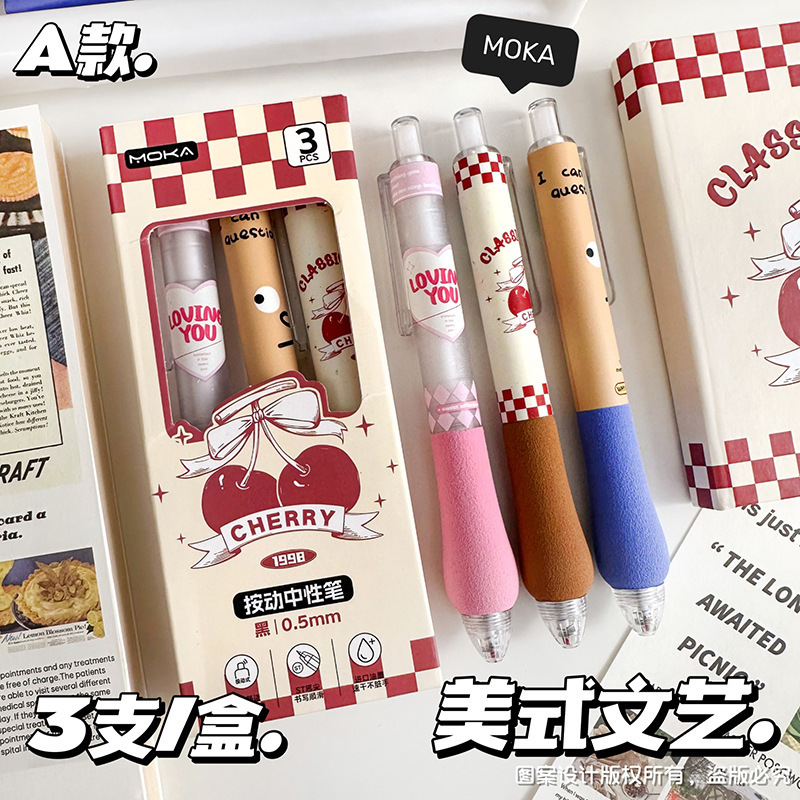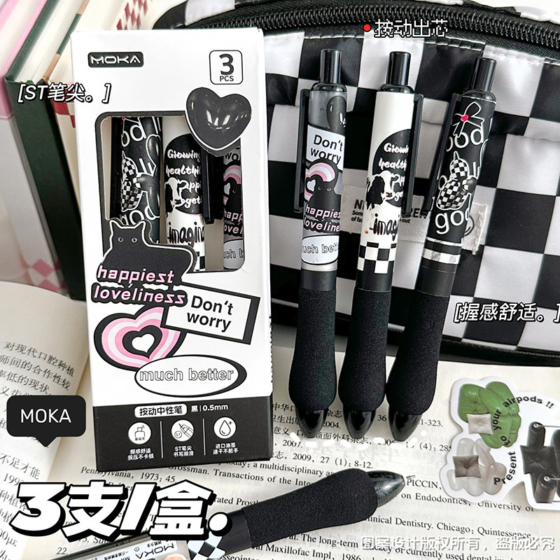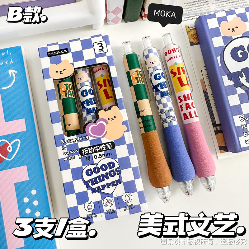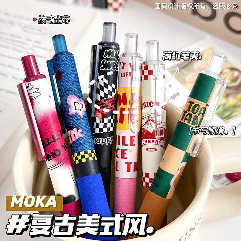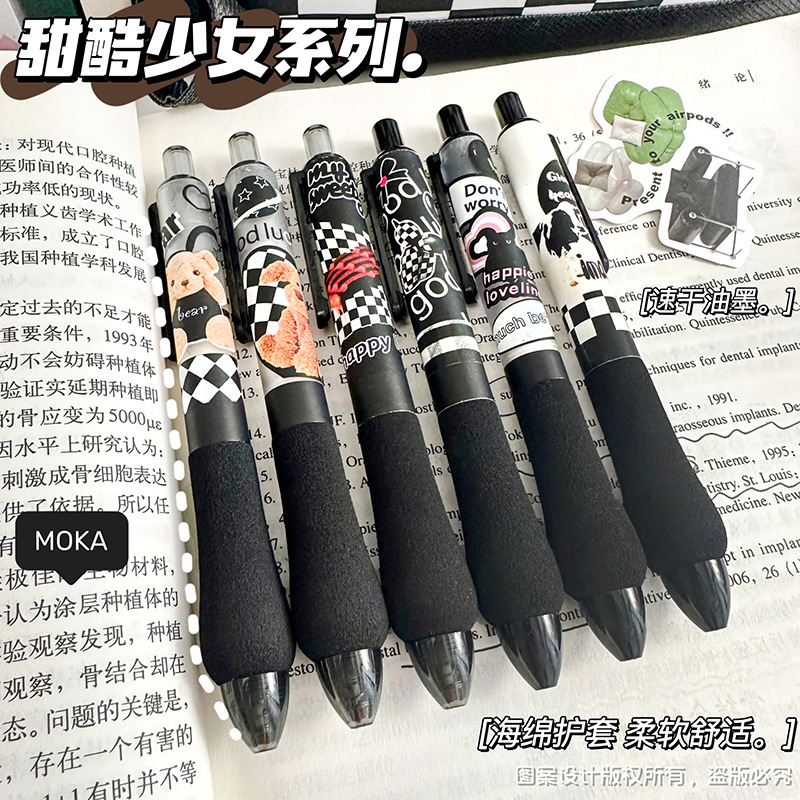 胖胖按动笔美式复古ST头中性笔高颜值学生少女碳素笔学生刷题笔