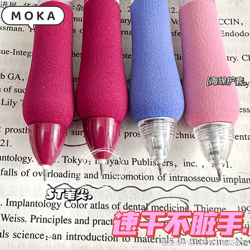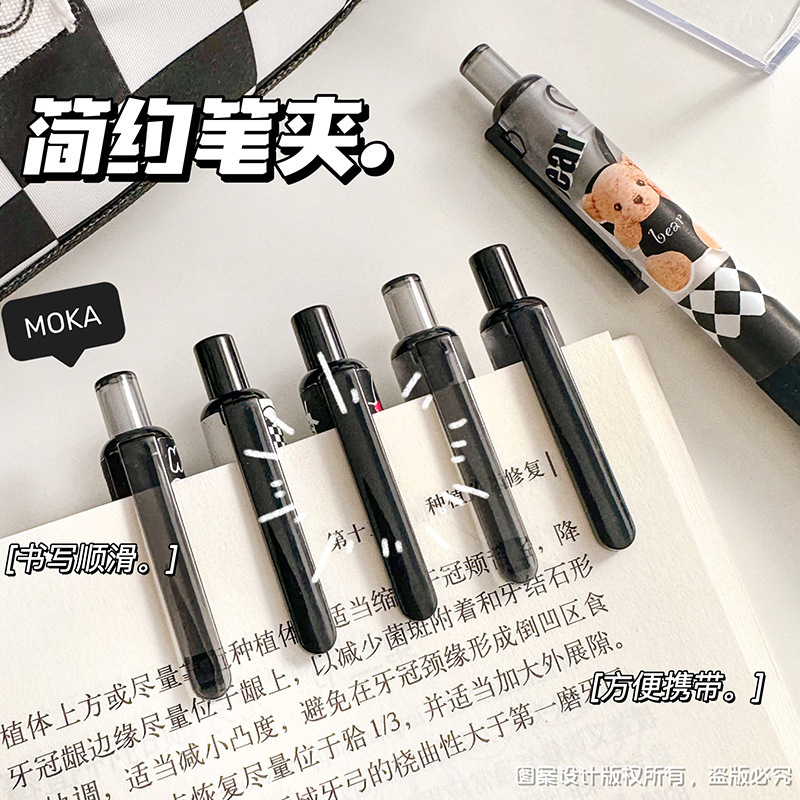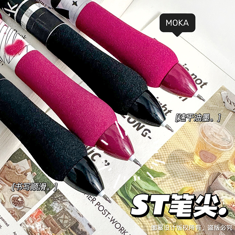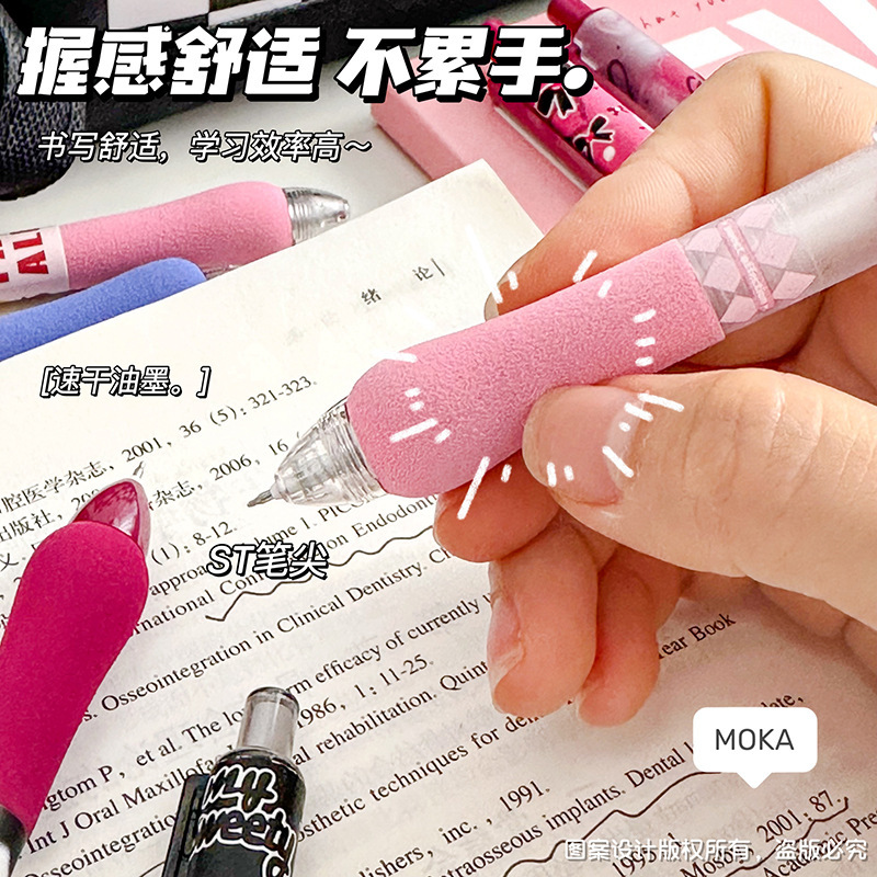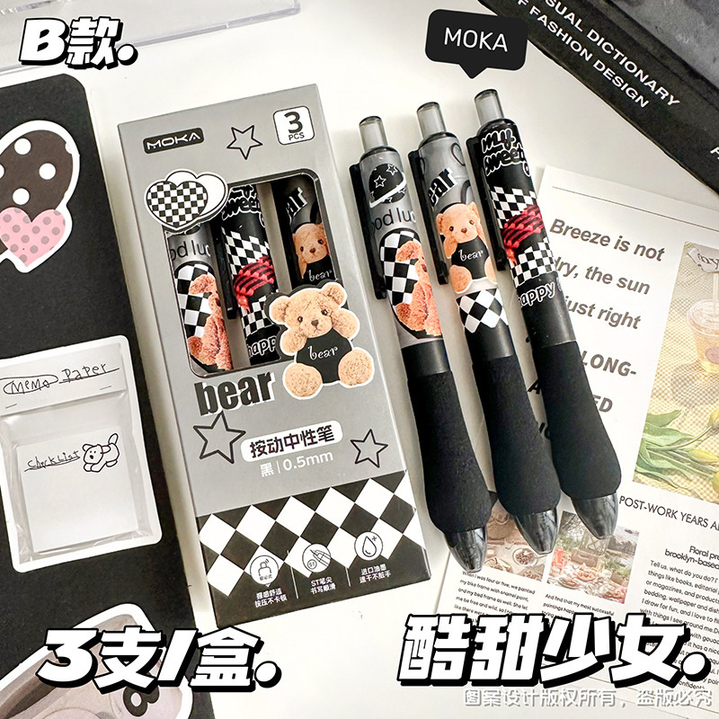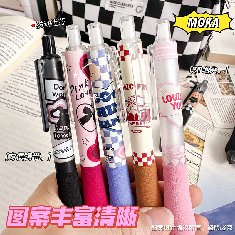胖胖按动笔美式复古ST头中性笔高颜值学生少女碳素笔学生刷题笔