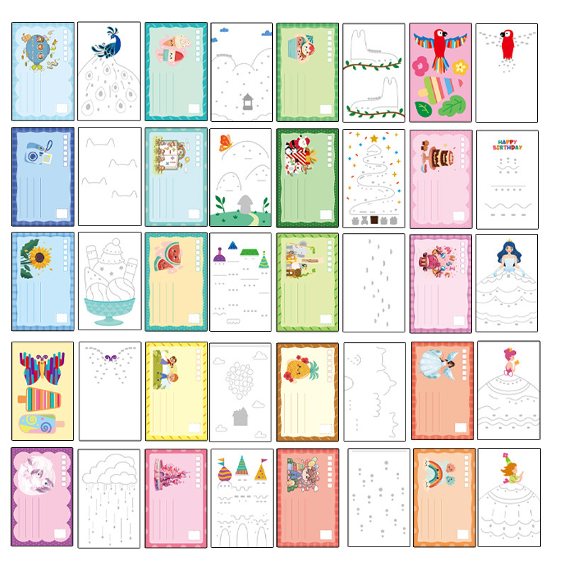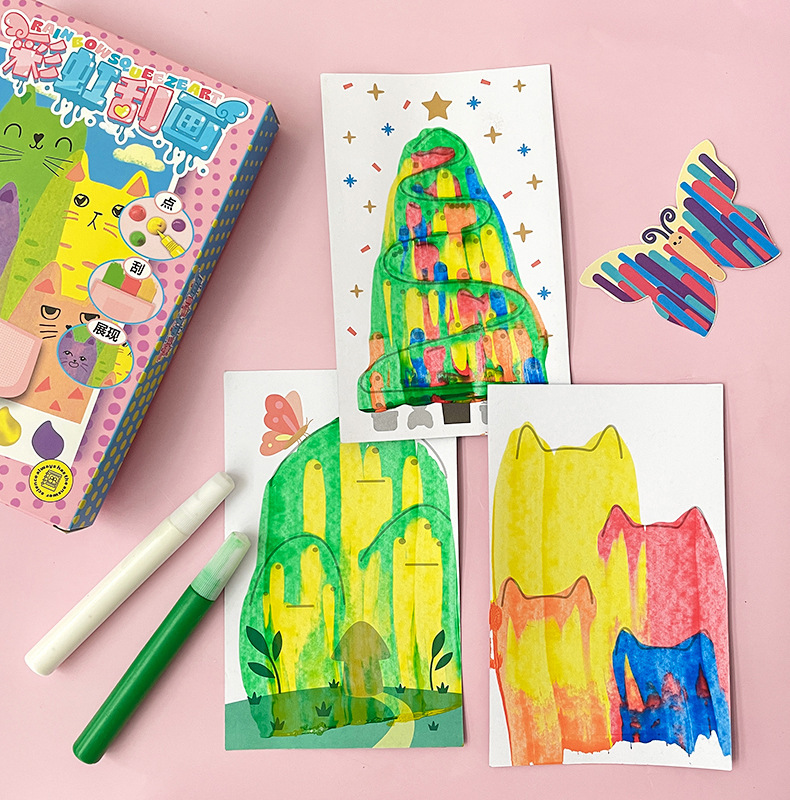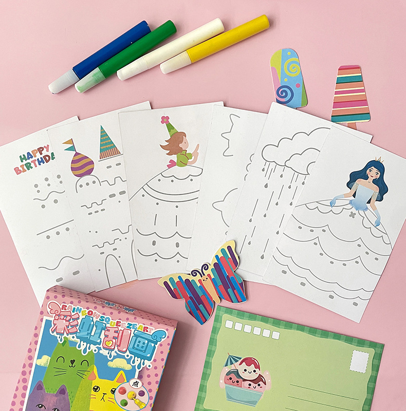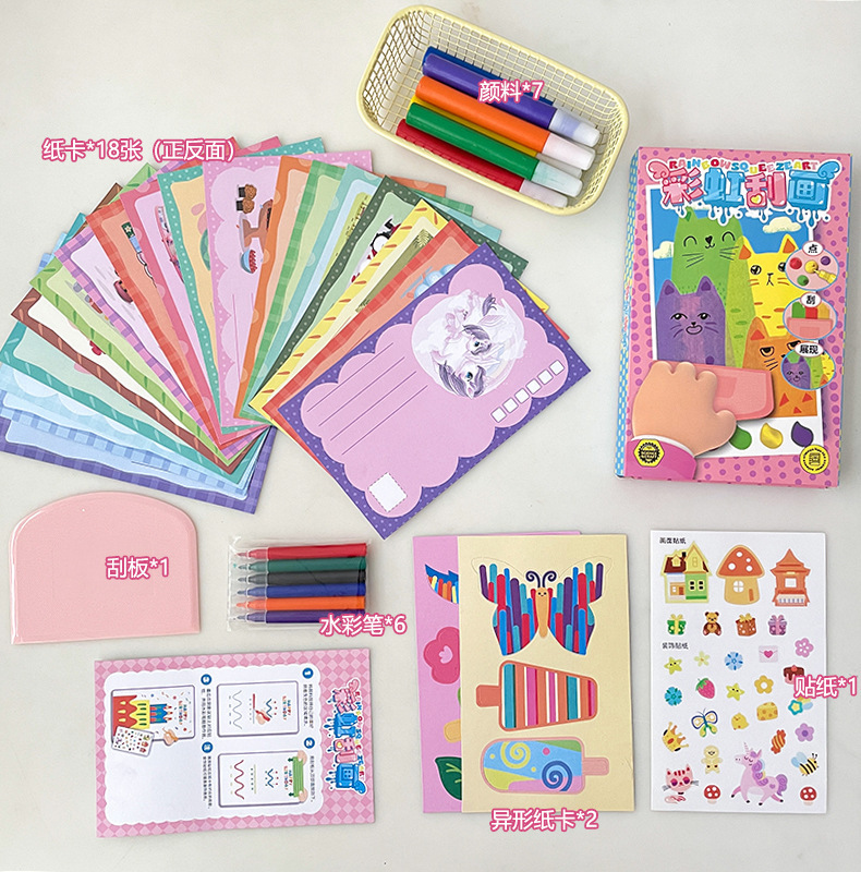 彩虹点彩刮刮画儿童diy手工涂鸦画便携式刮画本明信片男女孩玩具