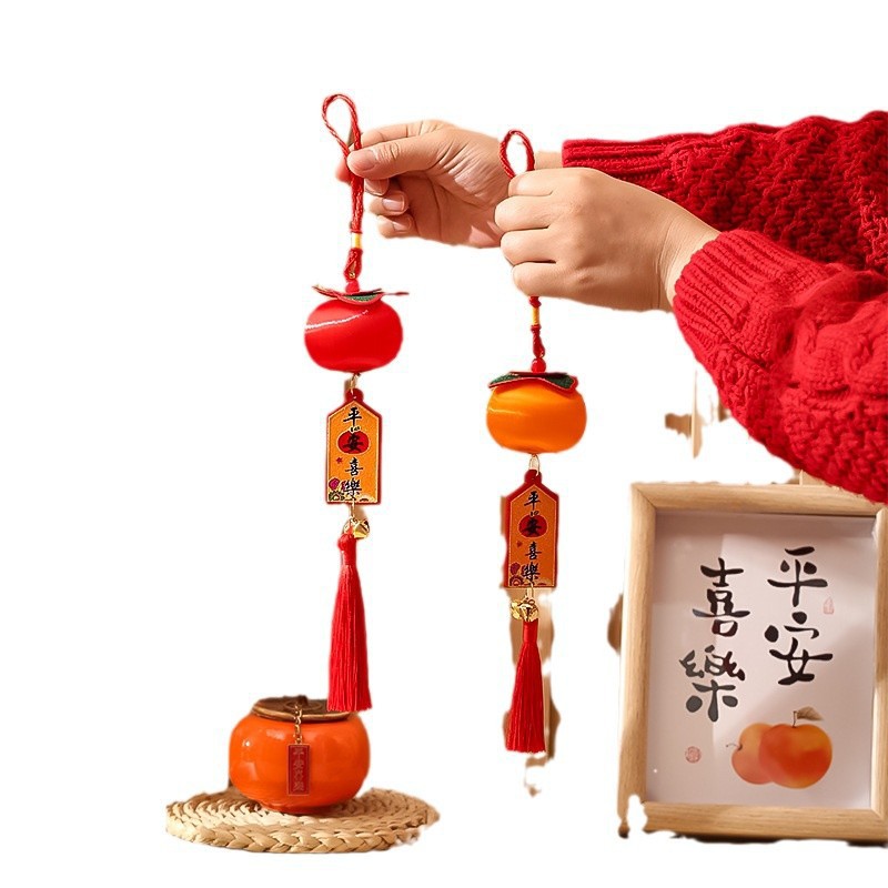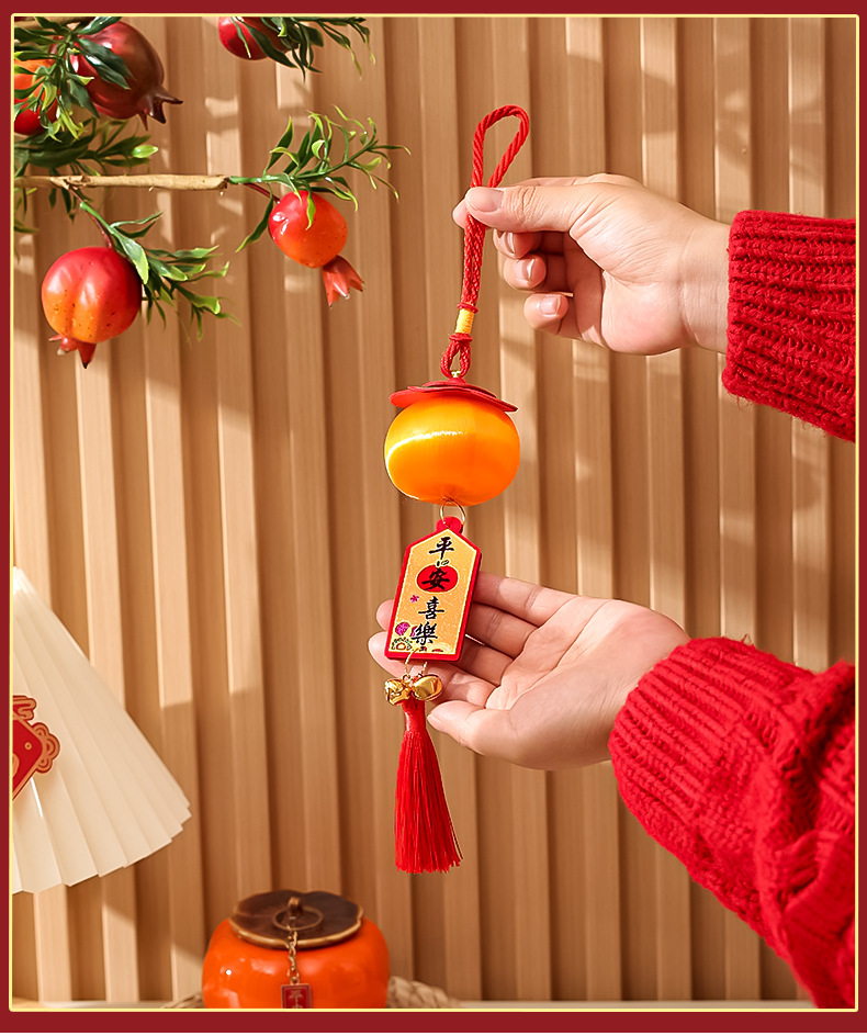 春节乔迁布置柿子串小挂件2025蛇年新款丝线小灯笼挂饰新年装饰