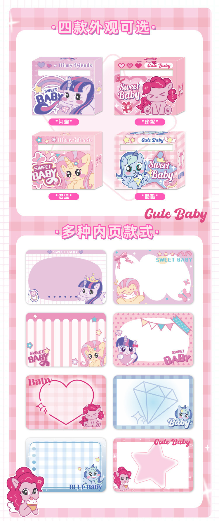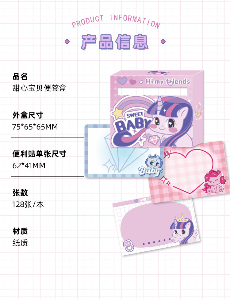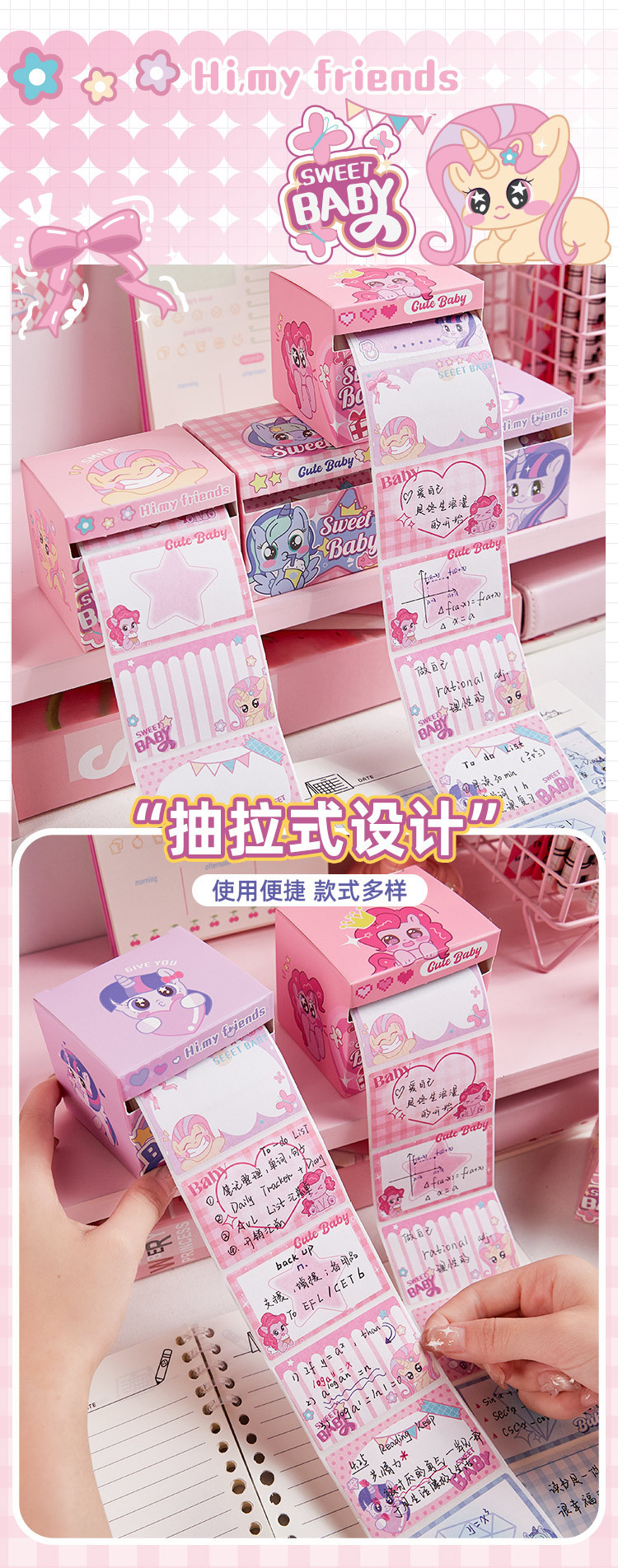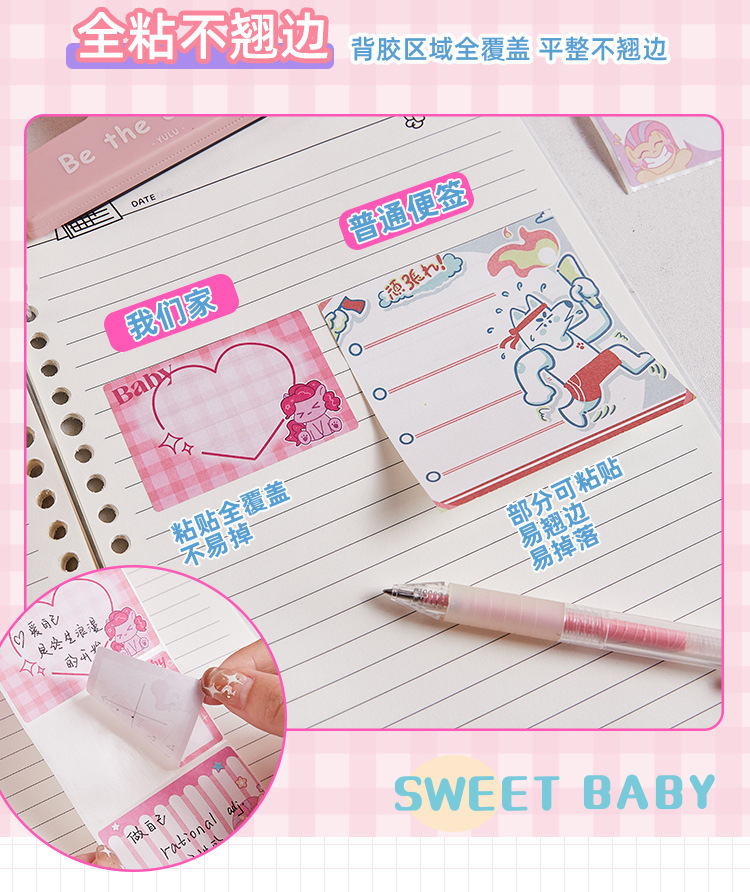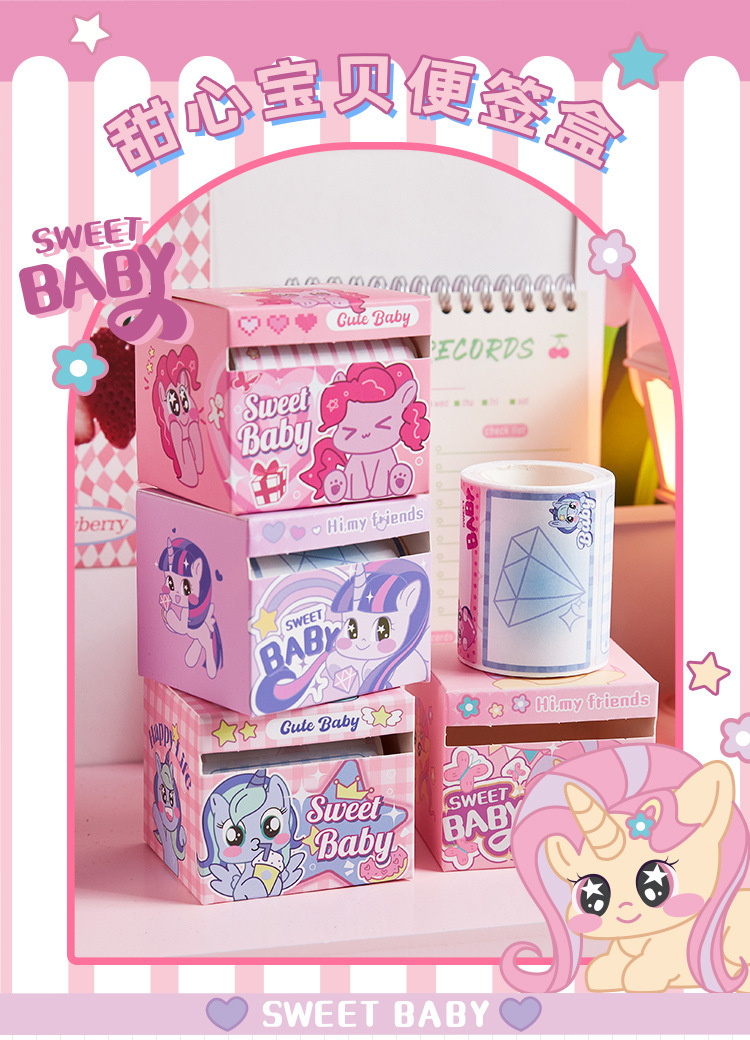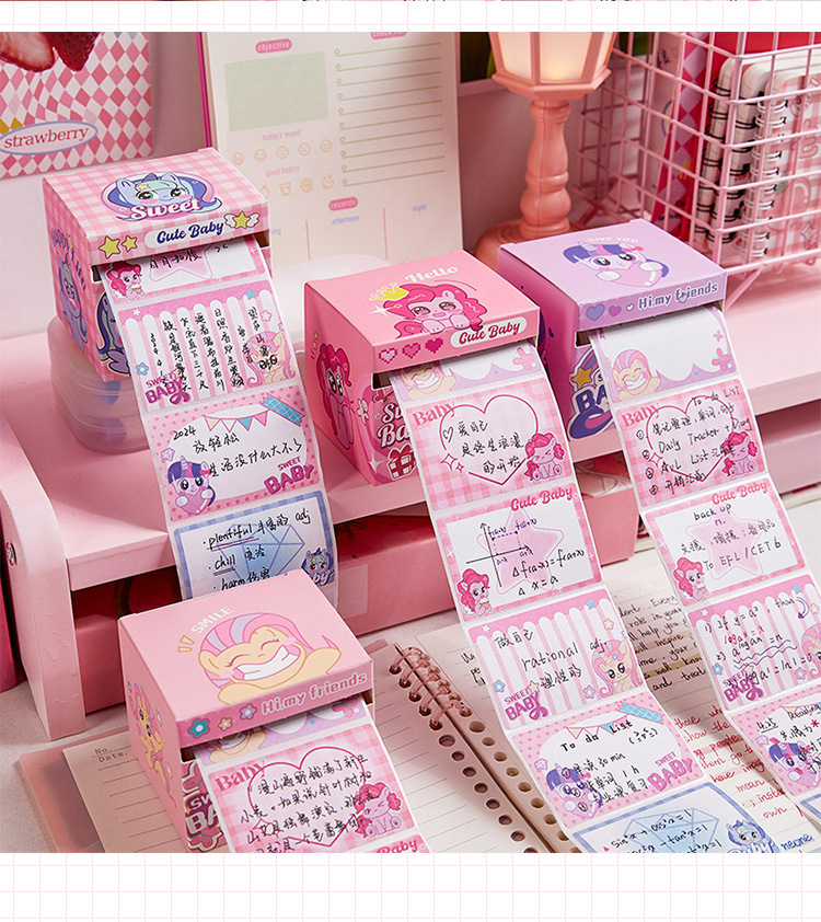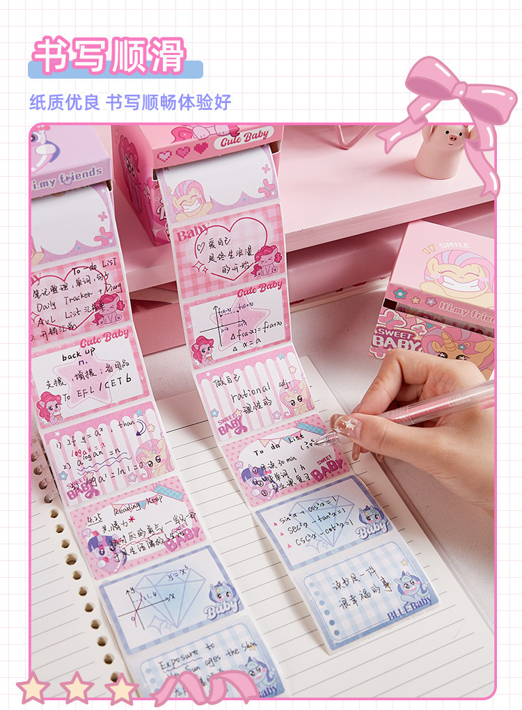 甜心宝贝抽拉式便利贴学生专用可爱高颜值有粘性彩色便签纸不翘边