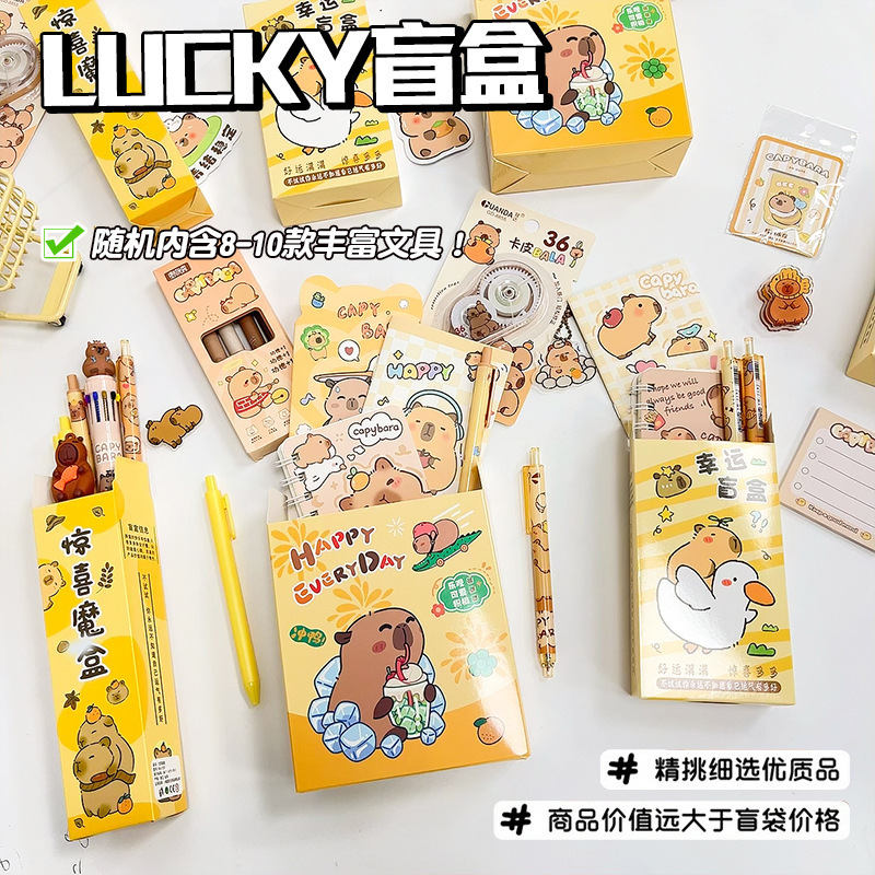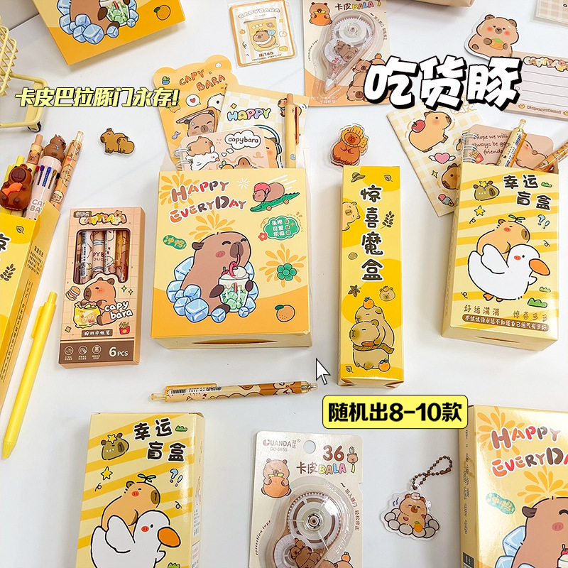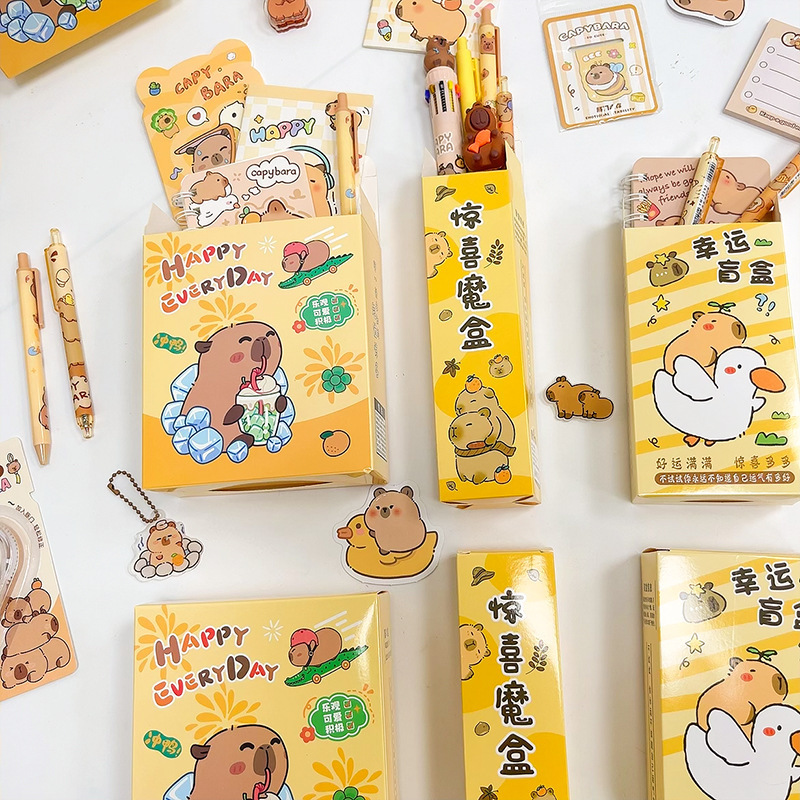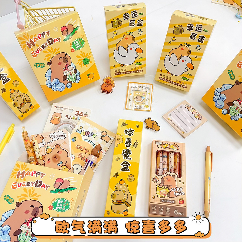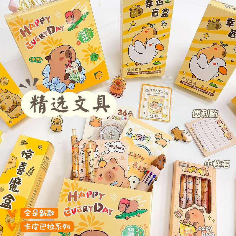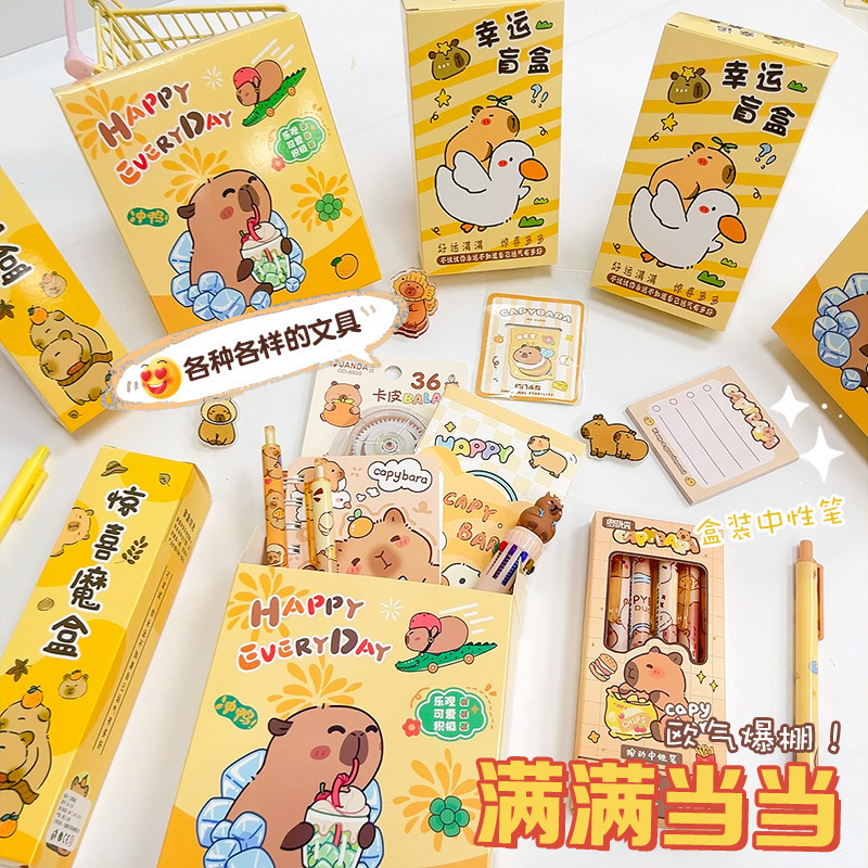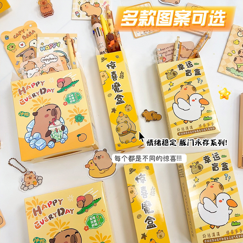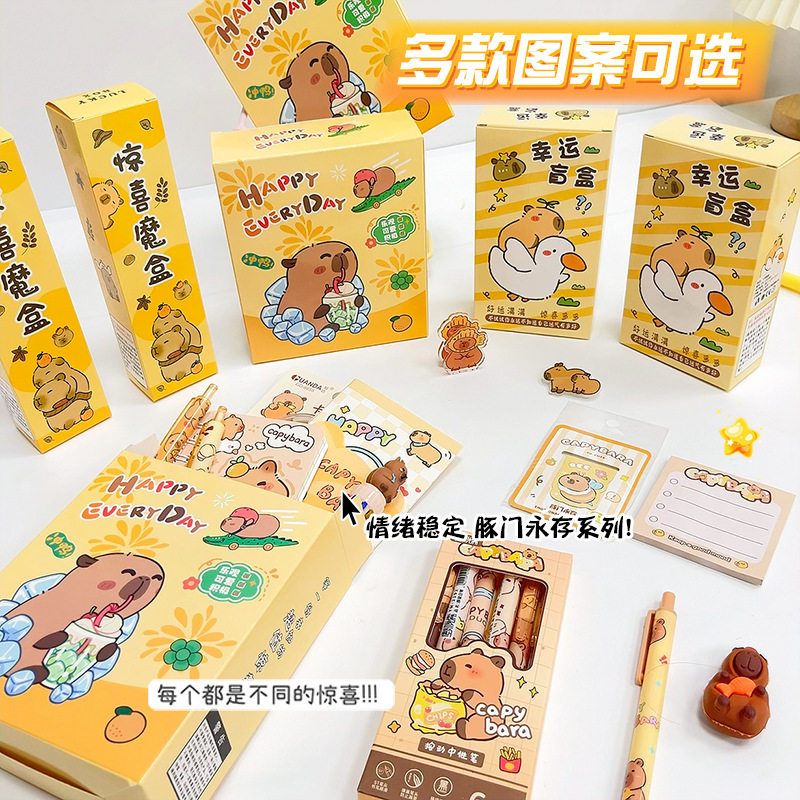 新款卡通可爱卡皮巴拉盲盒学生学习用品套装开学毕业季伴手礼礼品