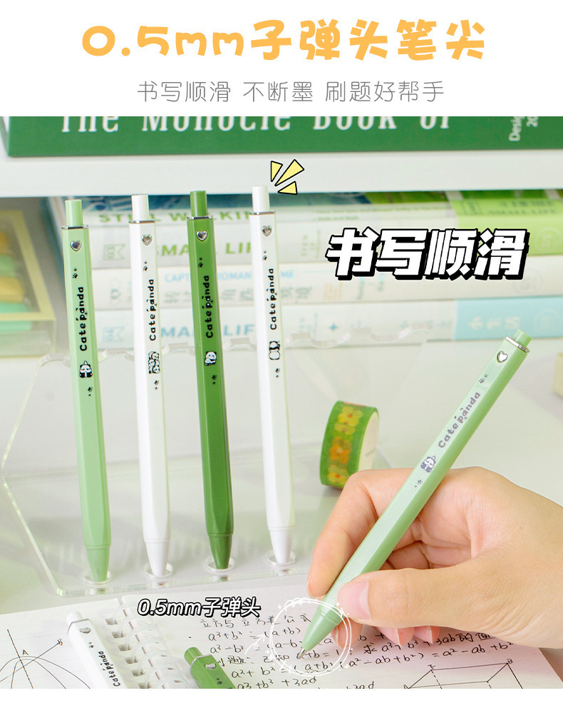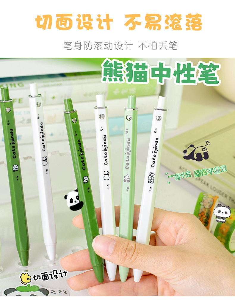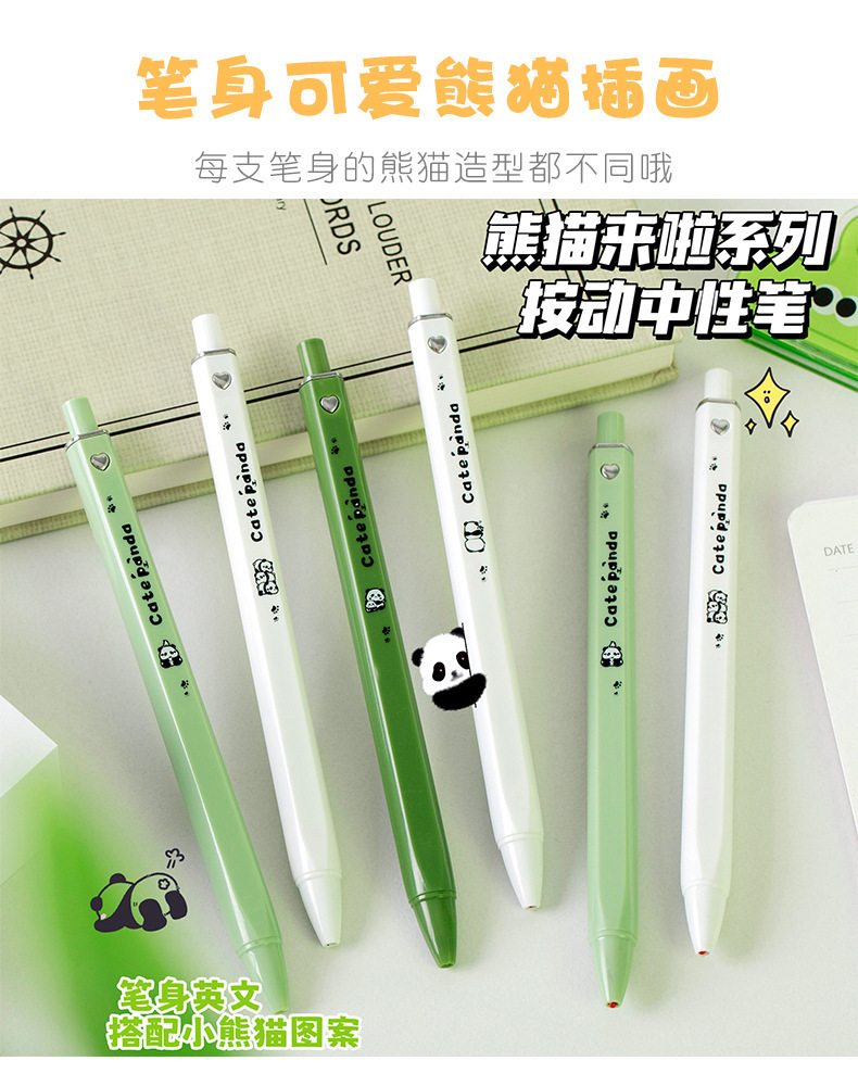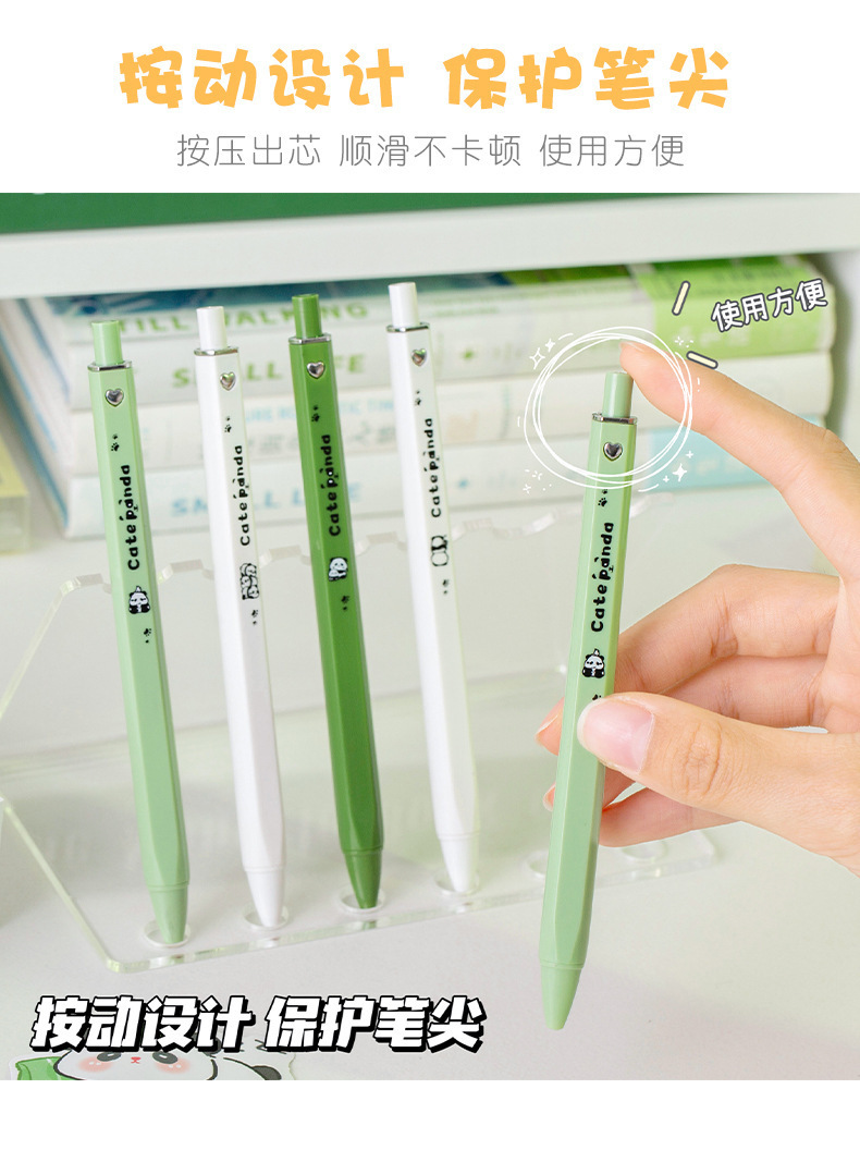 高颜值卡通中性笔熊猫超萌按动中性笔ins风学生刷题笔耐用签字笔