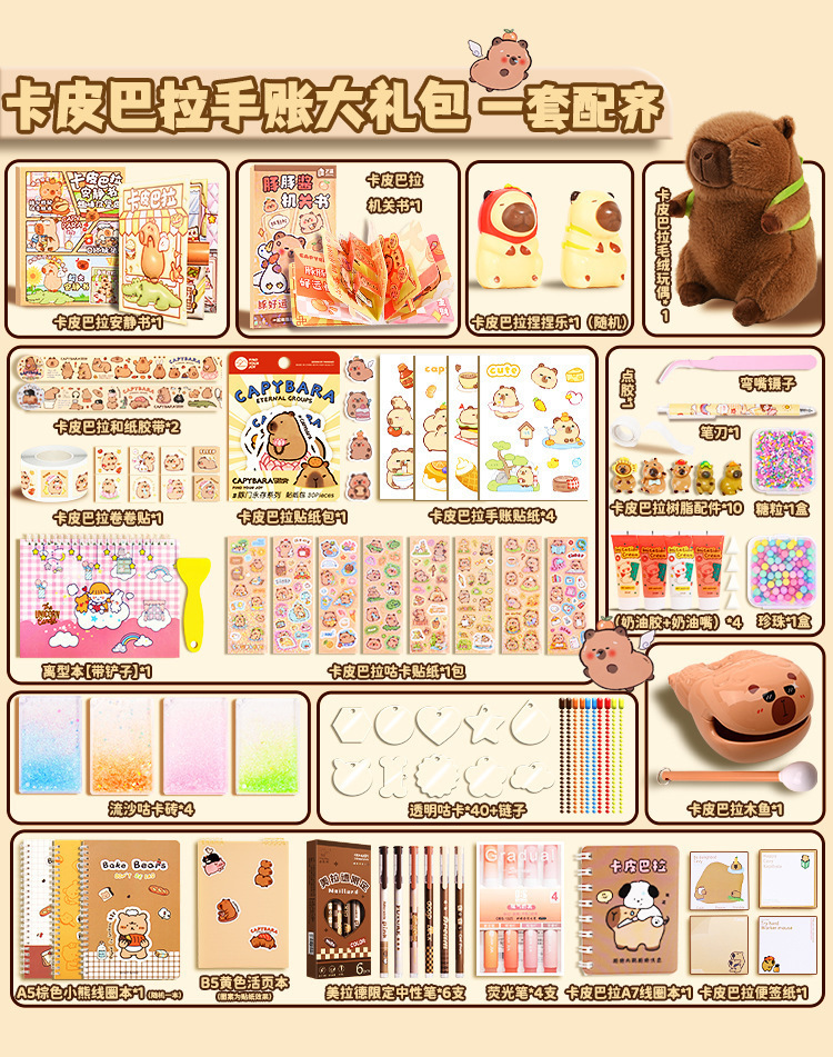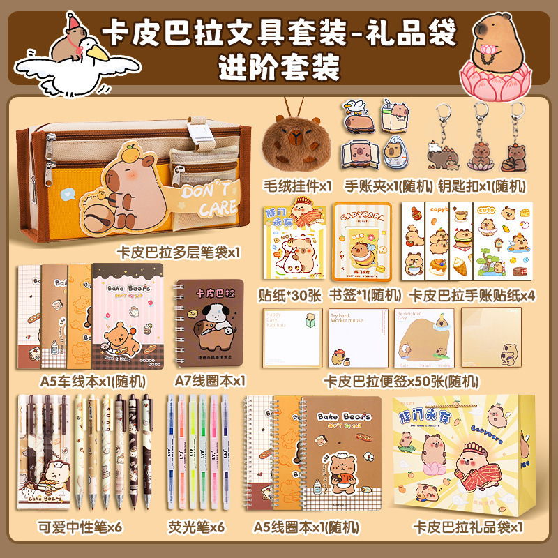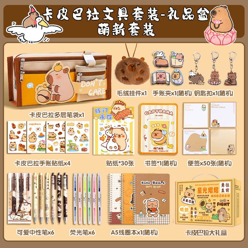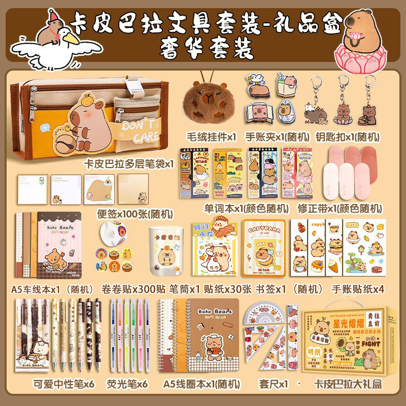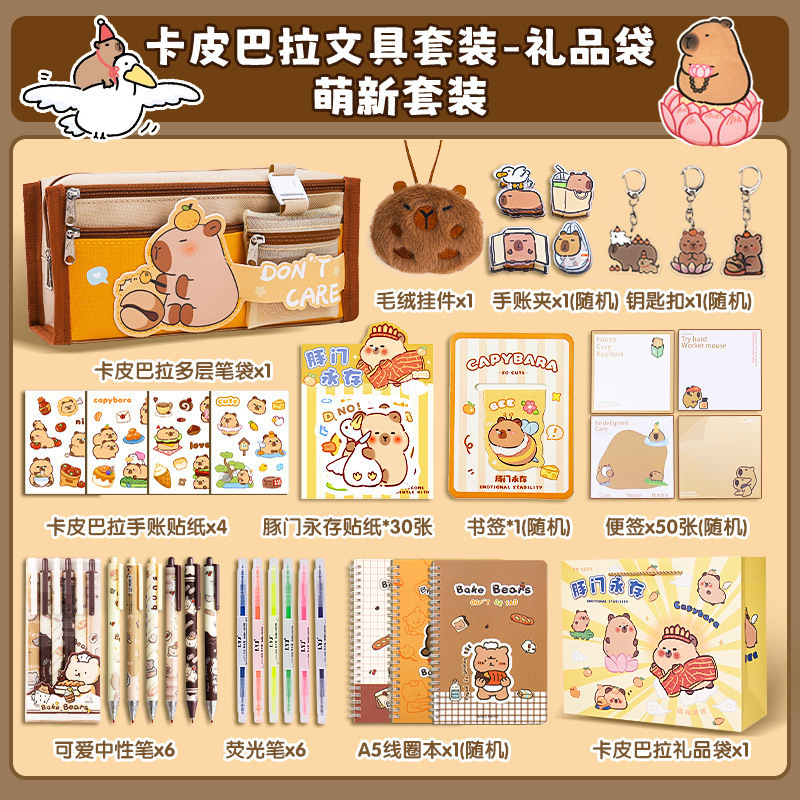 儿童文具卡皮巴拉套装学生学习用品儿童节日礼物机构礼品奖励批发