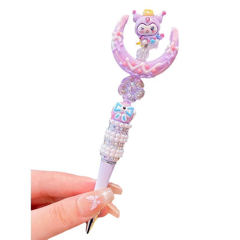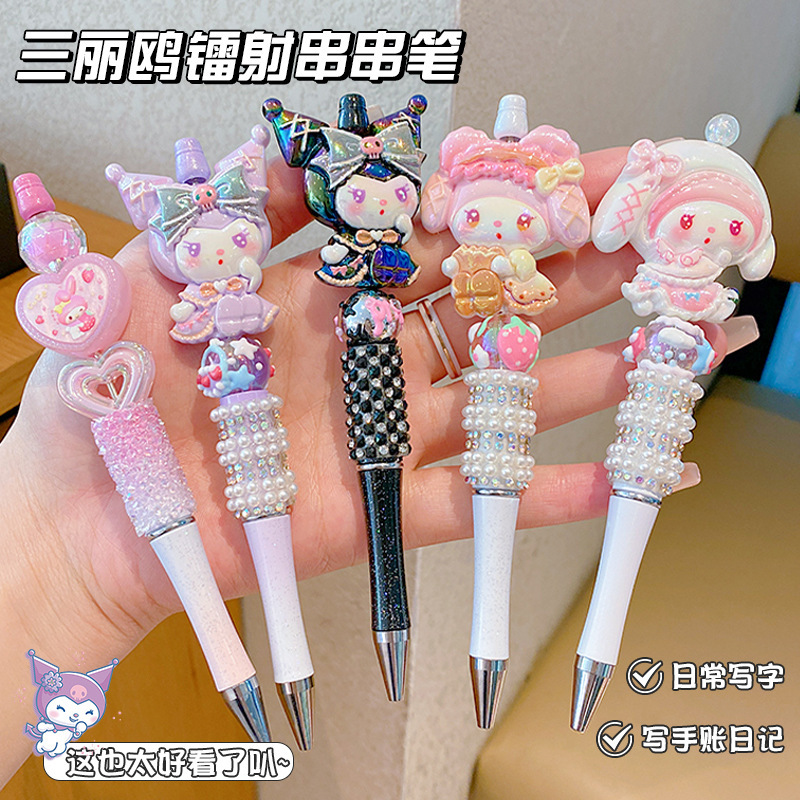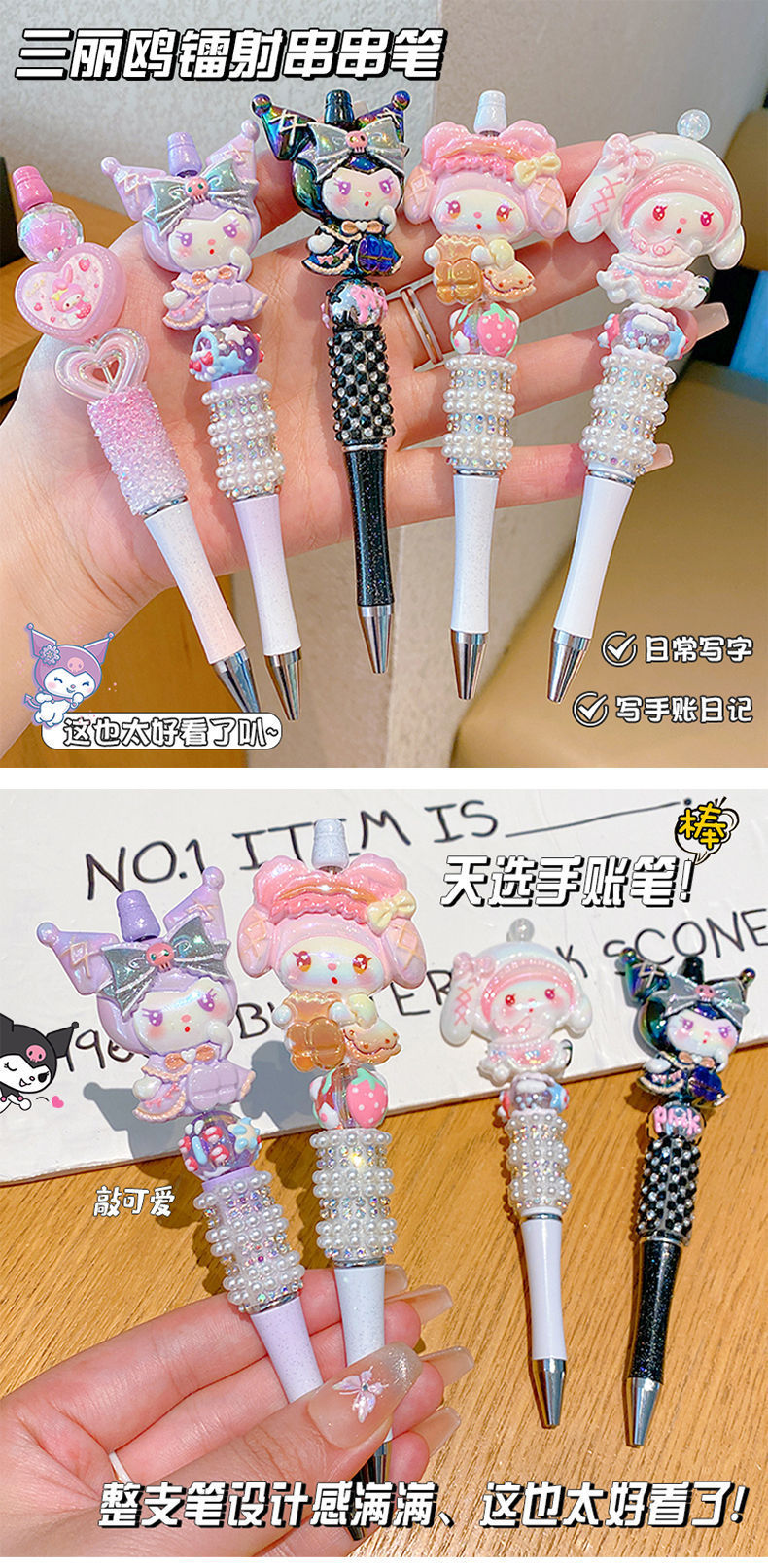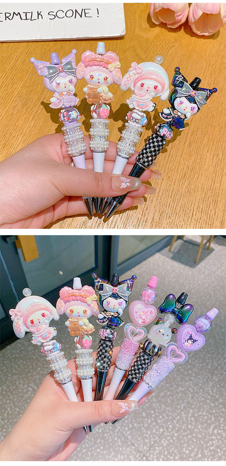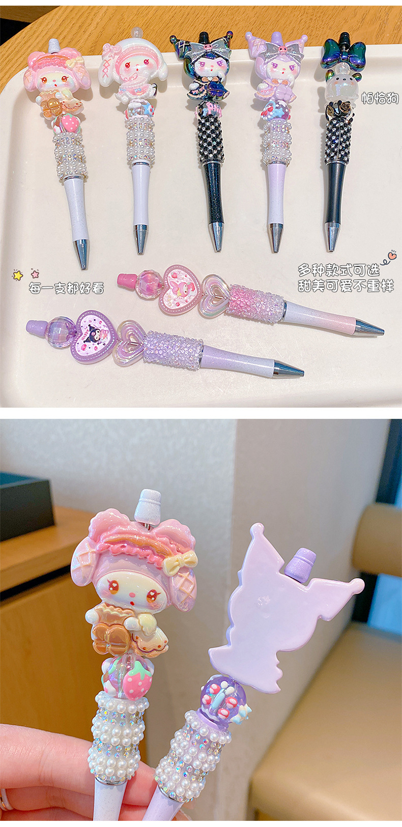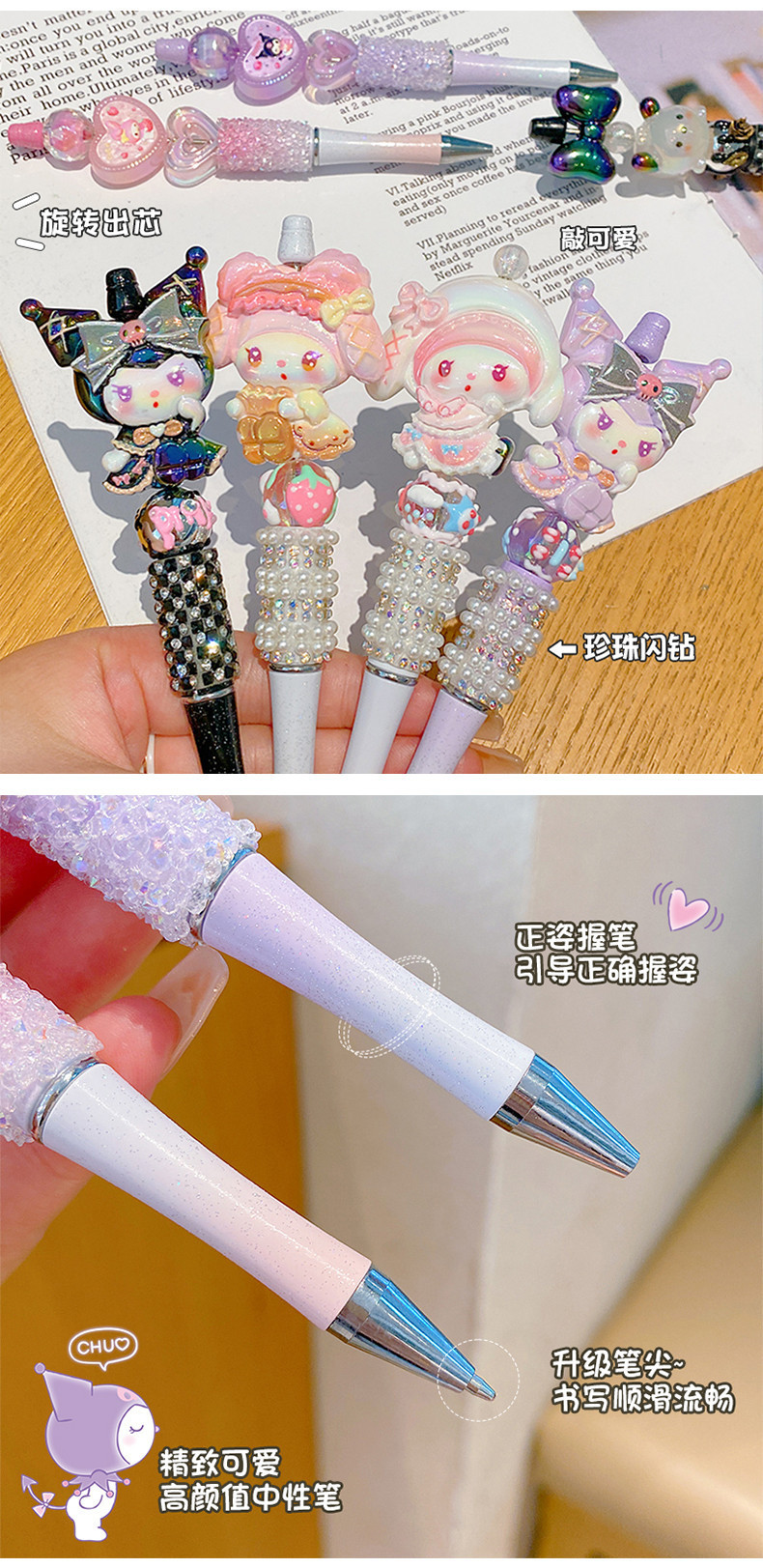 三丽鸥水晶闪钻旋转中性笔黑色可爱女孩女童梦幻美乐蒂串珠笔学生