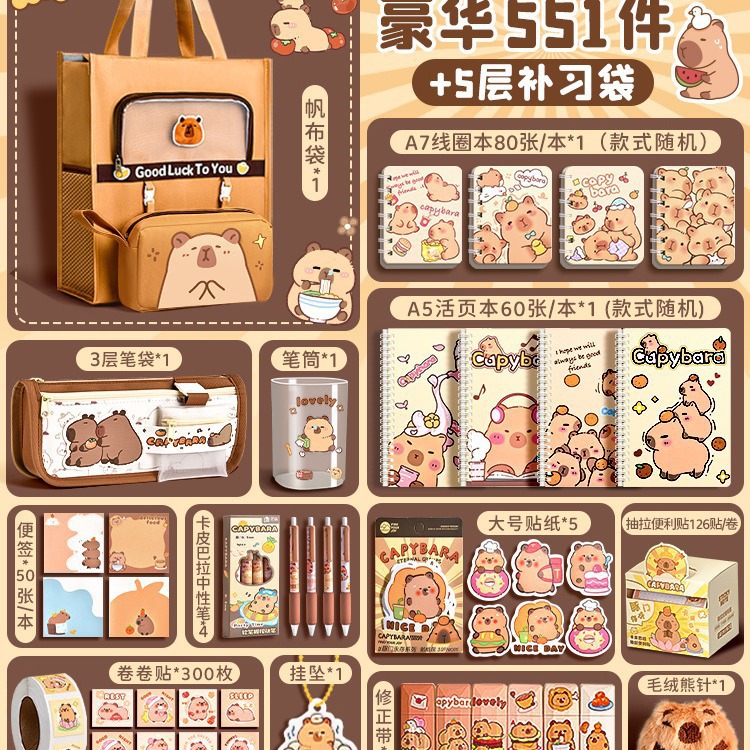 卡皮巴拉文具套装儿童礼物学生奖品文具大礼盒机构礼品文具大礼包