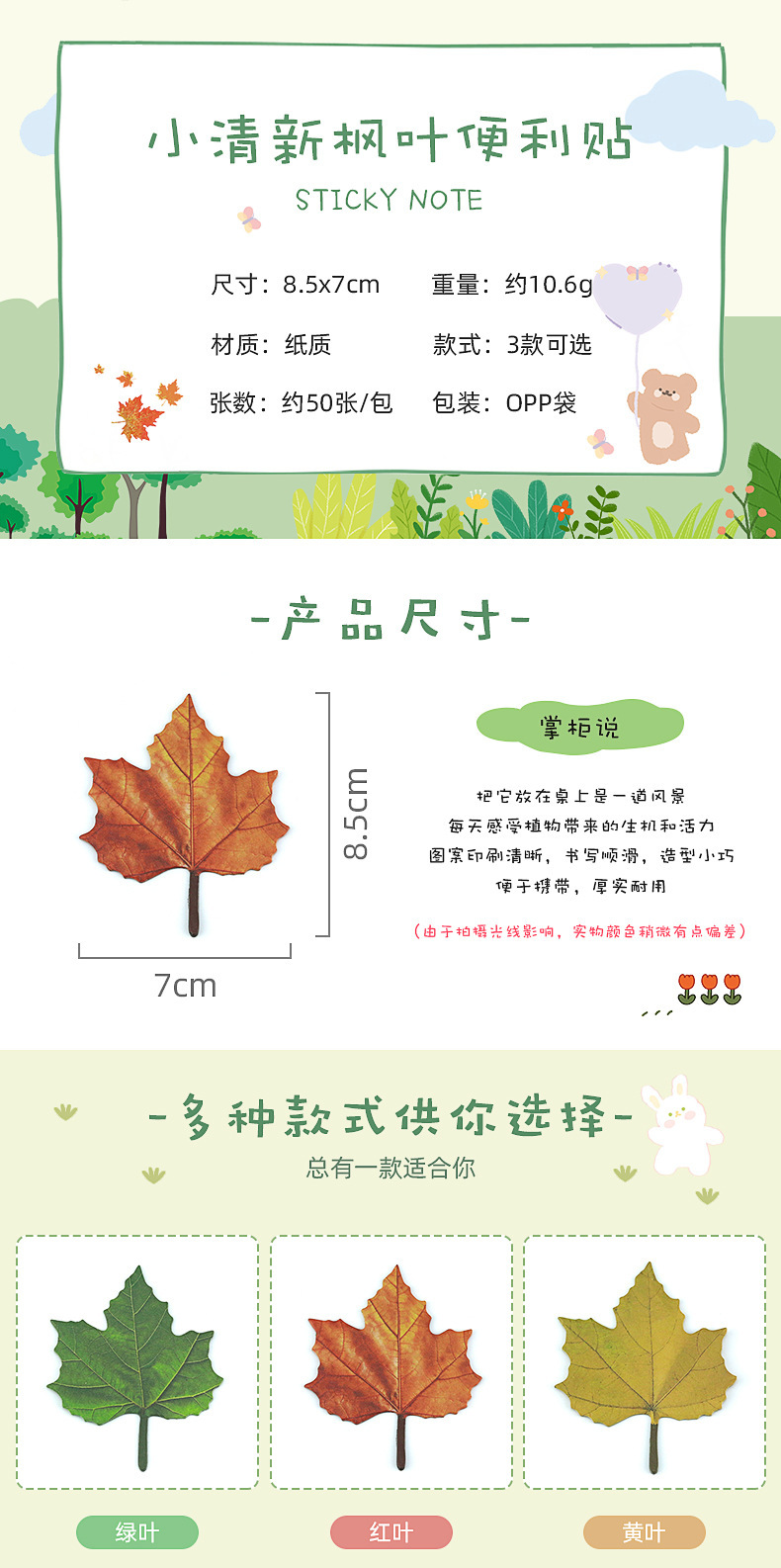 枫叶便签纸树叶便利贴小红书同款明星仿真手工文案创意留言纸贴纸