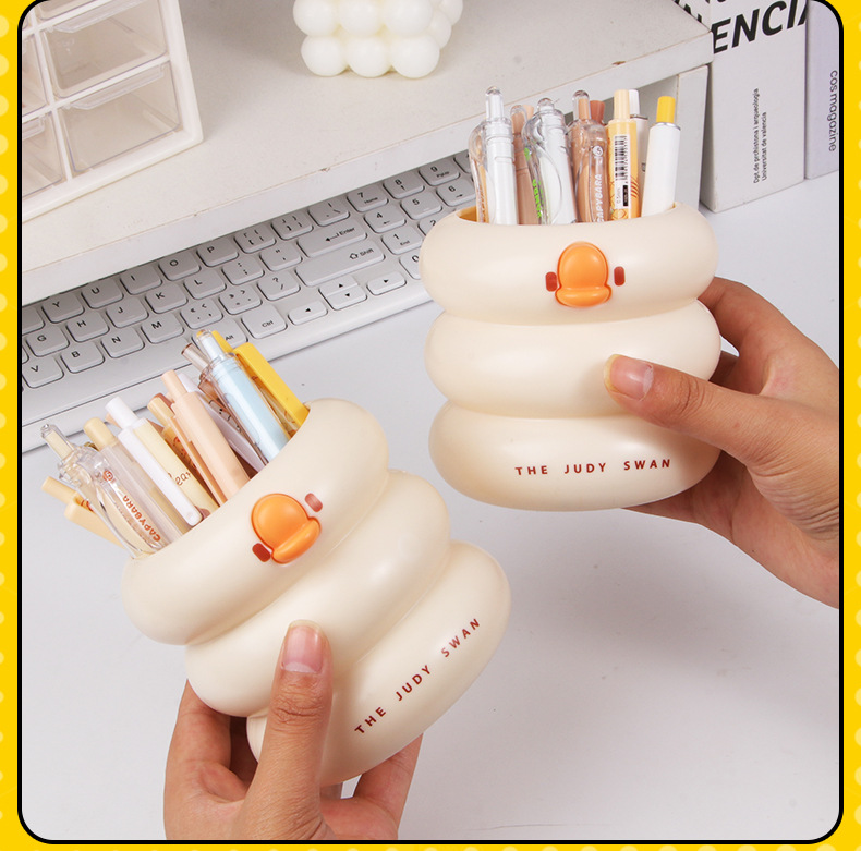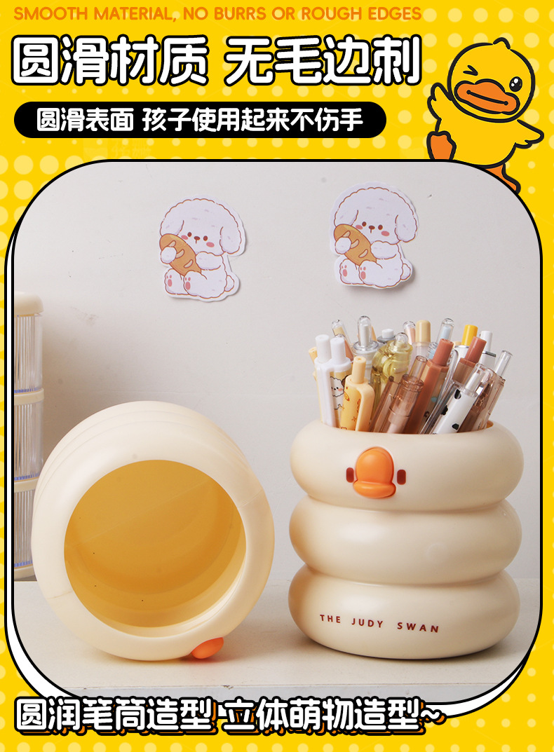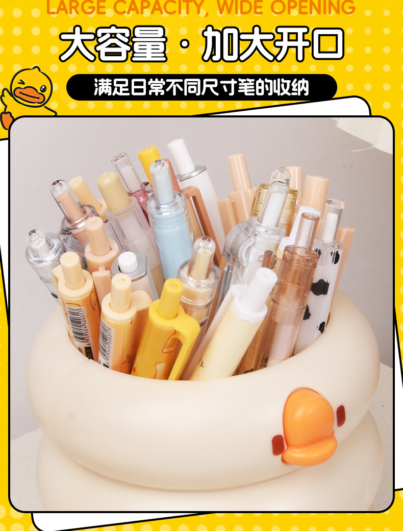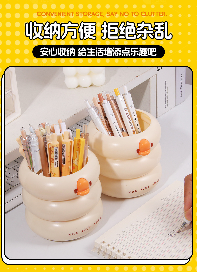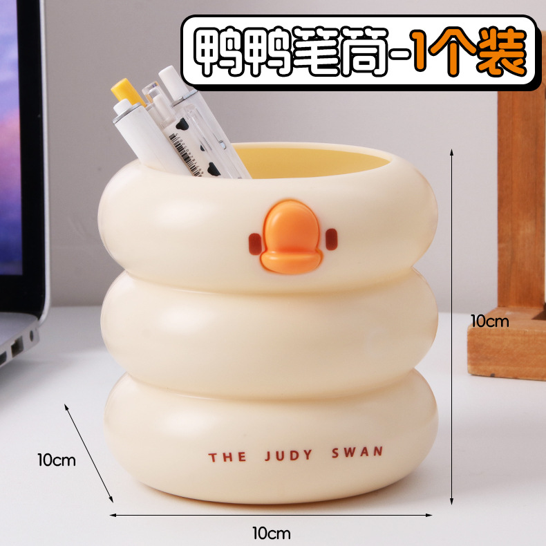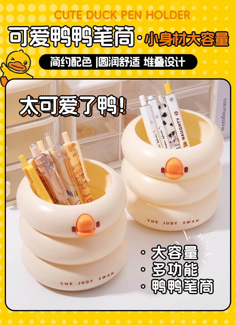 创意可爱鸭鸭笔筒大容量小学生文具收纳桶桌面化妆刷多功能收纳盒