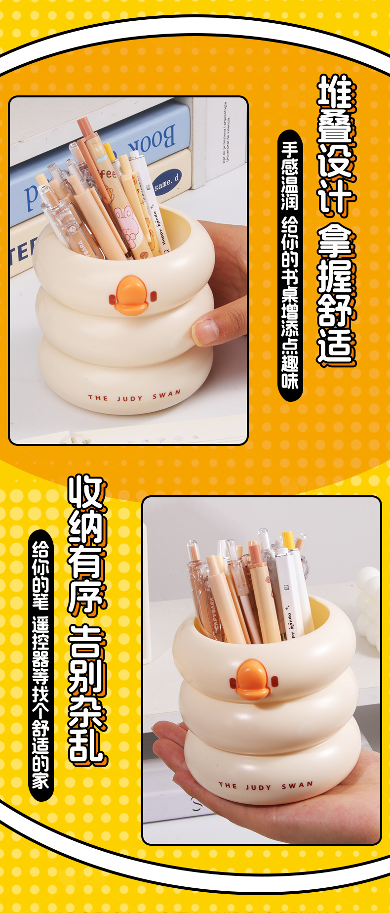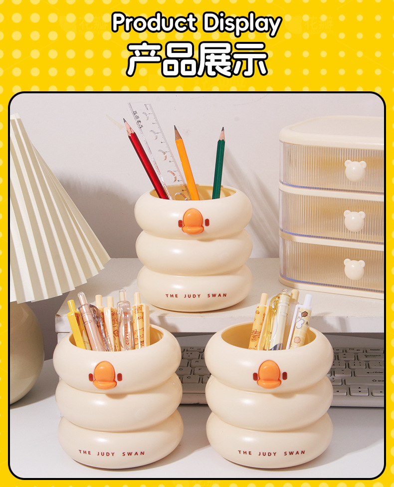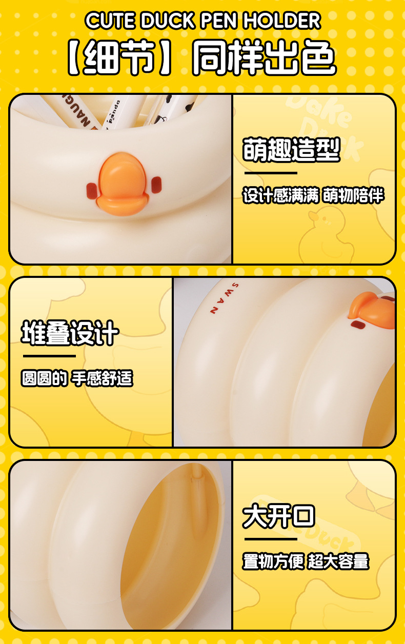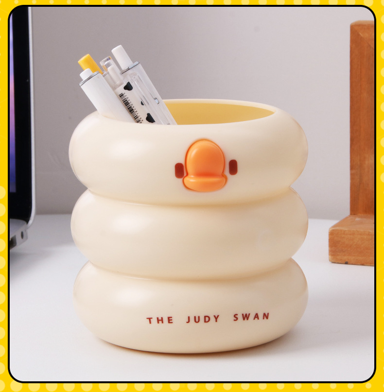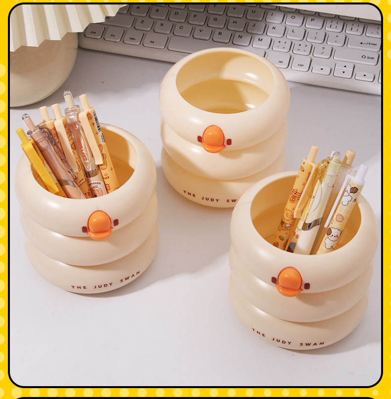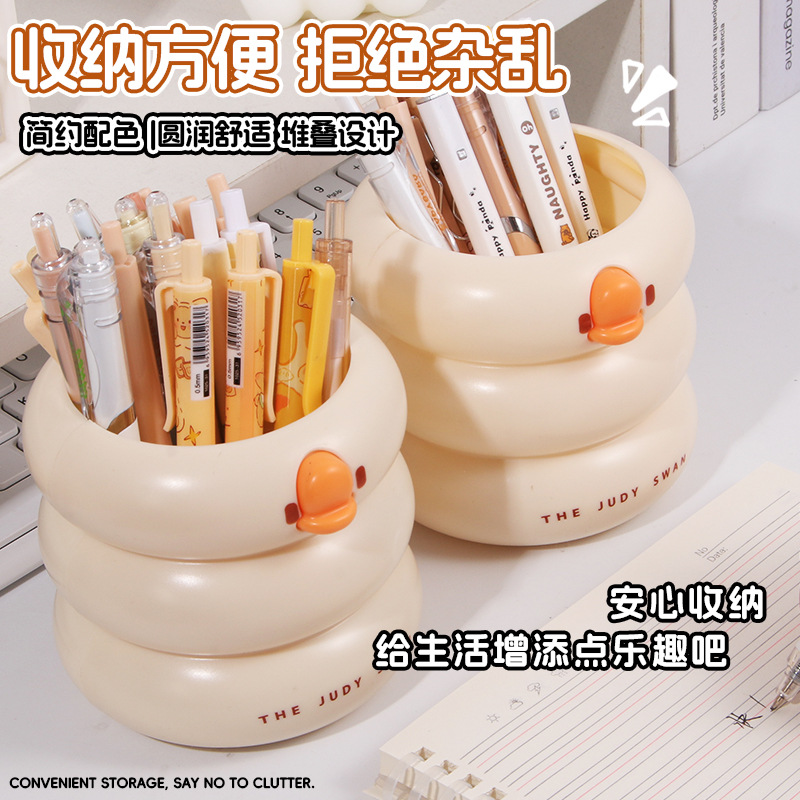 创意可爱鸭鸭笔筒大容量小学生文具收纳桶桌面化妆刷多功能收纳盒