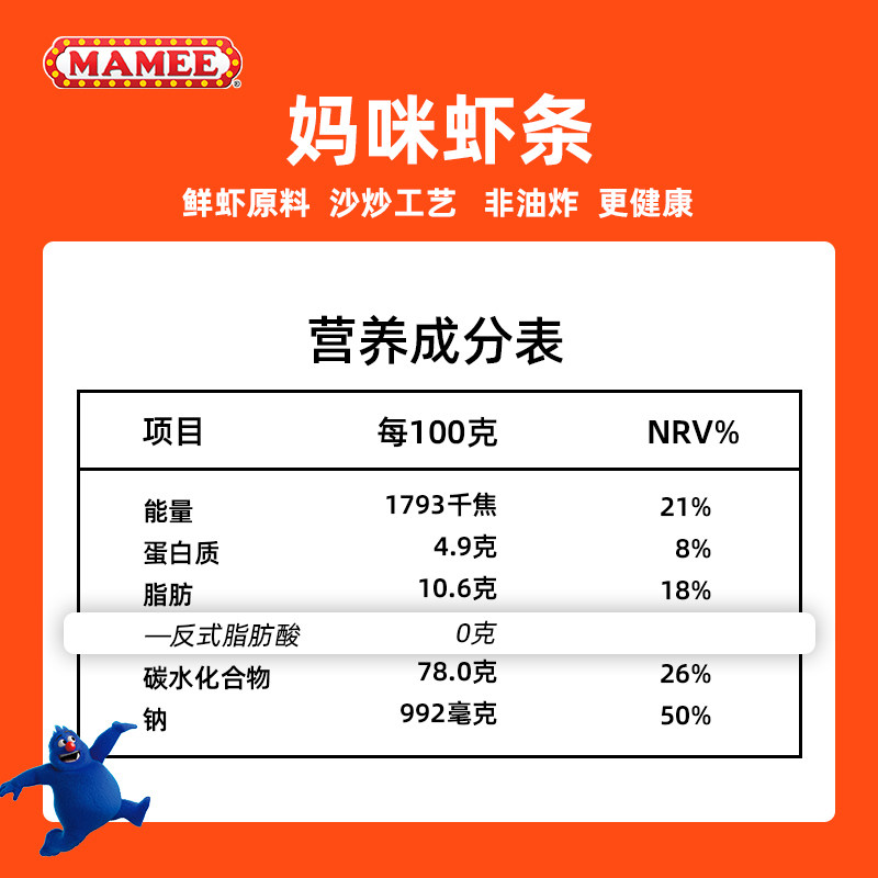 MAMEE/妈咪马来西亚原味虾条60g非油炸休闲食品美味零食看剧零食