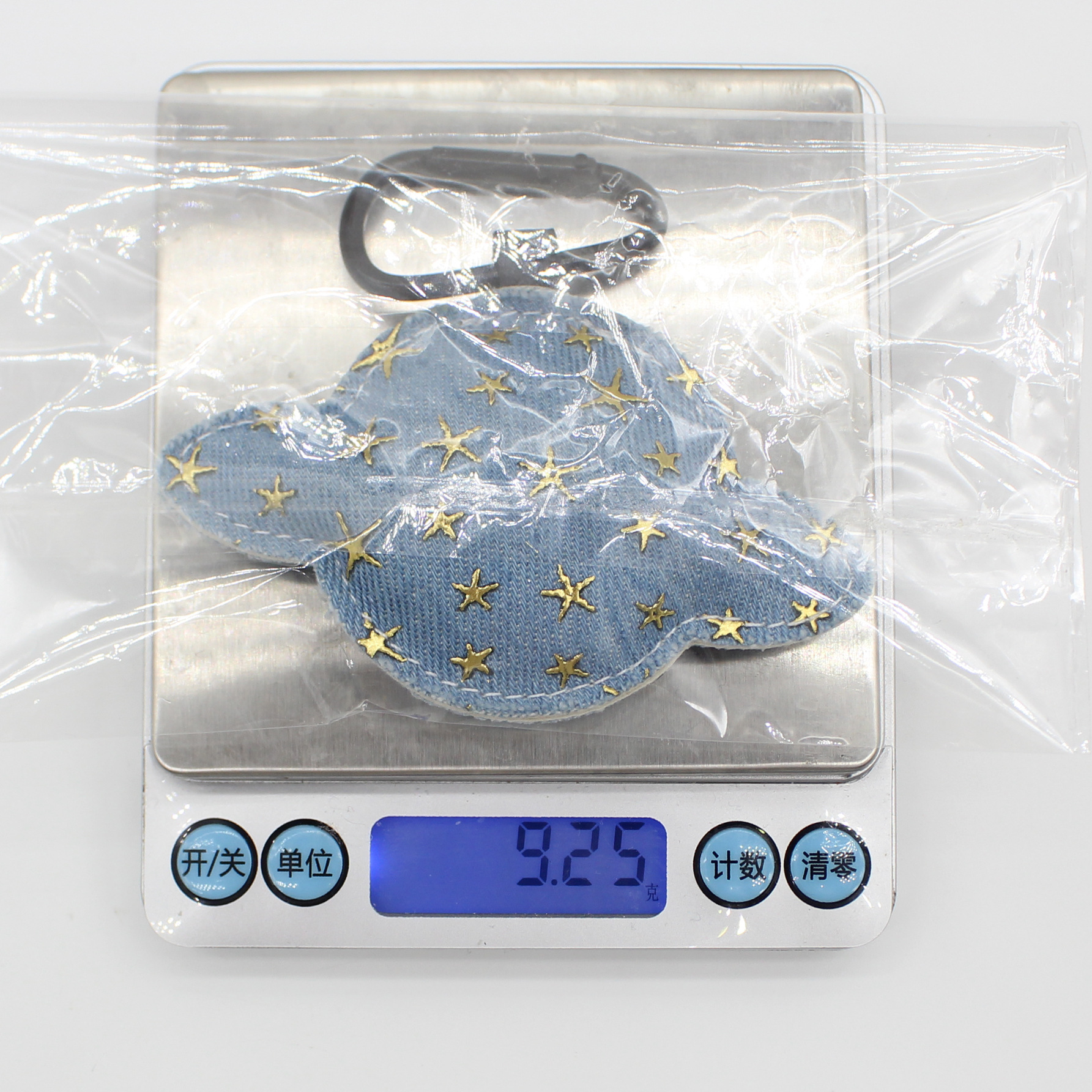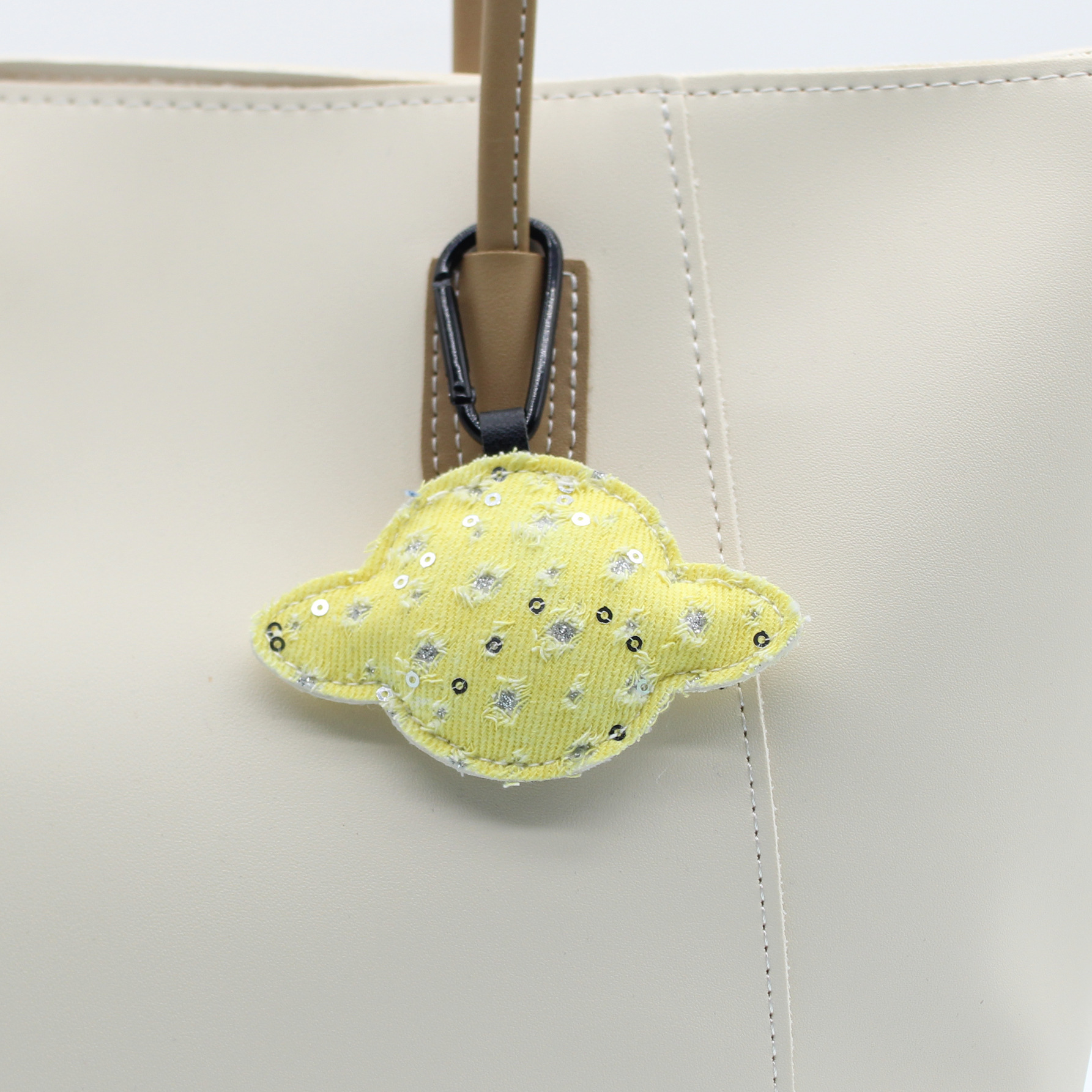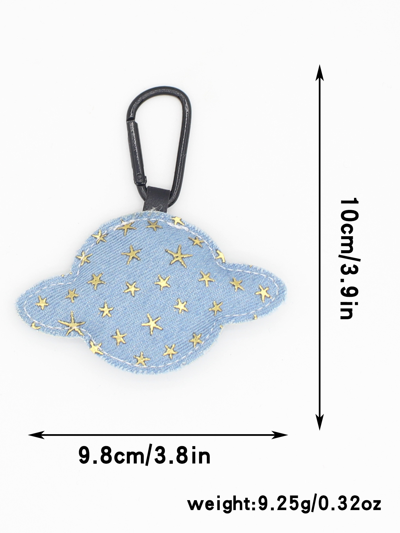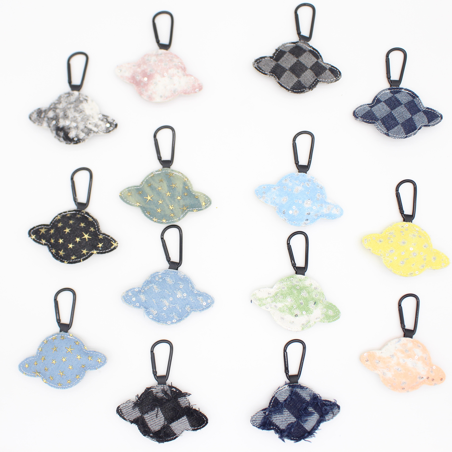 新款牛仔布格纹亮片小星球造型布艺钥匙扣包包挂件饰品创意小红书