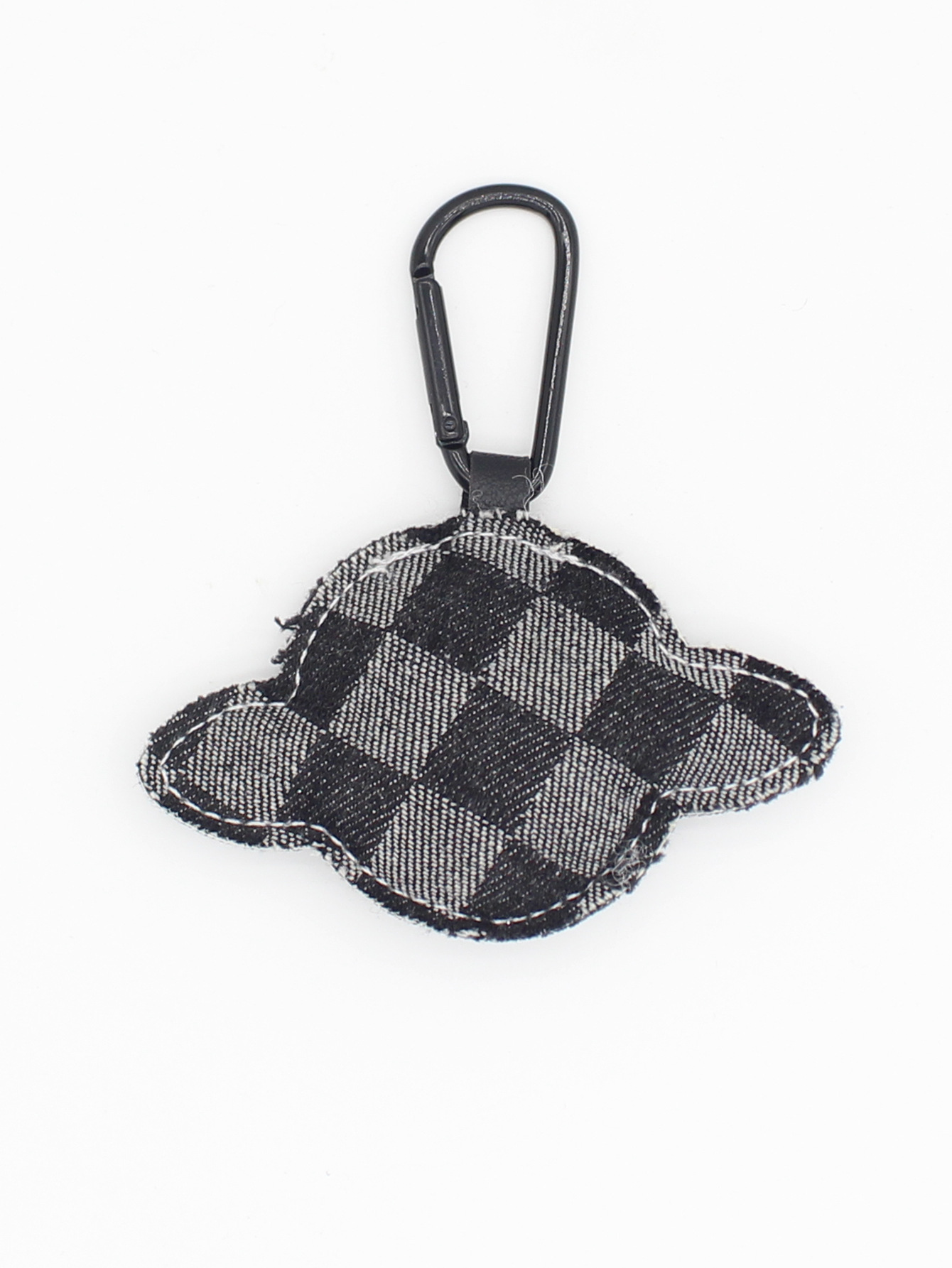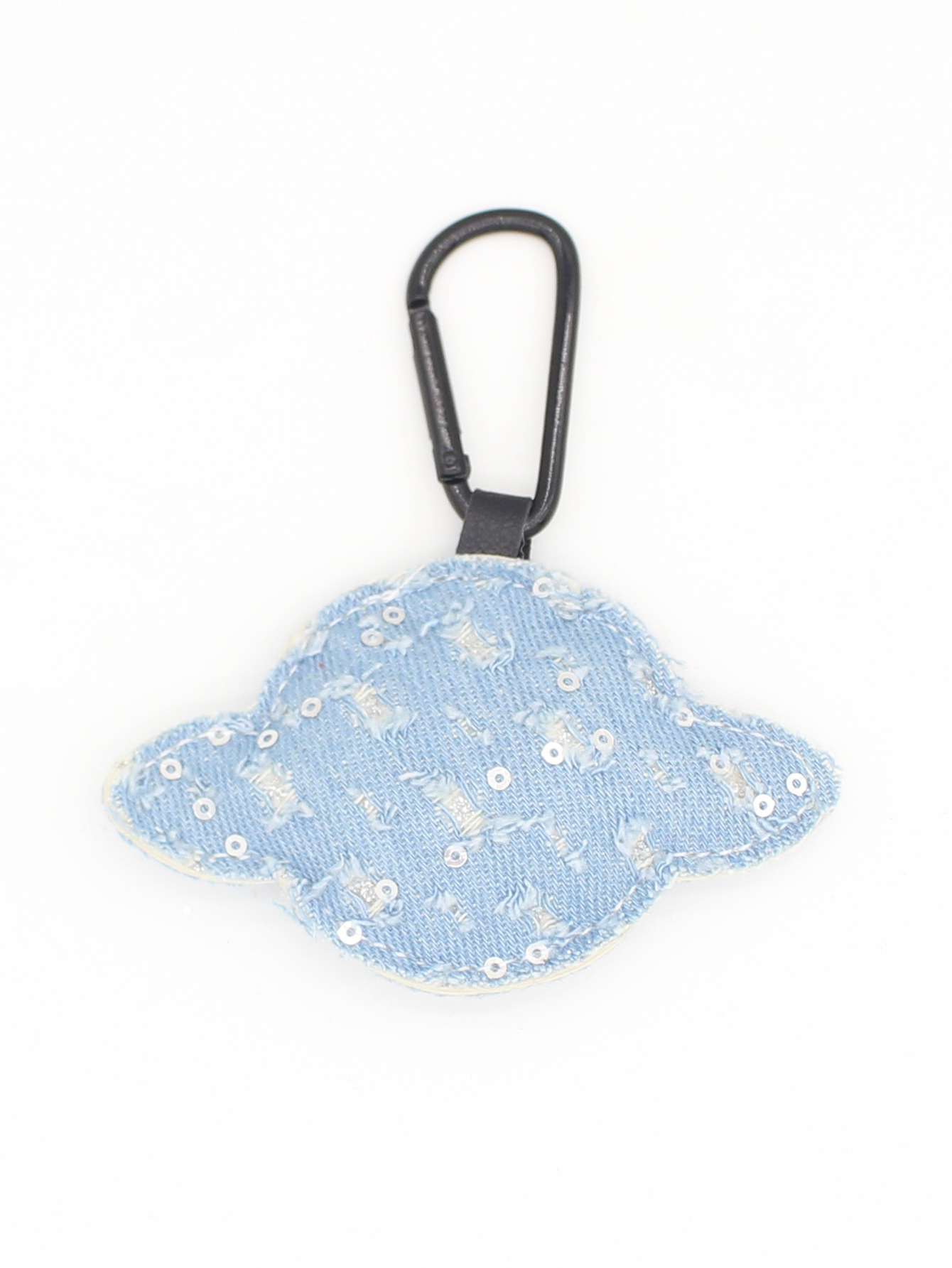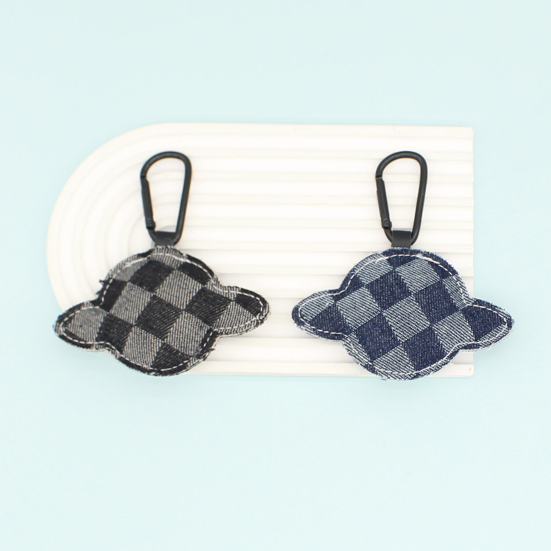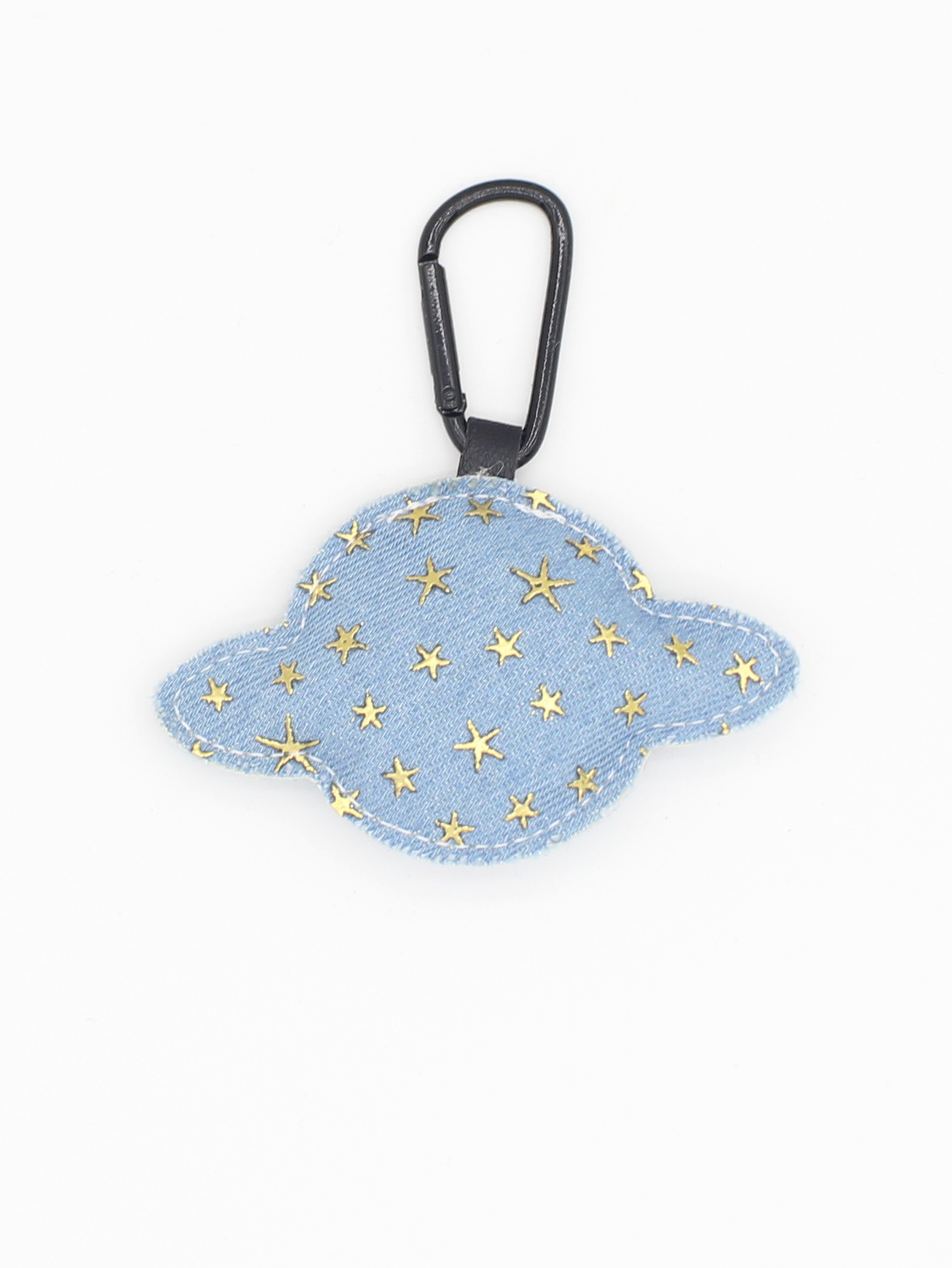 新款牛仔布格纹亮片小星球造型布艺钥匙扣包包挂件饰品创意小红书