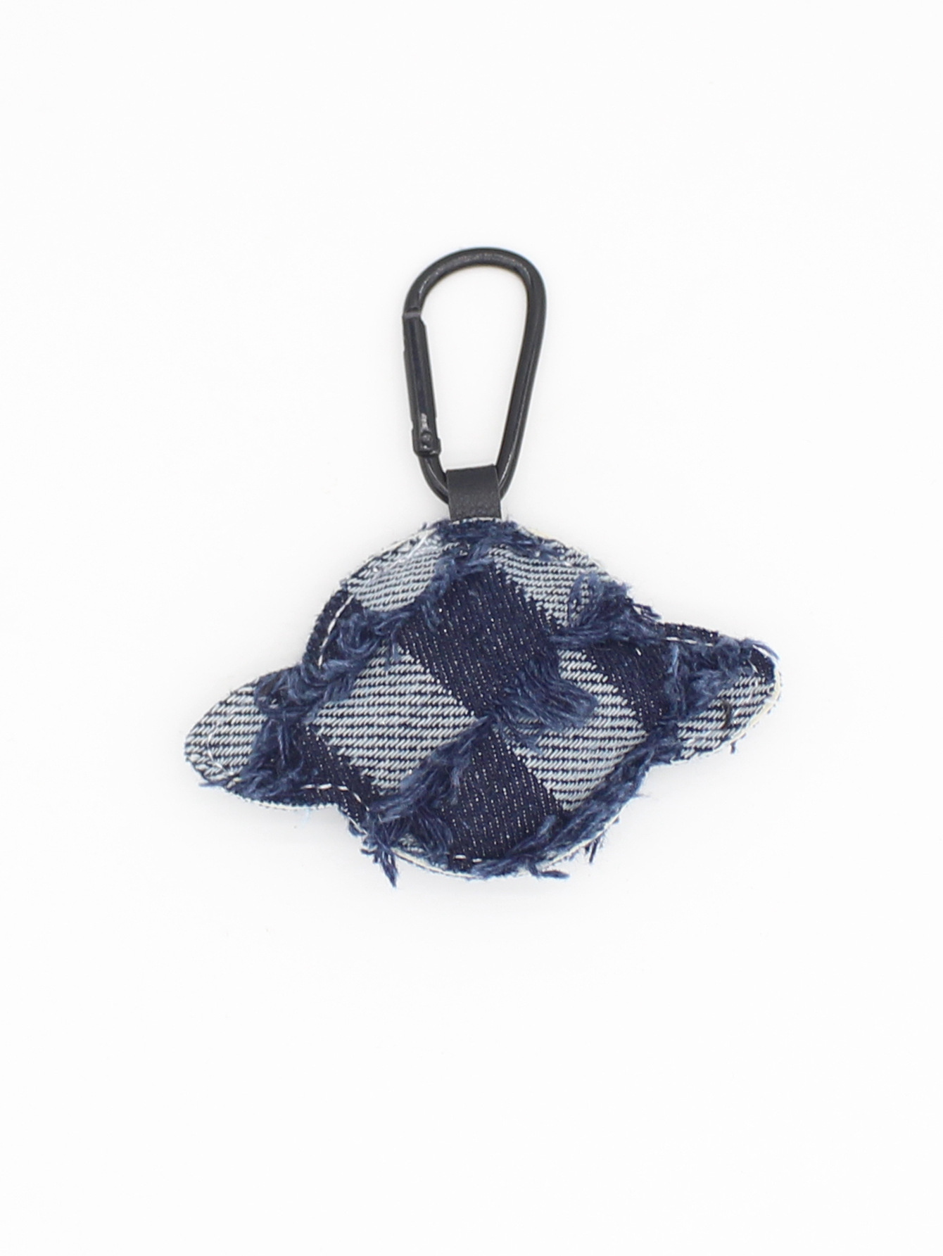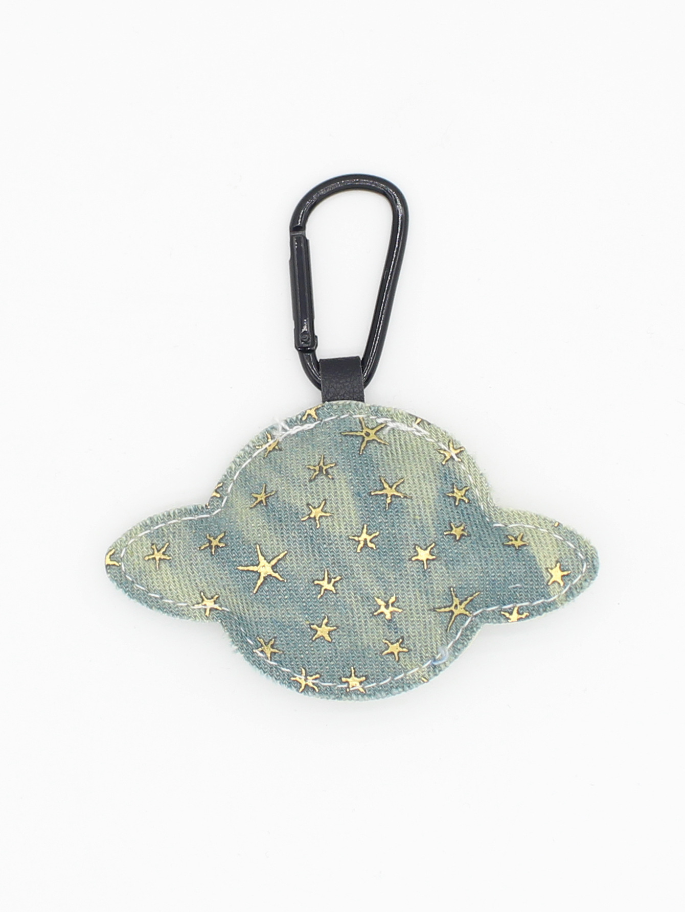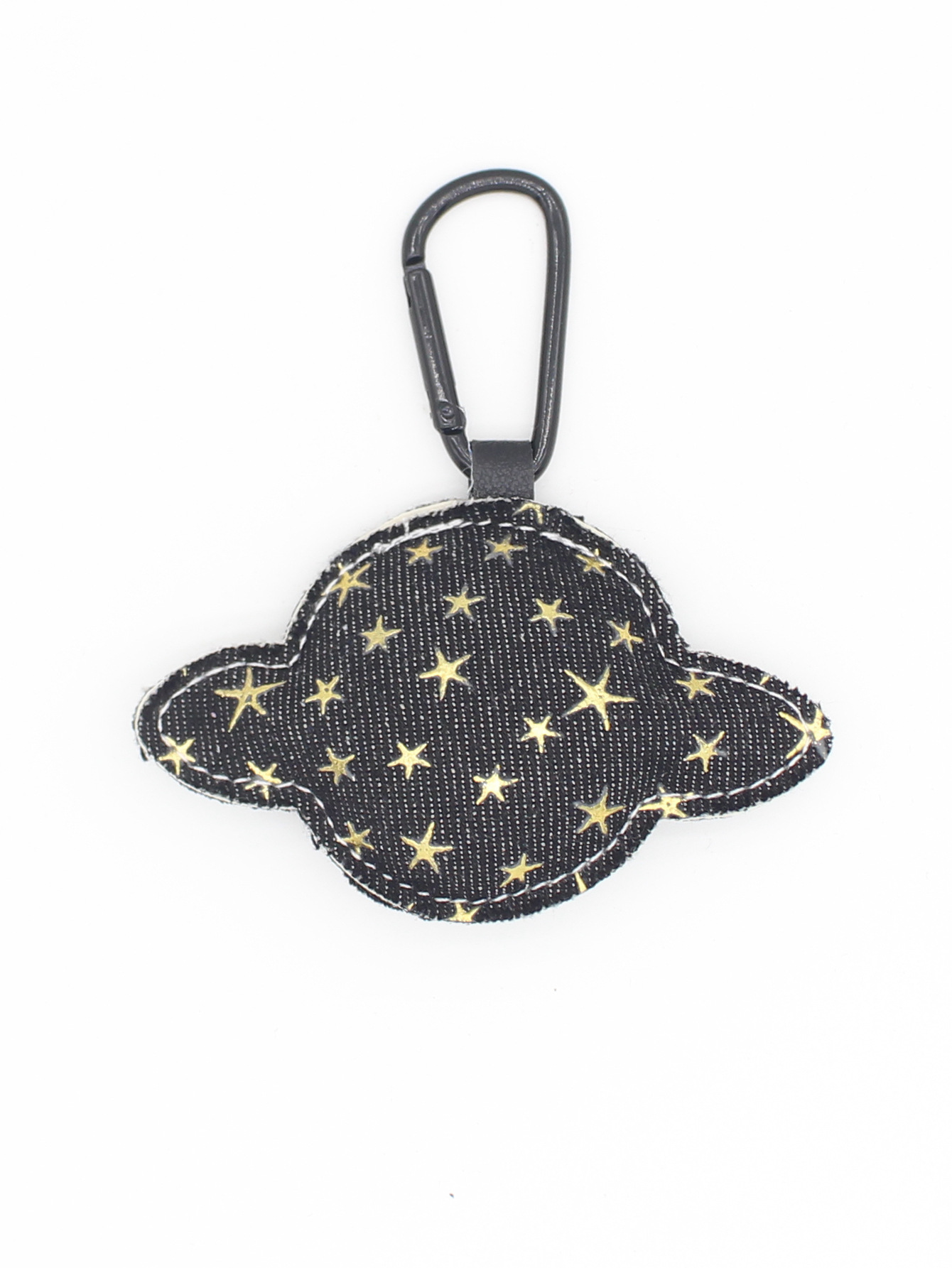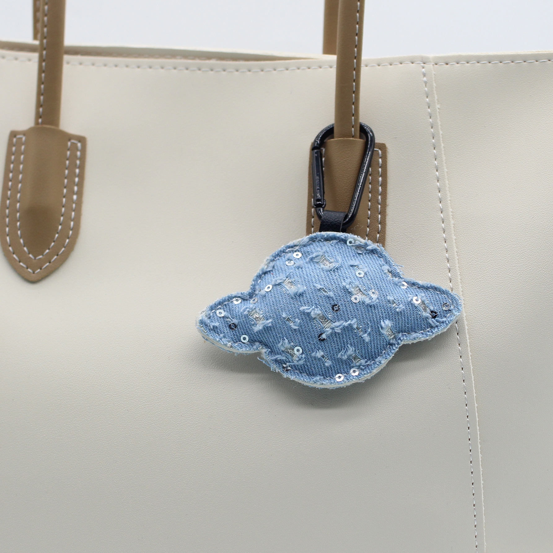 新款牛仔布格纹亮片小星球造型布艺钥匙扣包包挂件饰品创意小红书