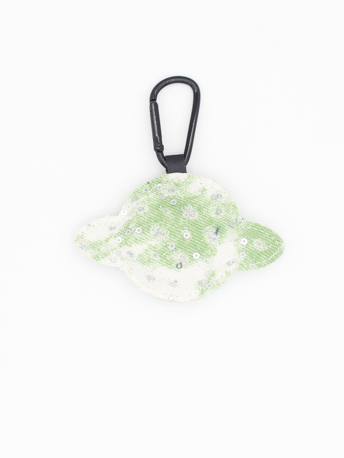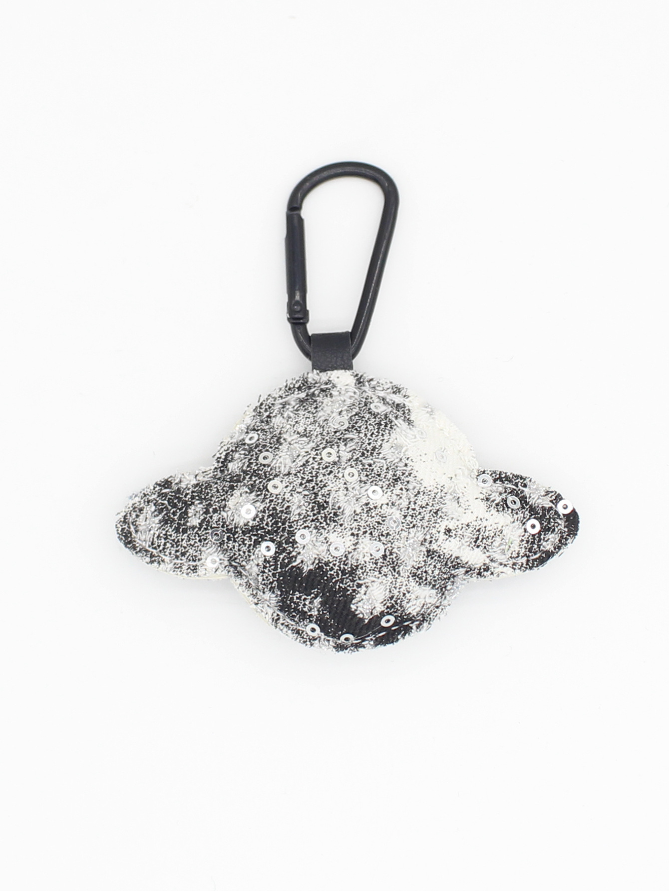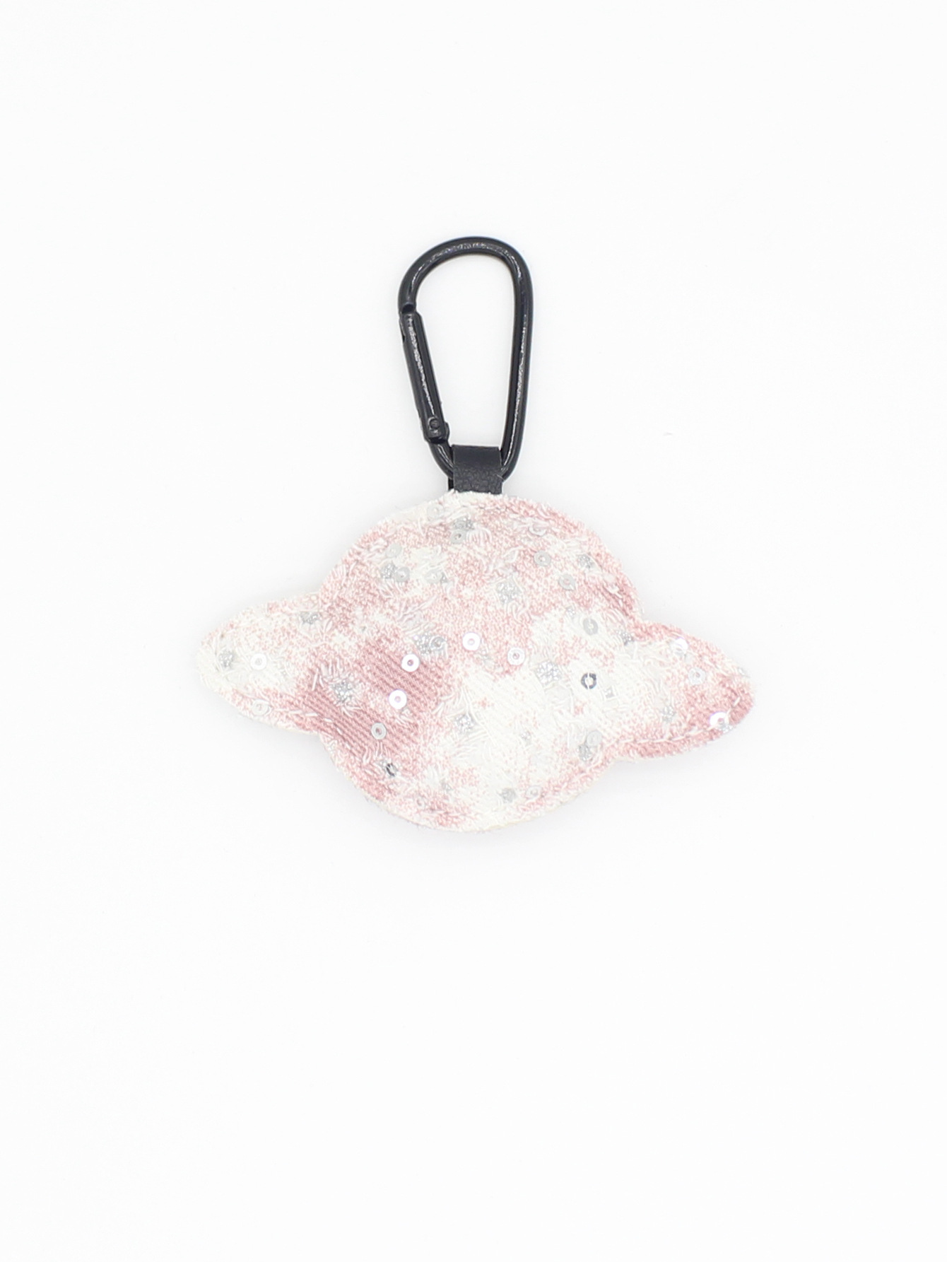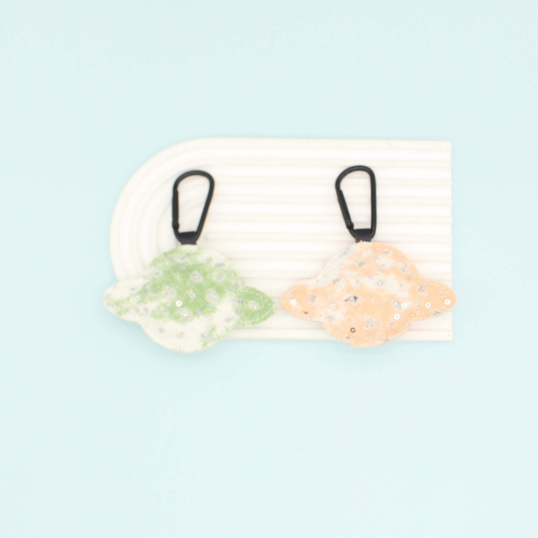 新款牛仔布格纹亮片小星球造型布艺钥匙扣包包挂件饰品创意小红书