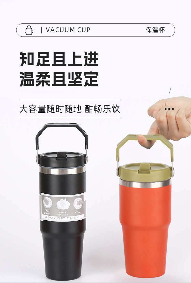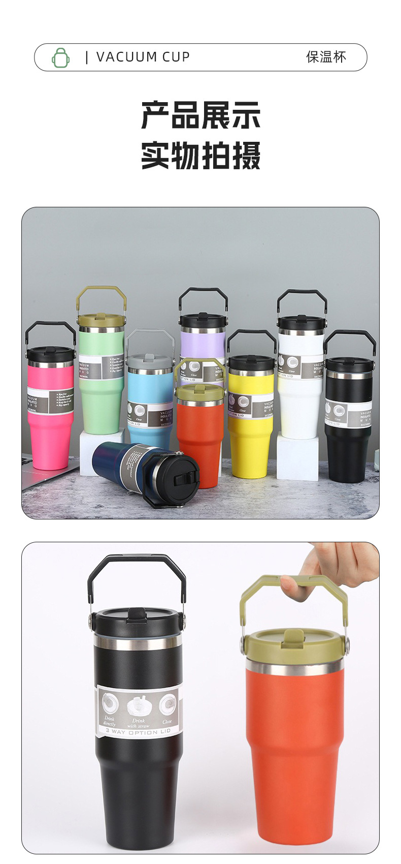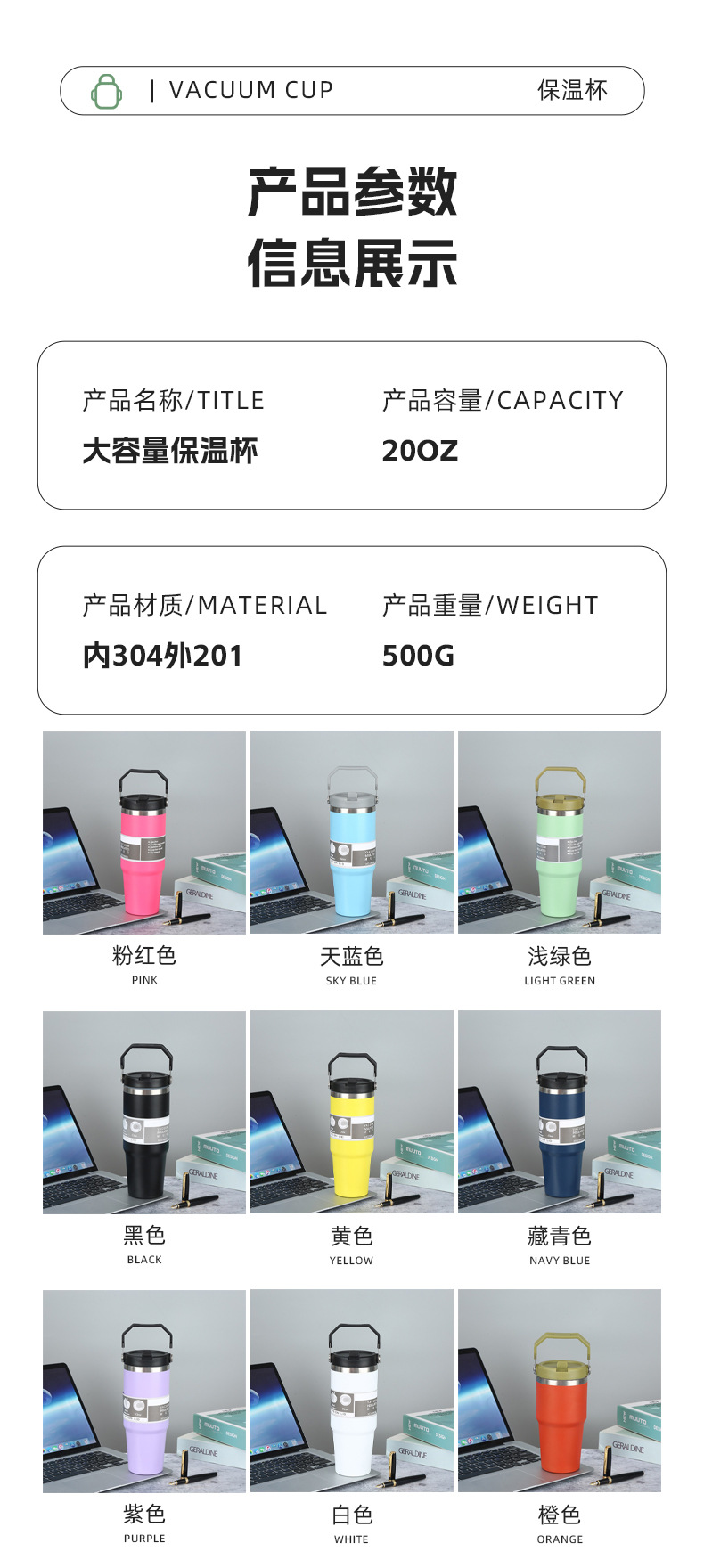 手提盖20oz汽车杯真空吸管冰霸杯304不锈钢户外手提运动健身水杯