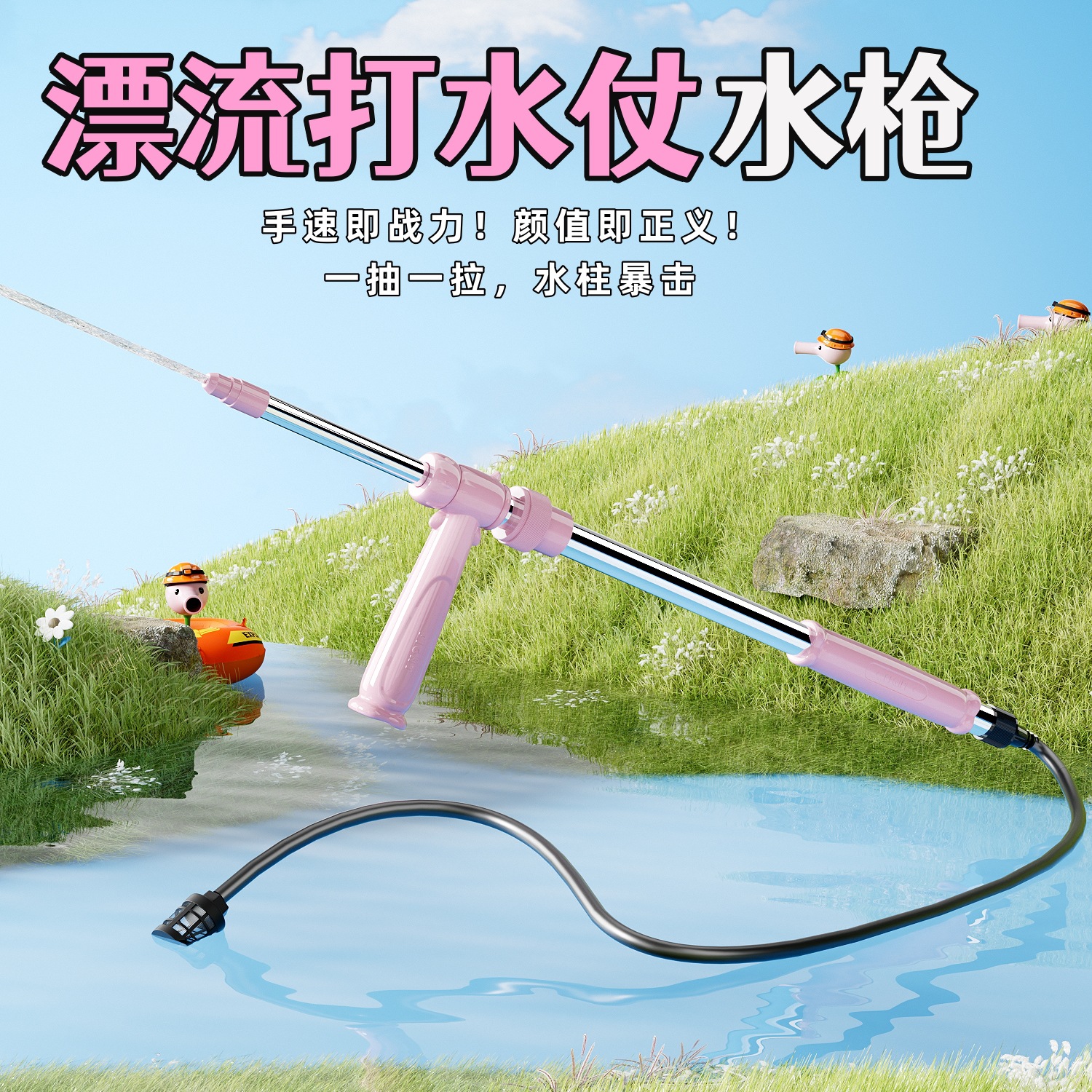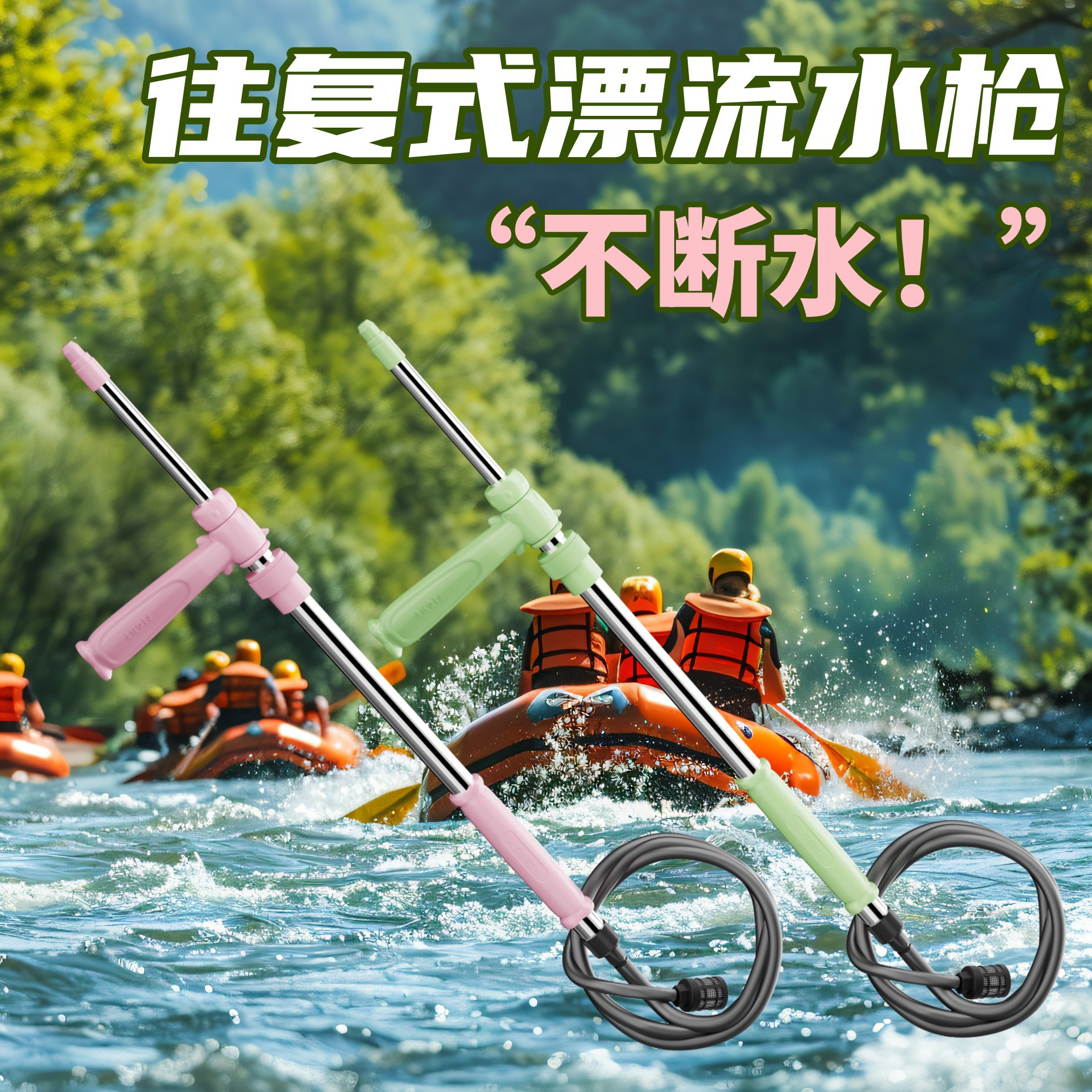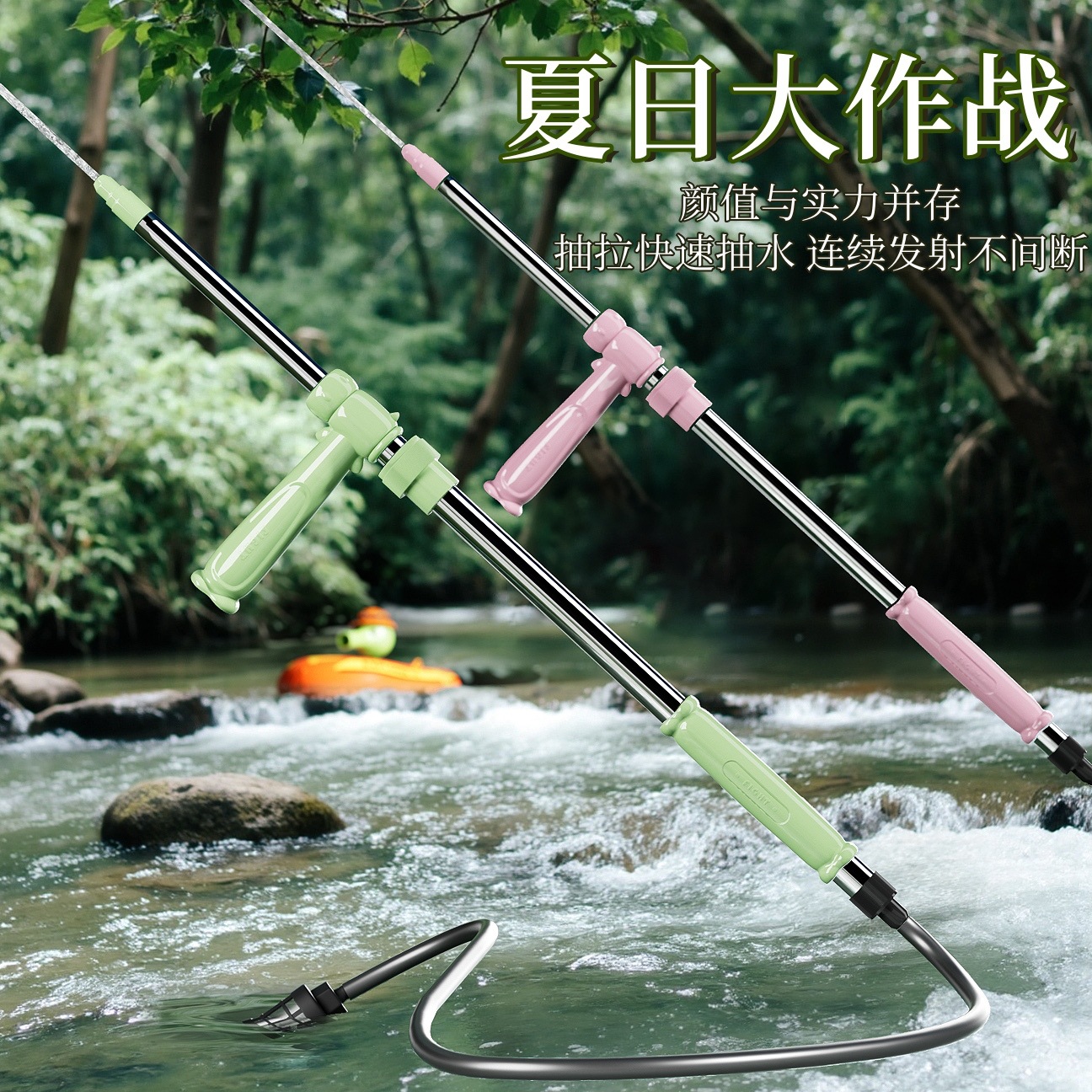 便携式水不锈钢枪漂流水枪儿童户外成人夏季抽拉式水上玩具