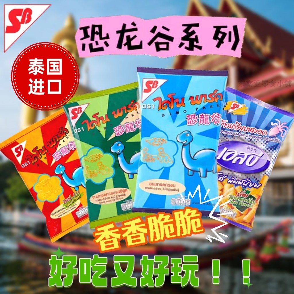 泰国进口SB牌恐龙谷通心脆零食原味海鲜味香辣味薯片儿童零食