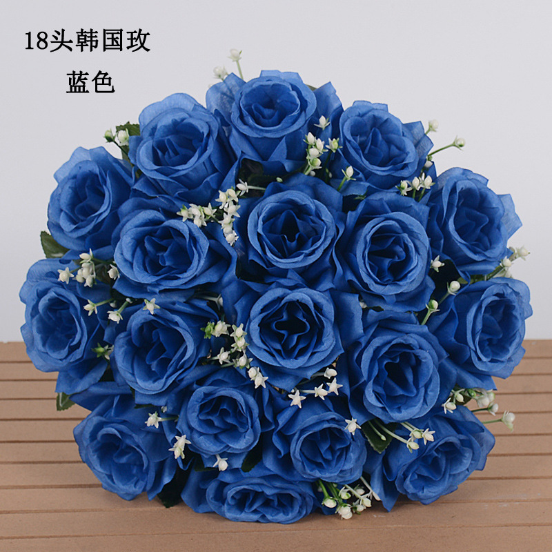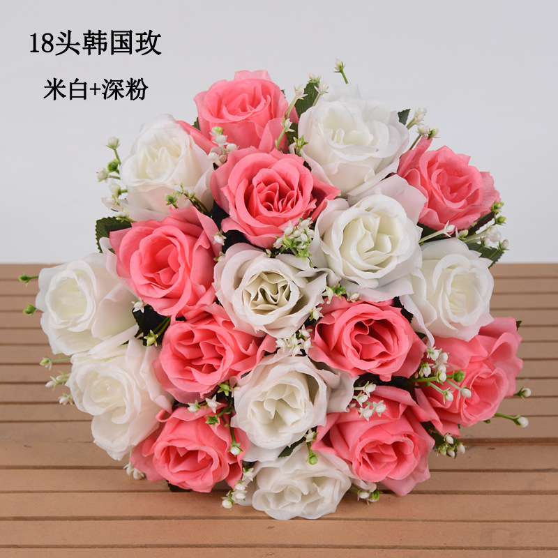 仿真花假花18朵大韩国玫瑰花束婚庆手捧花客厅摆件手工花绢花批发