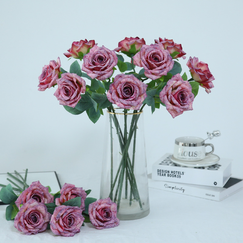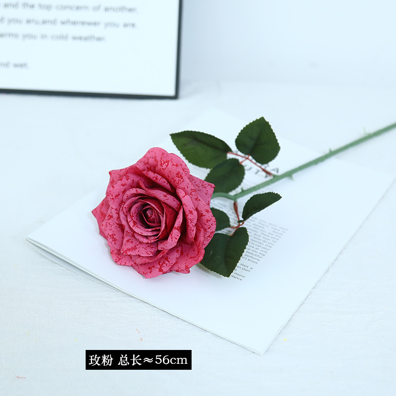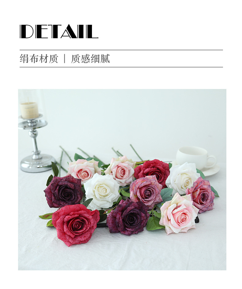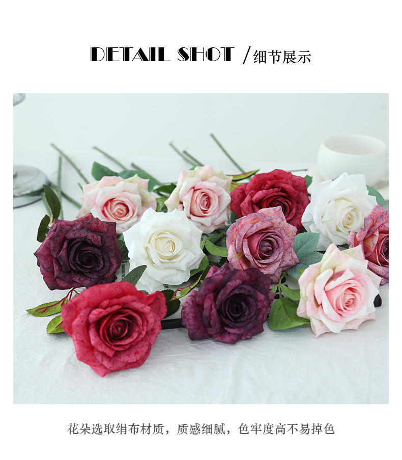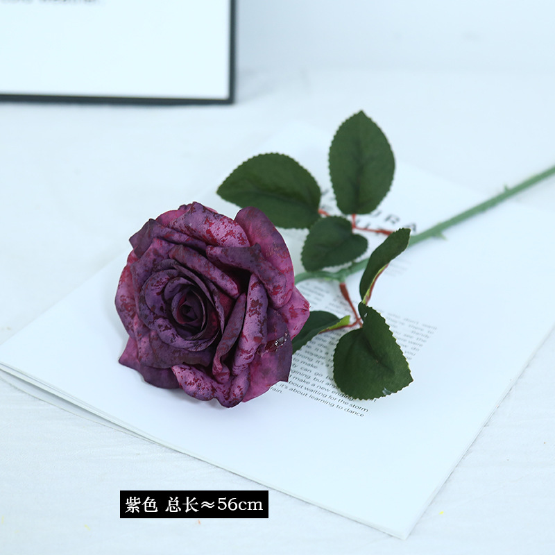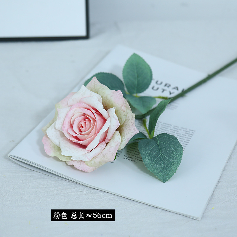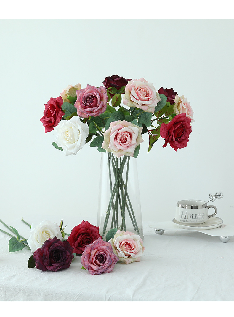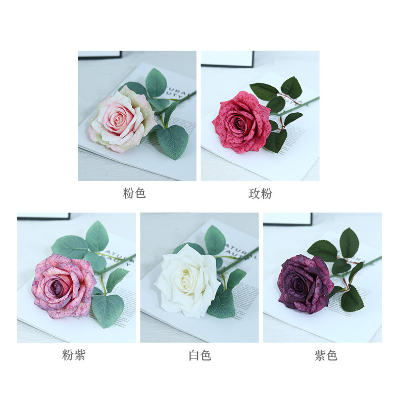 欧式复古油画风单枝雪花玫瑰假花家居婚庆装饰摆件高级感仿真花