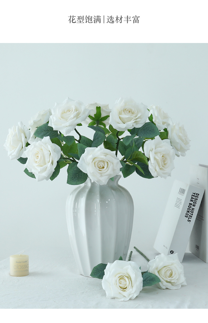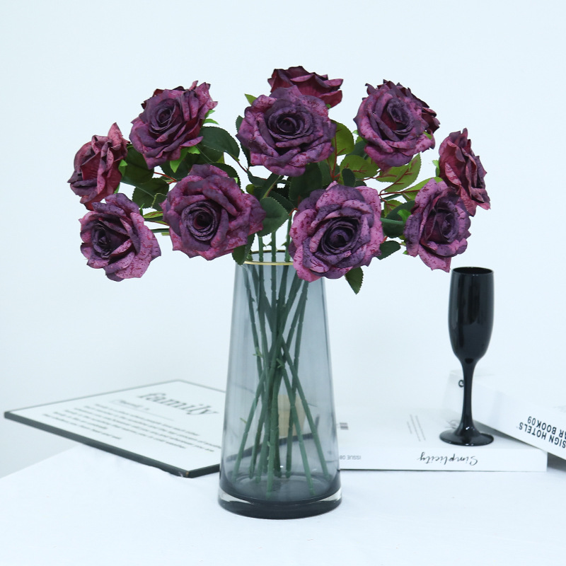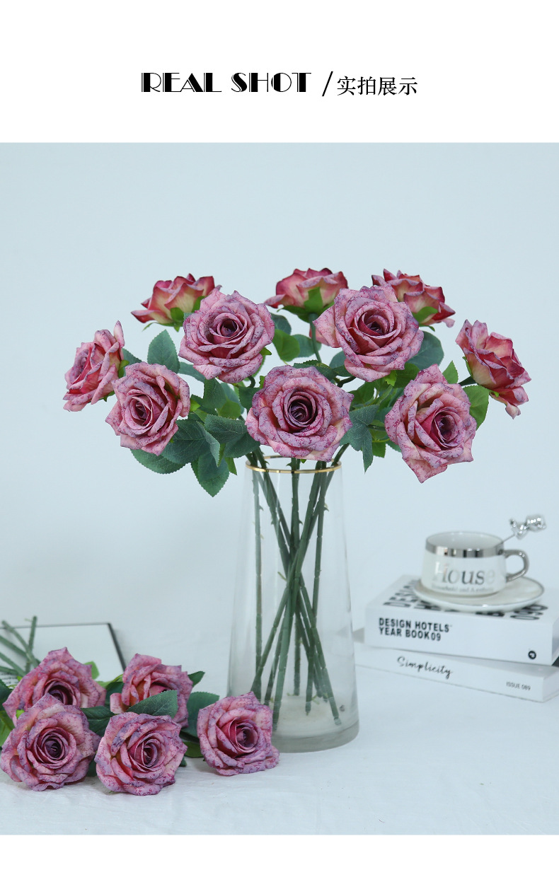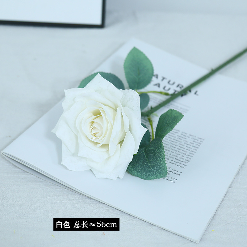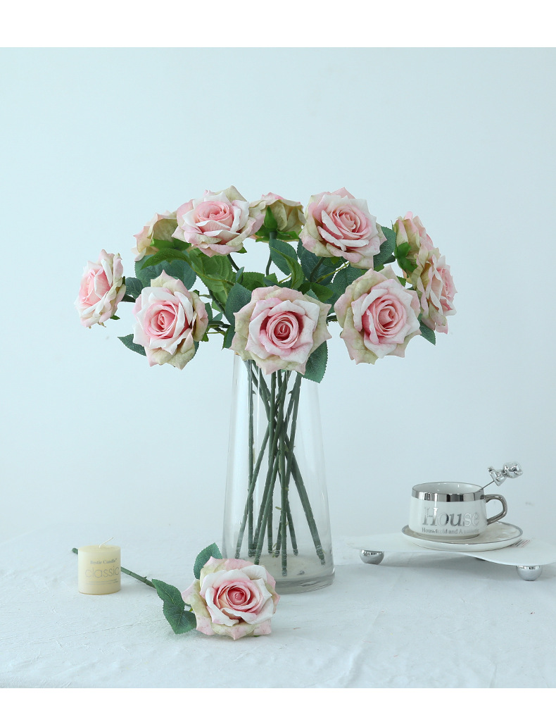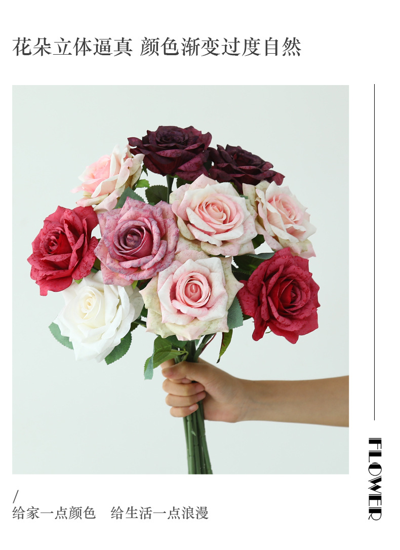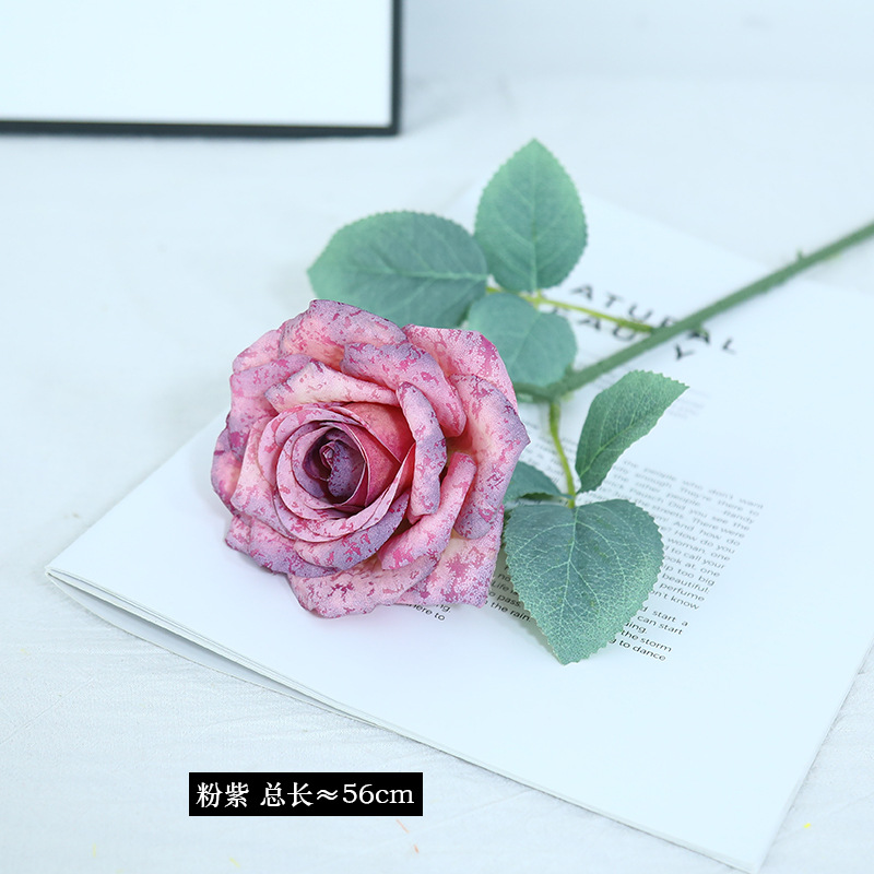 欧式复古油画风单枝雪花玫瑰假花家居婚庆装饰摆件高级感仿真花