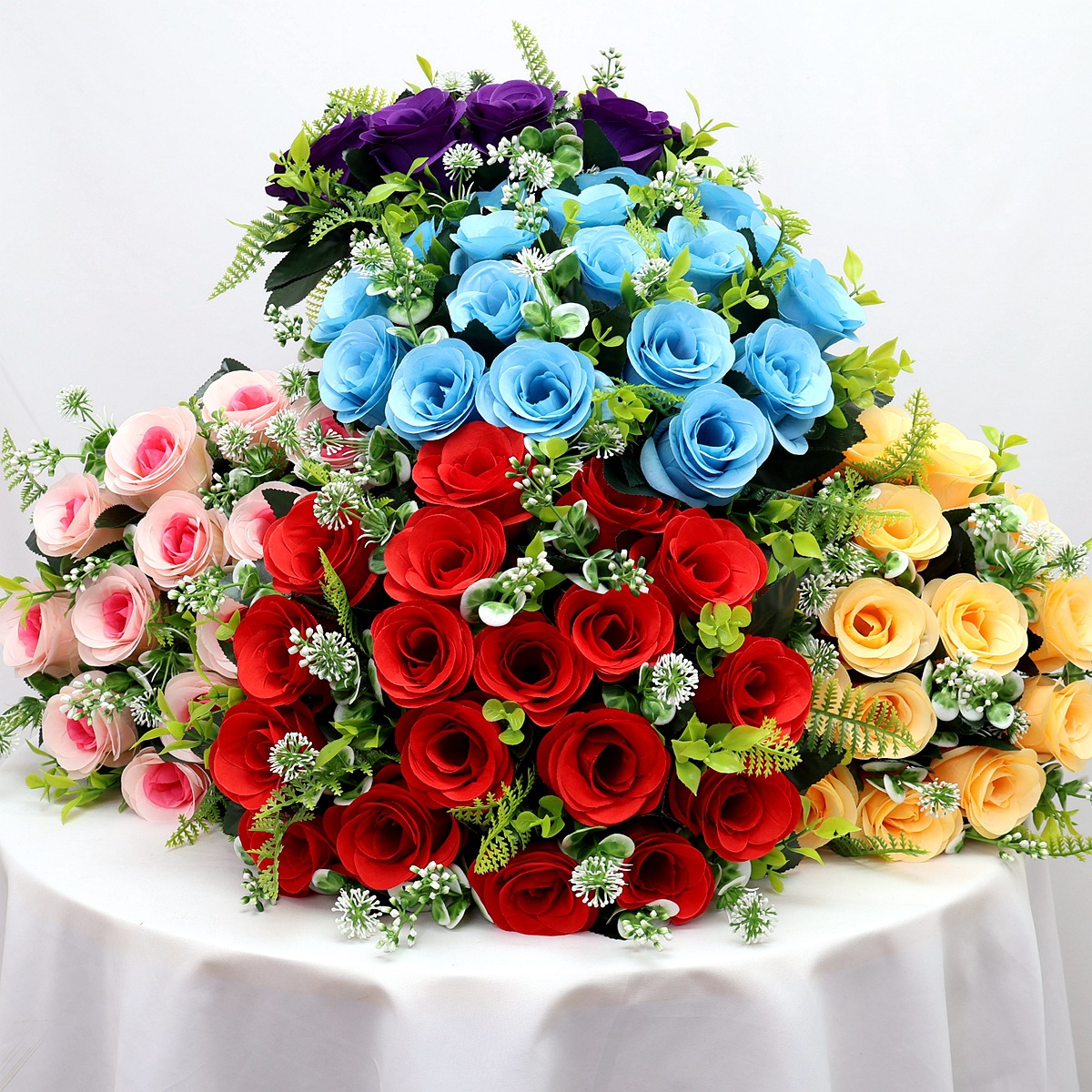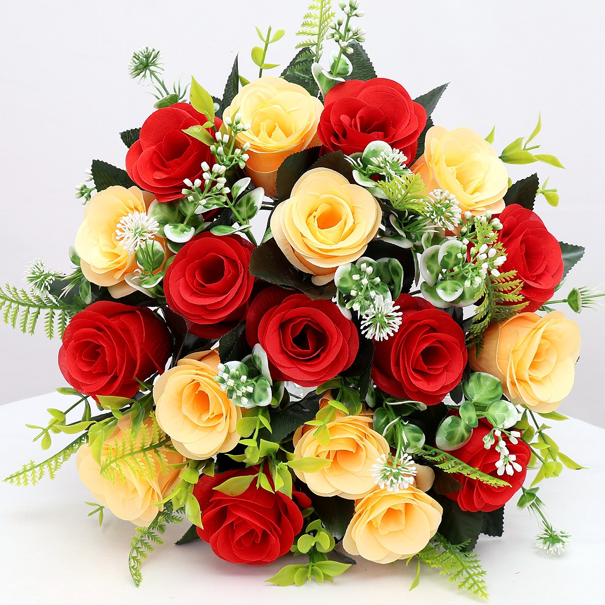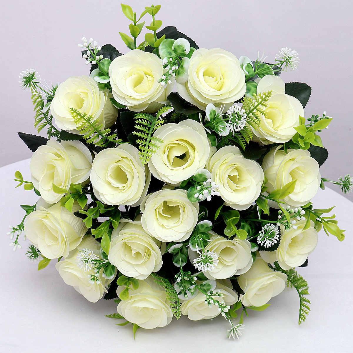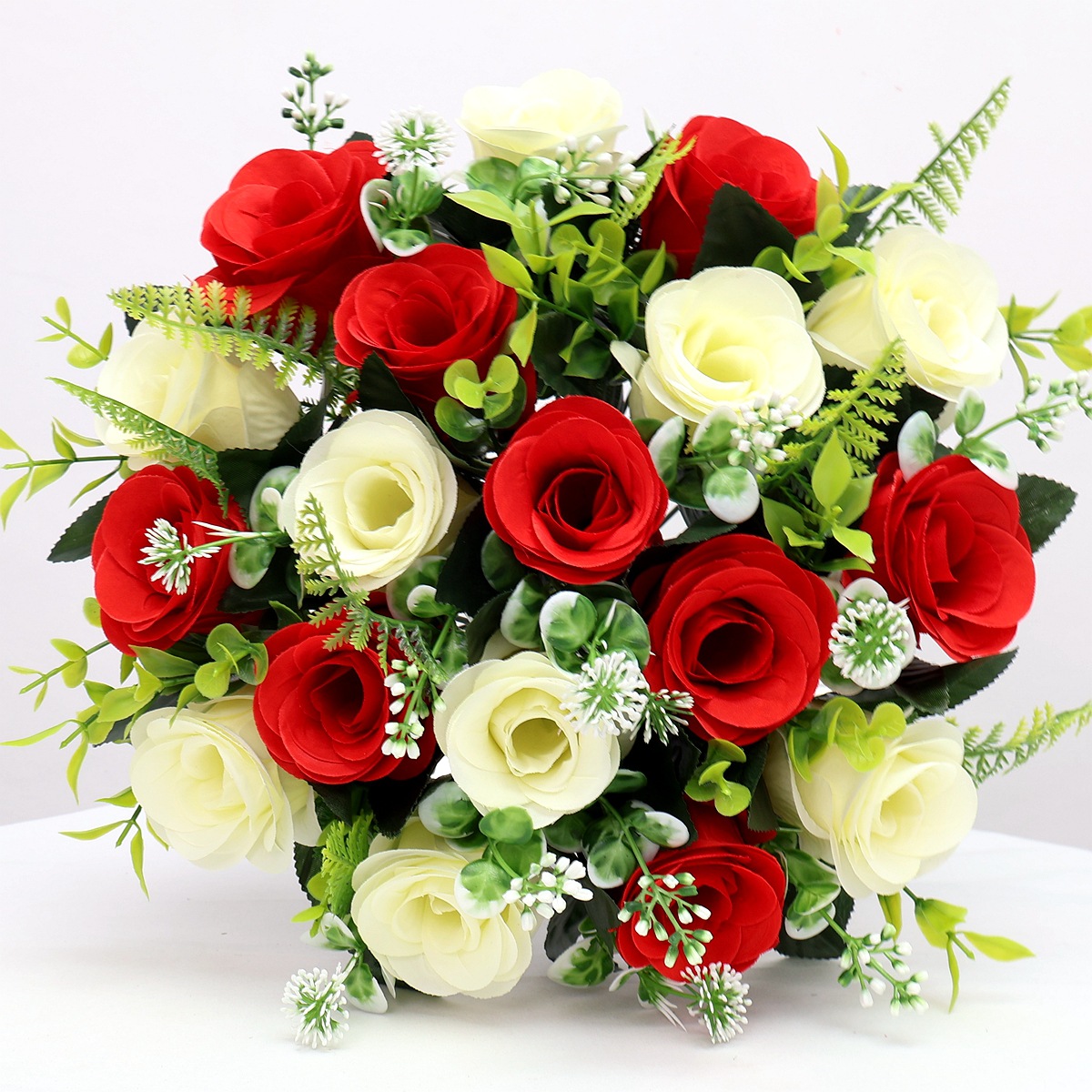 跨境仿真花新娘手捧花束18头平头仿真玫瑰手把花居家装饰假花摆放