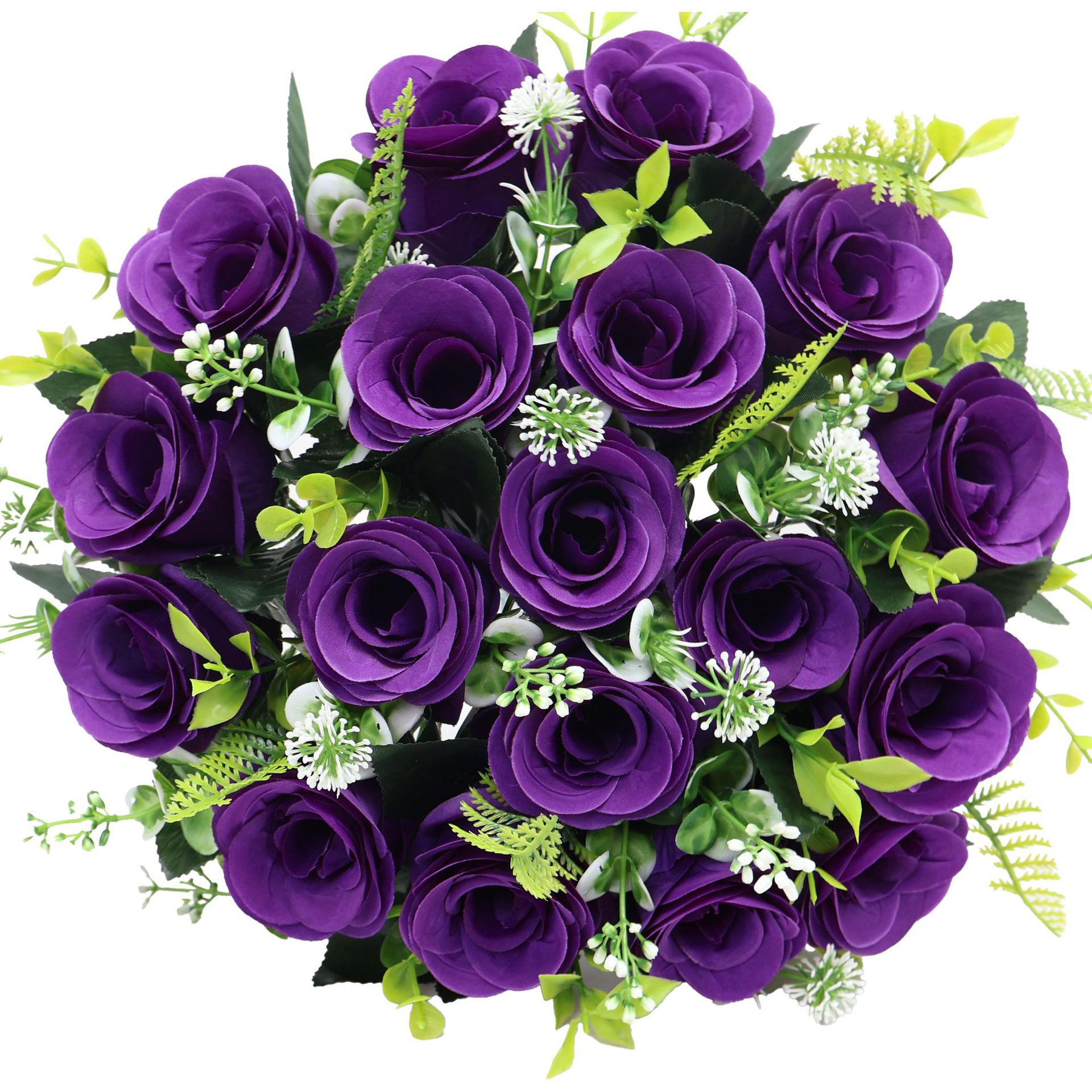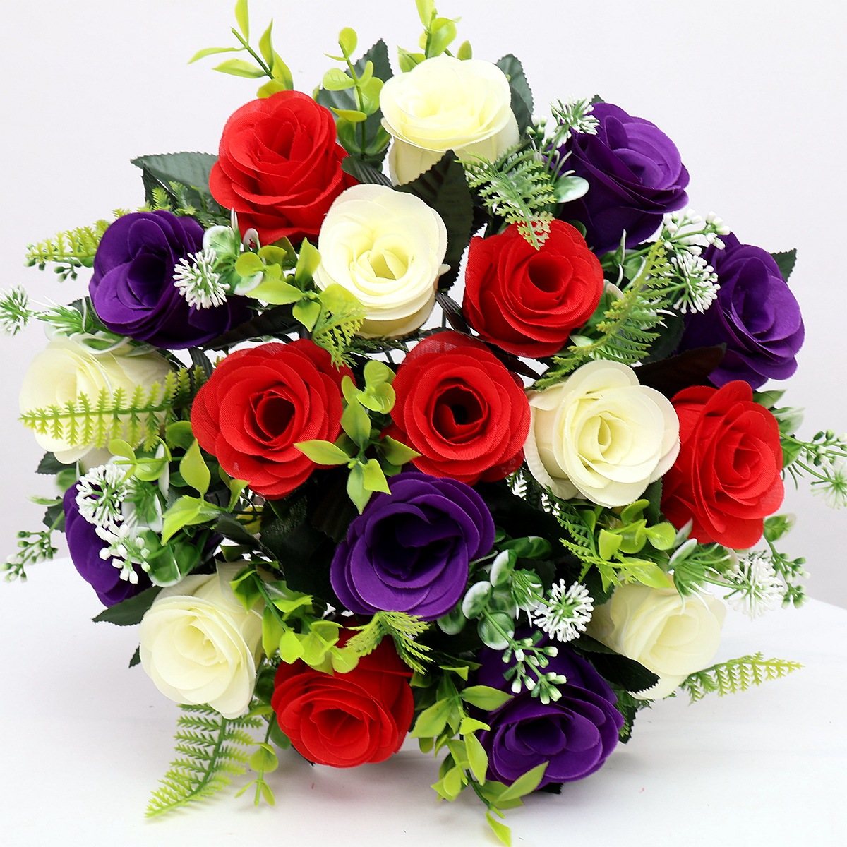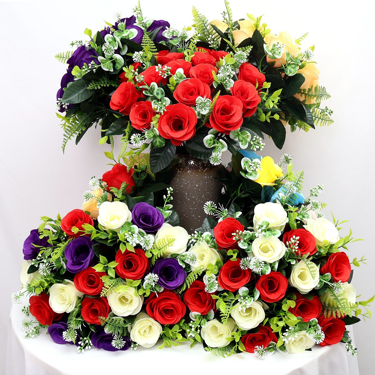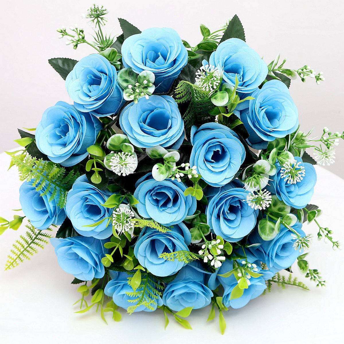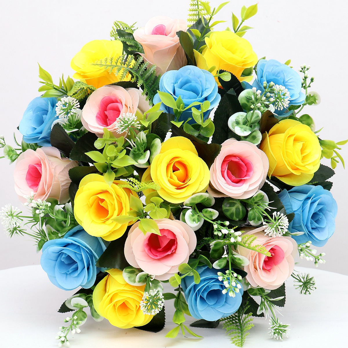 跨境仿真花新娘手捧花束18头平头仿真玫瑰手把花居家装饰假花摆放