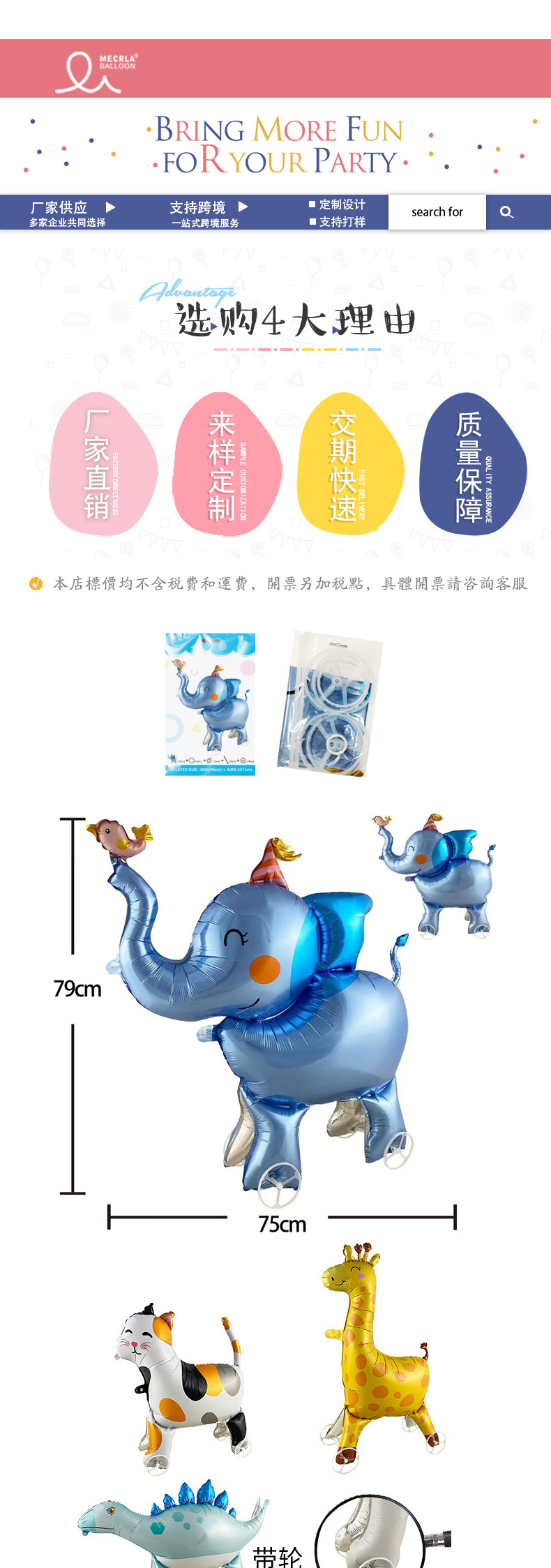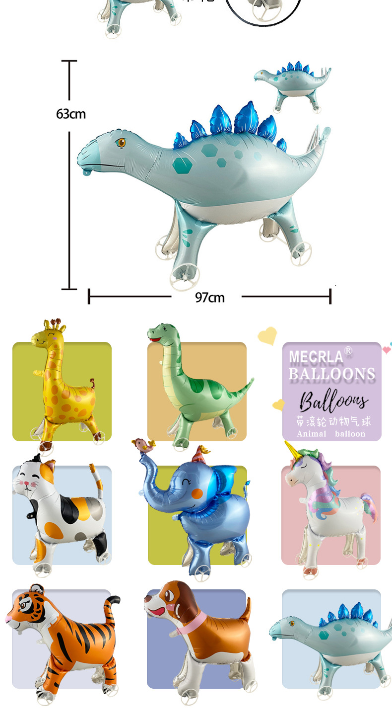 MECRLA滚轮走路 狗猫动物独角兽老虎大象恐龙汽车 消防车校车气球