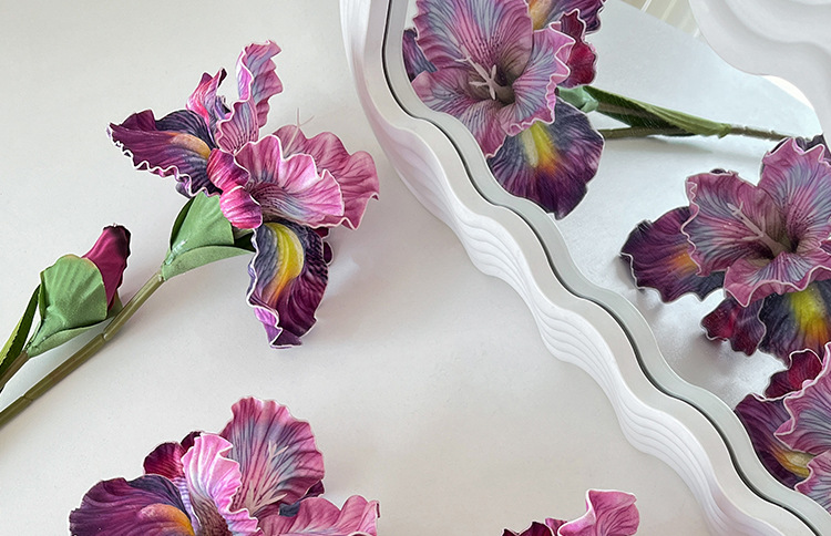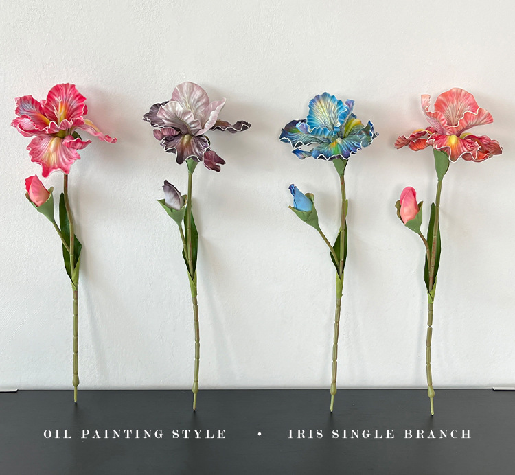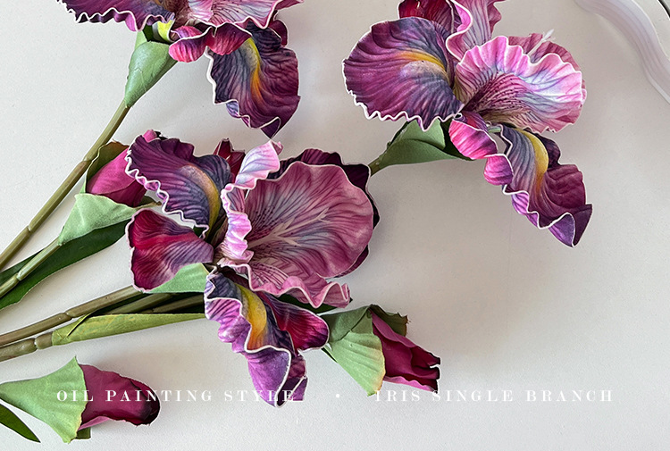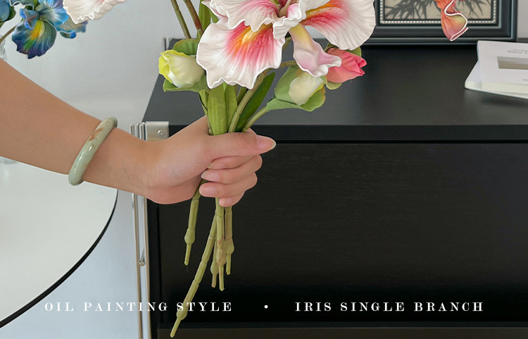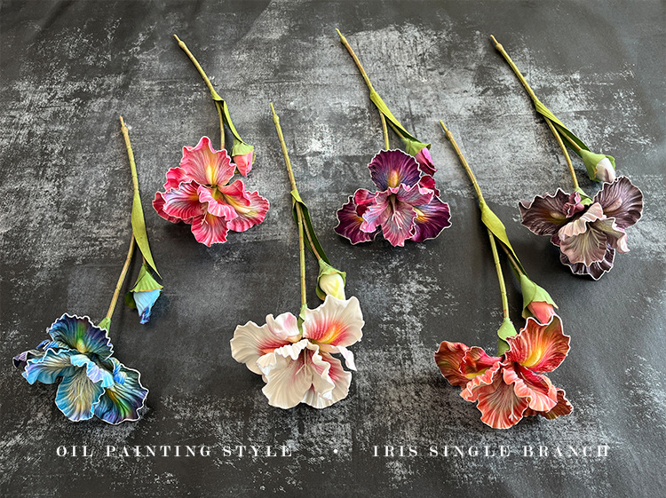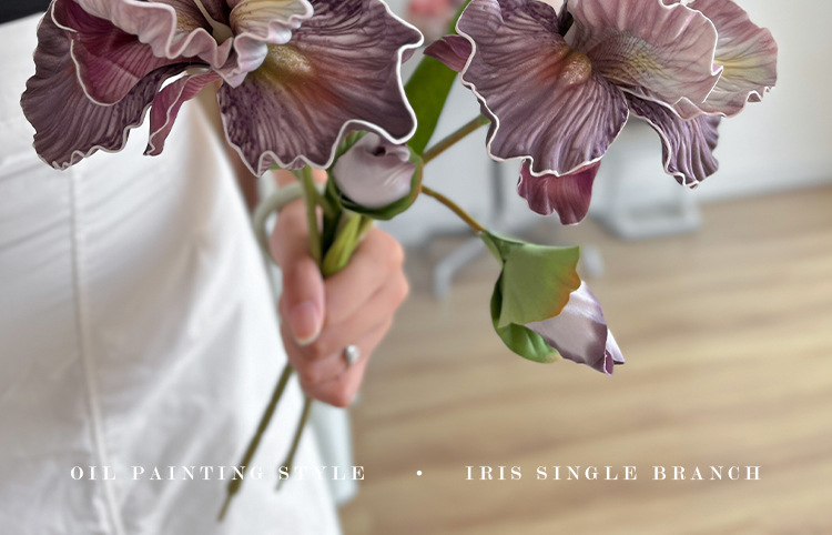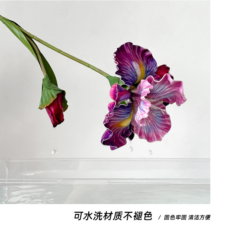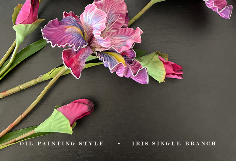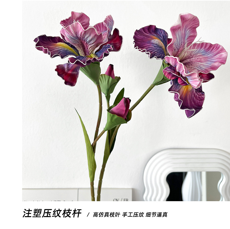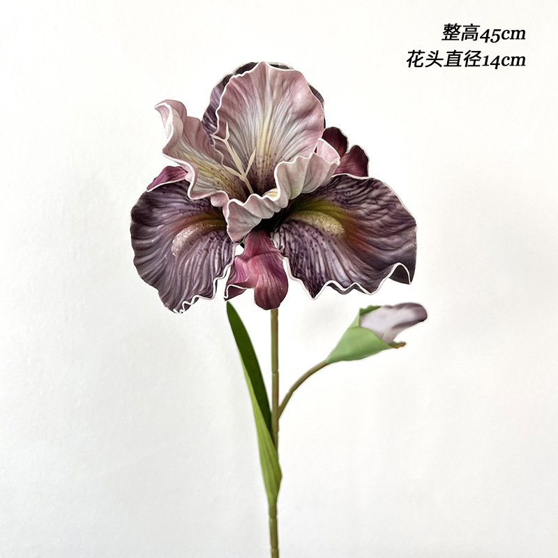 45cm短枝2头鸢尾花爱丽丝EVA手感仿真花自然风油画色假花家居装饰