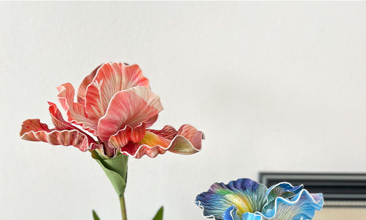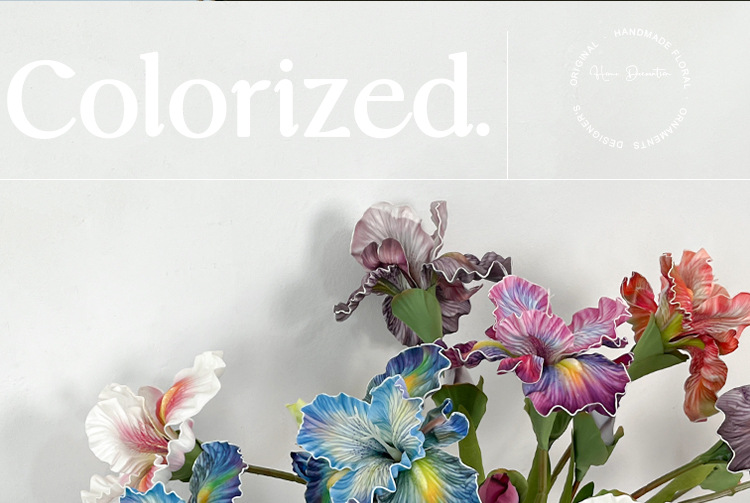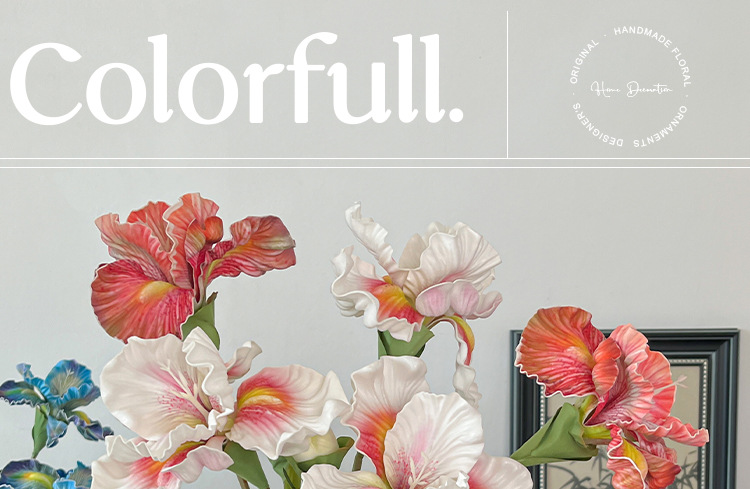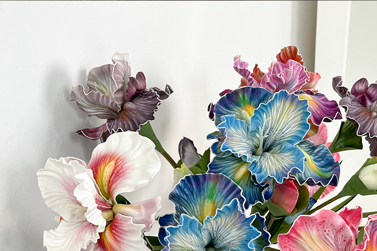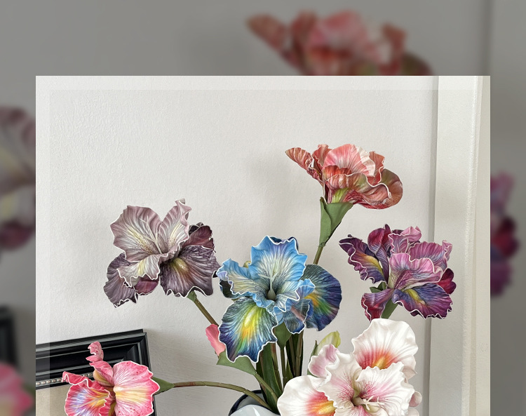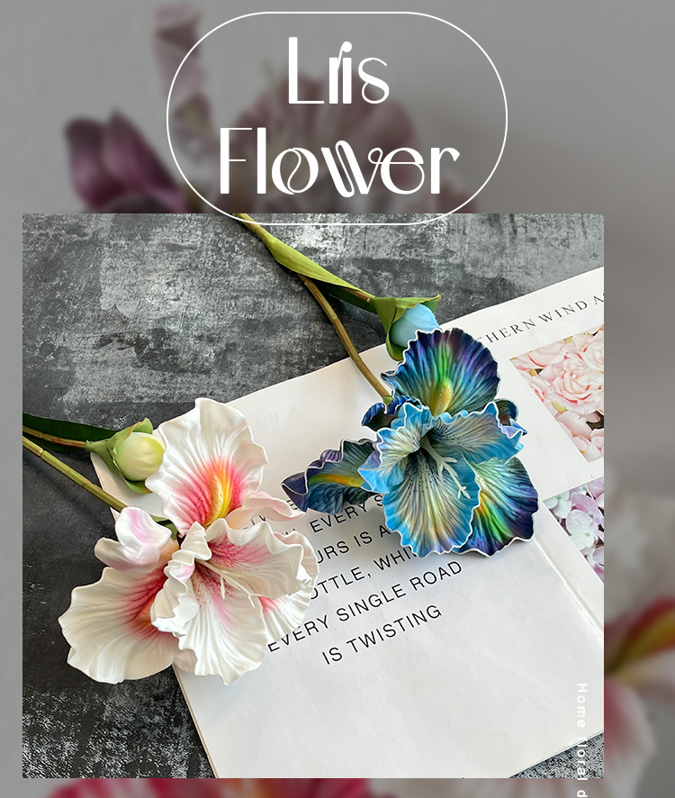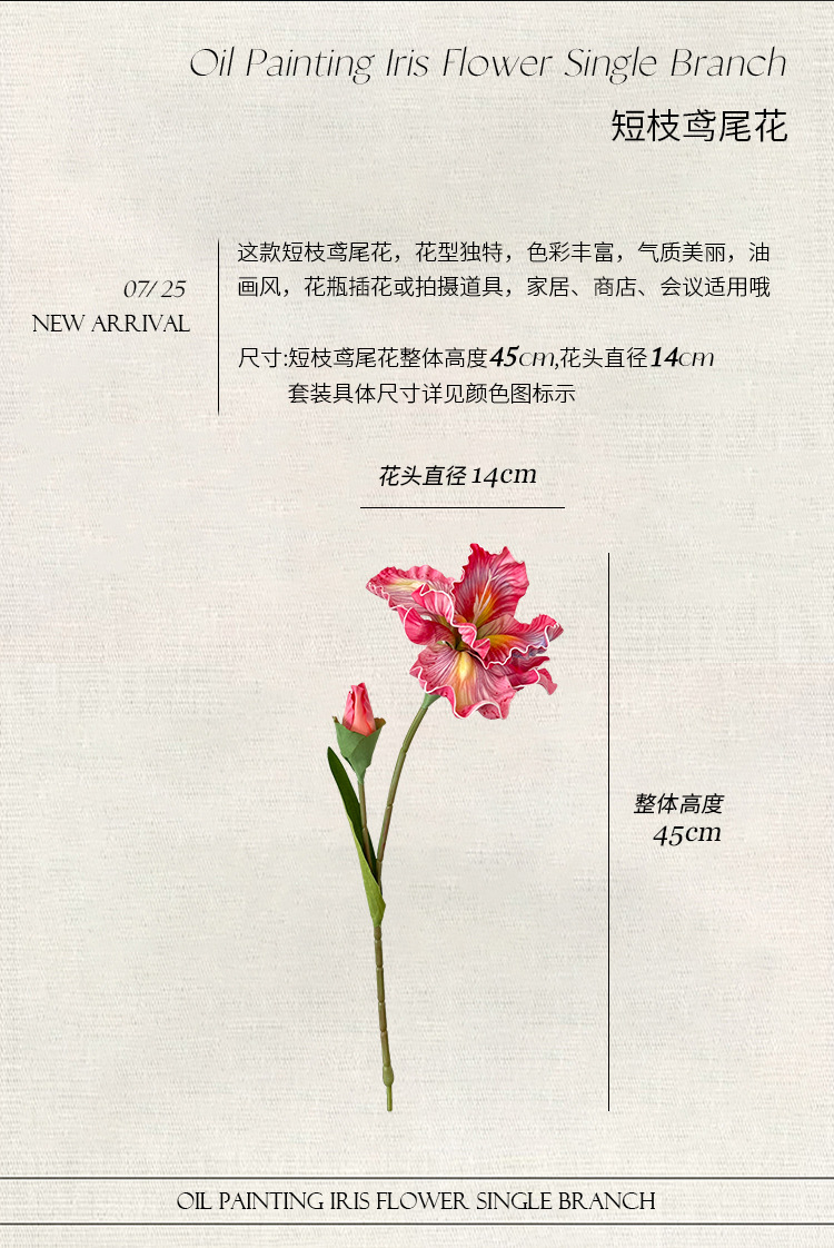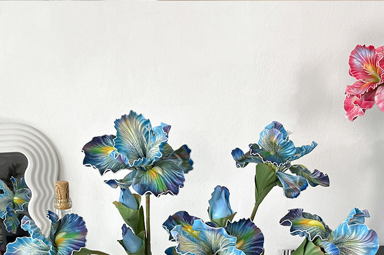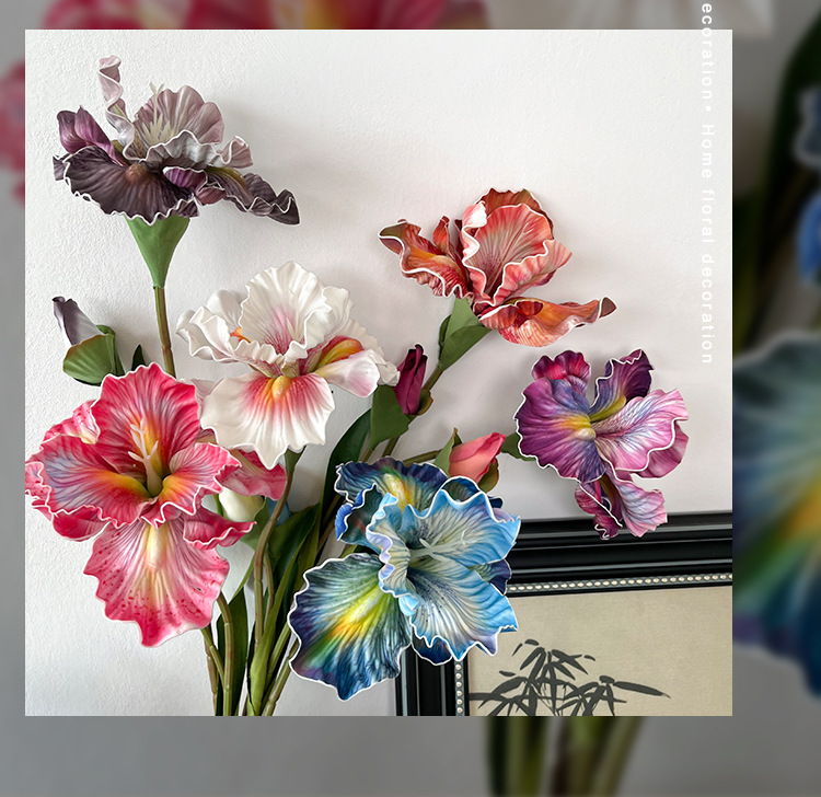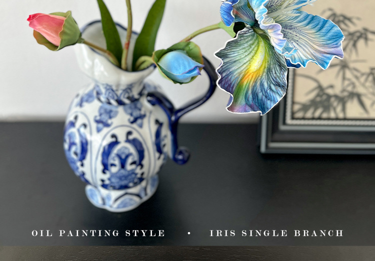 45cm短枝2头鸢尾花爱丽丝EVA手感仿真花自然风油画色假花家居装饰