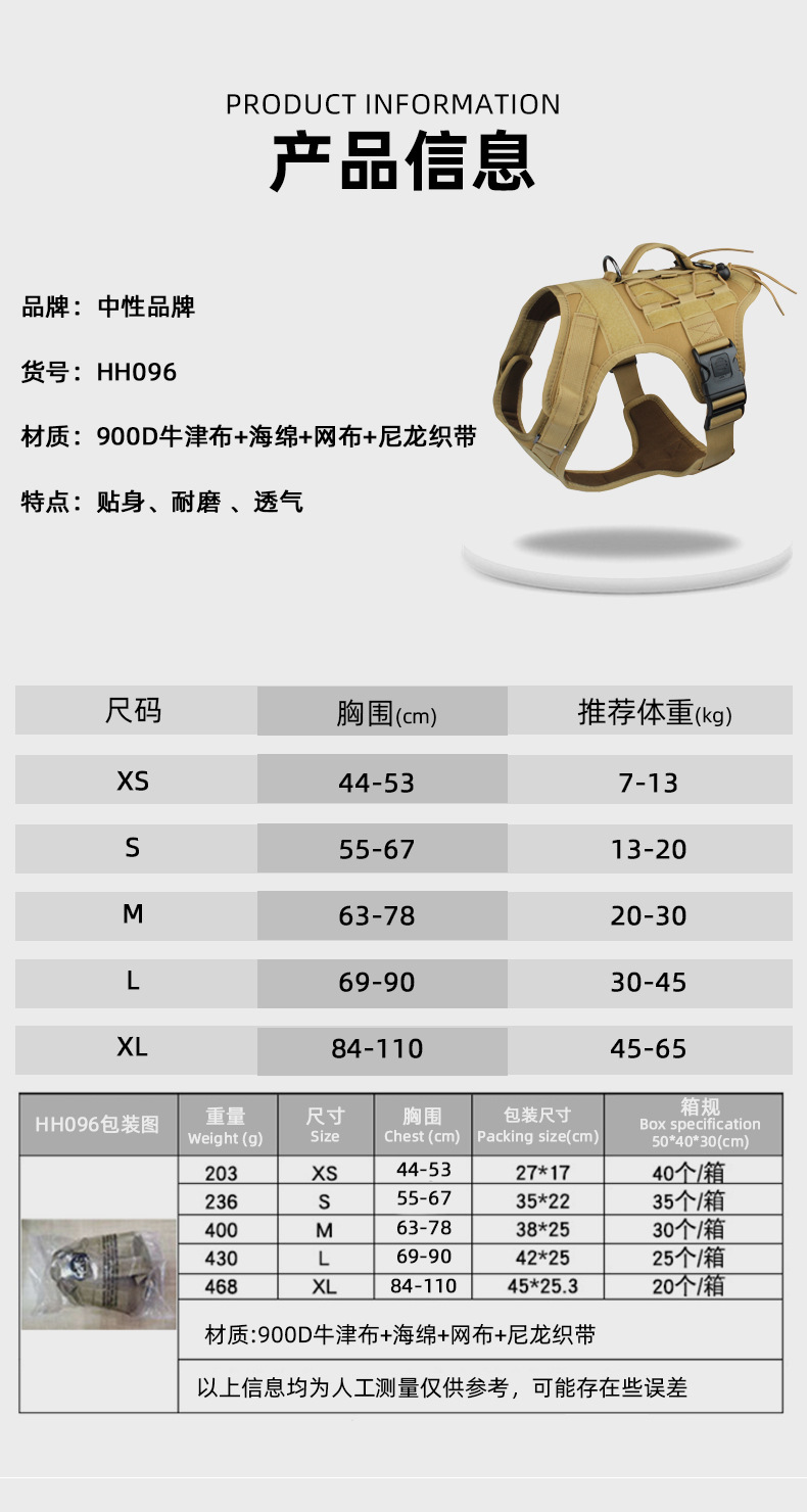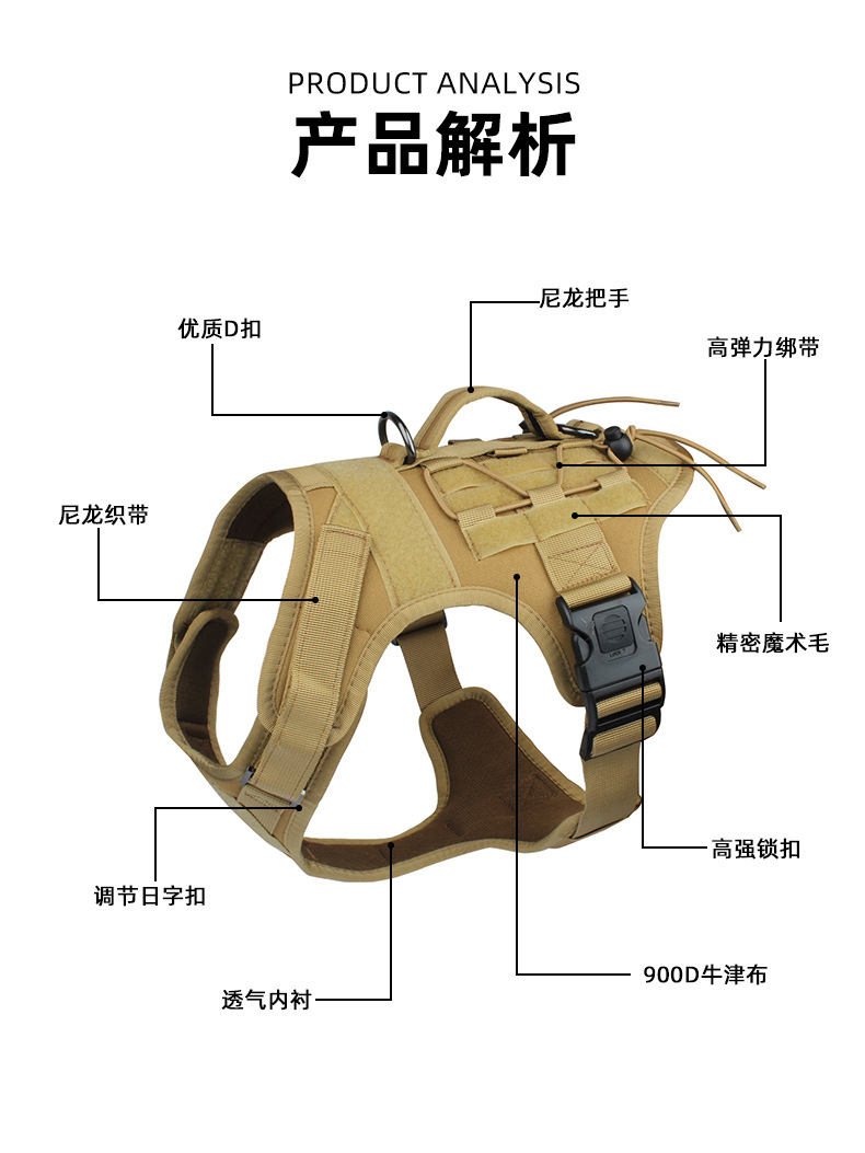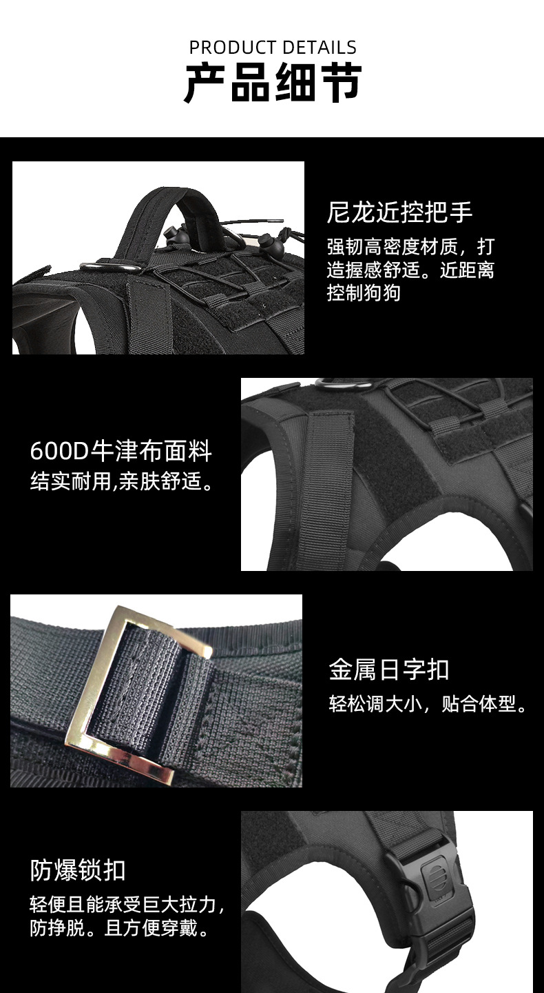 跨境狗狗牵引宠物胸背带防爆冲战术中大型犬狗狗胸背狗绳背带批发