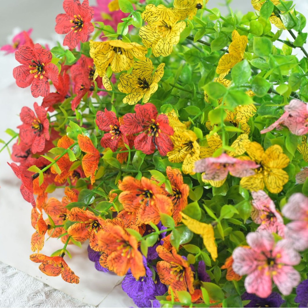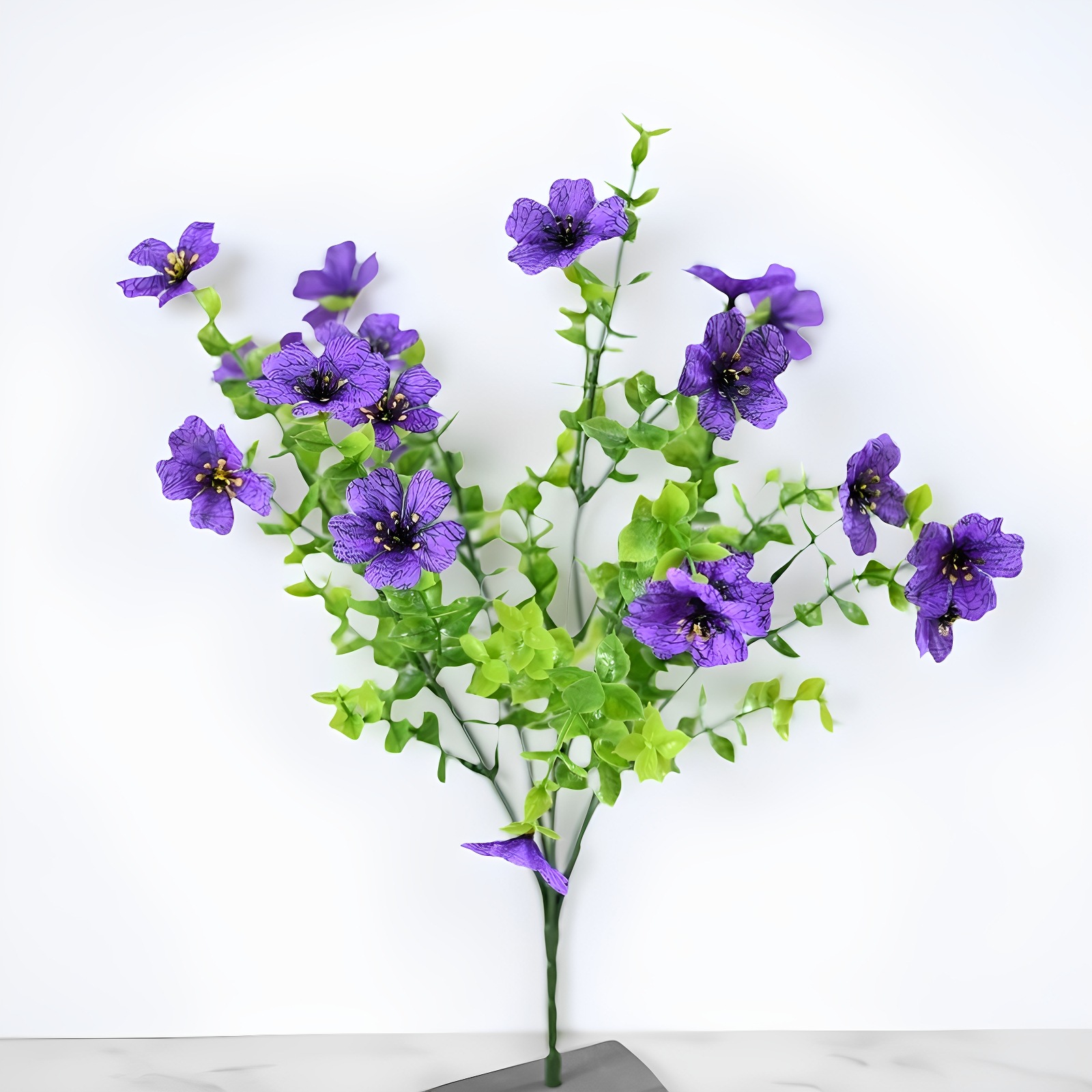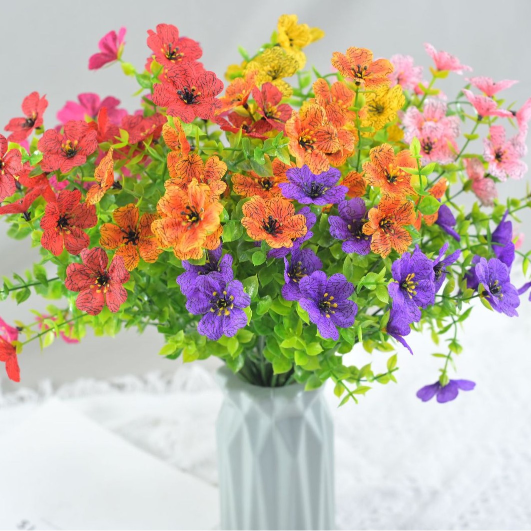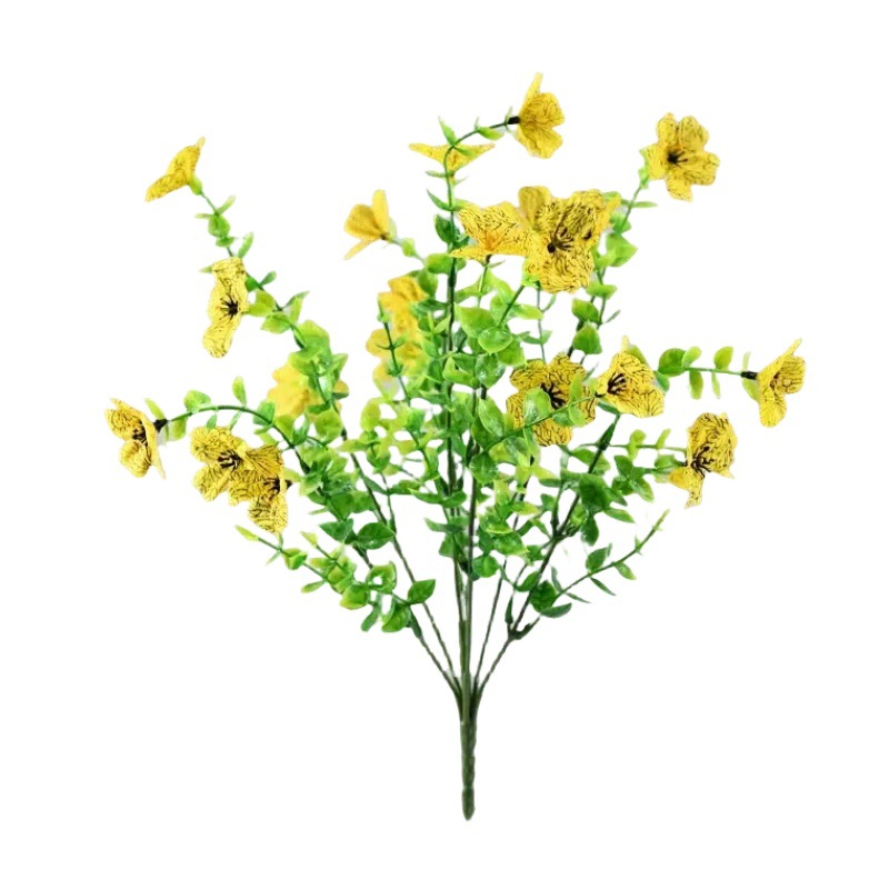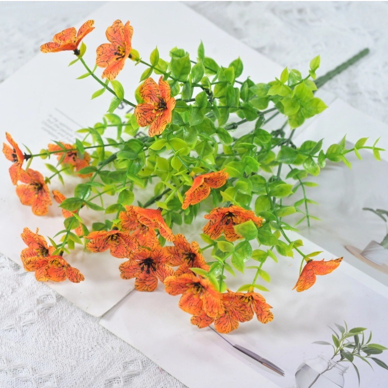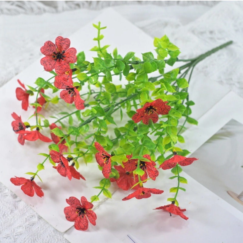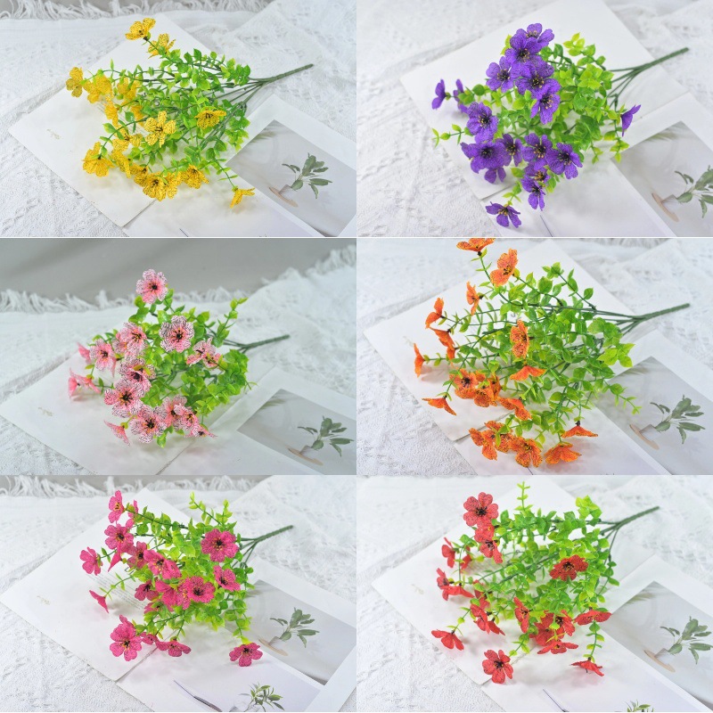 跨境热销仿真绿植七叉尤加利紫罗兰塑料花摄影背景花艺婚礼仿真花