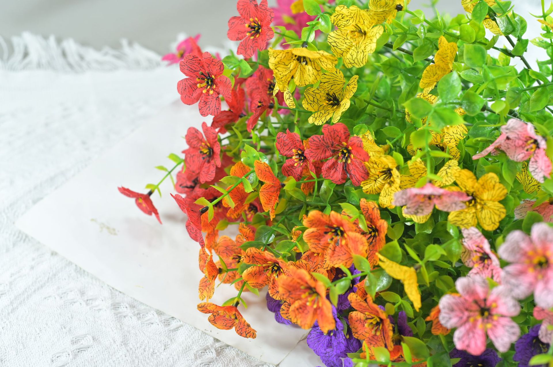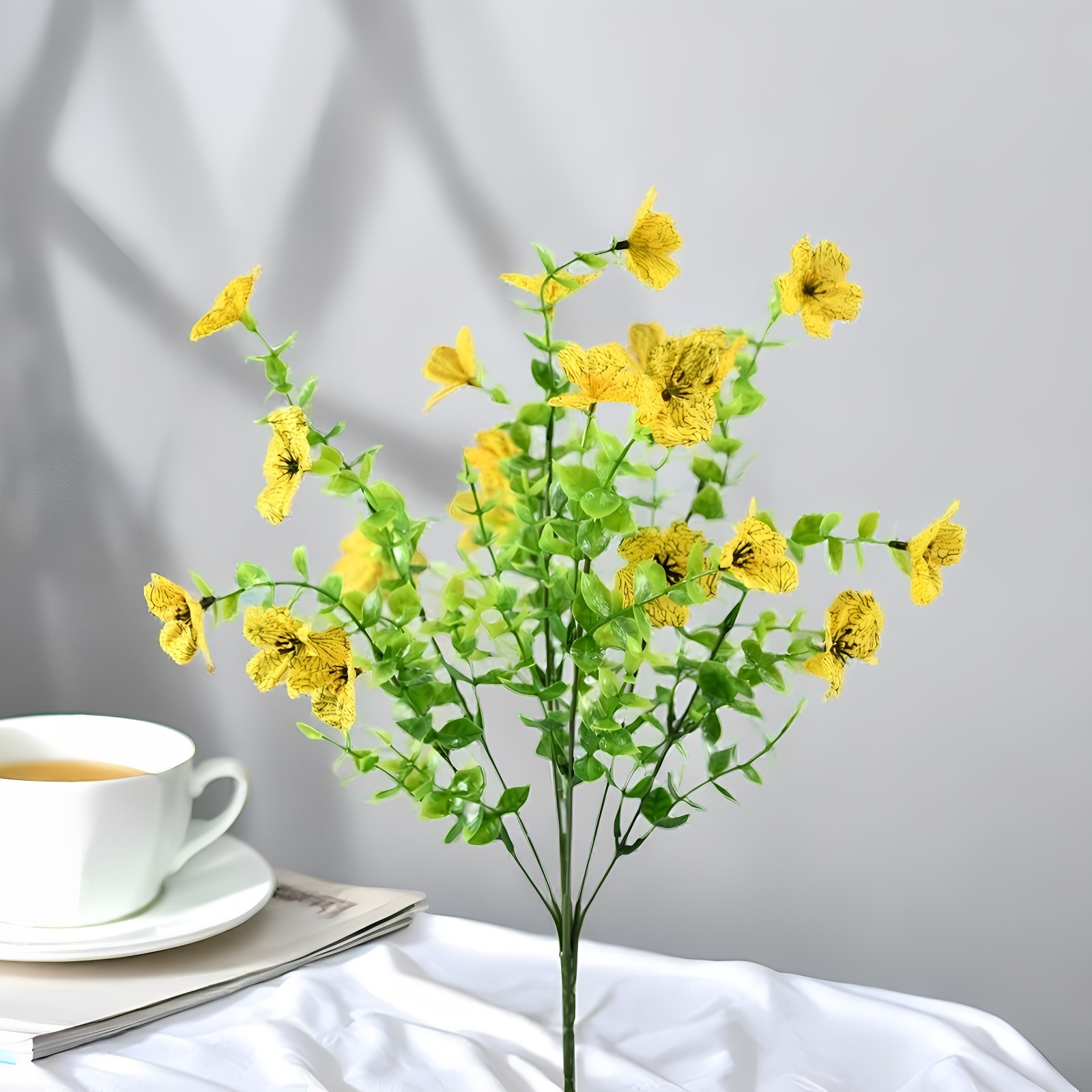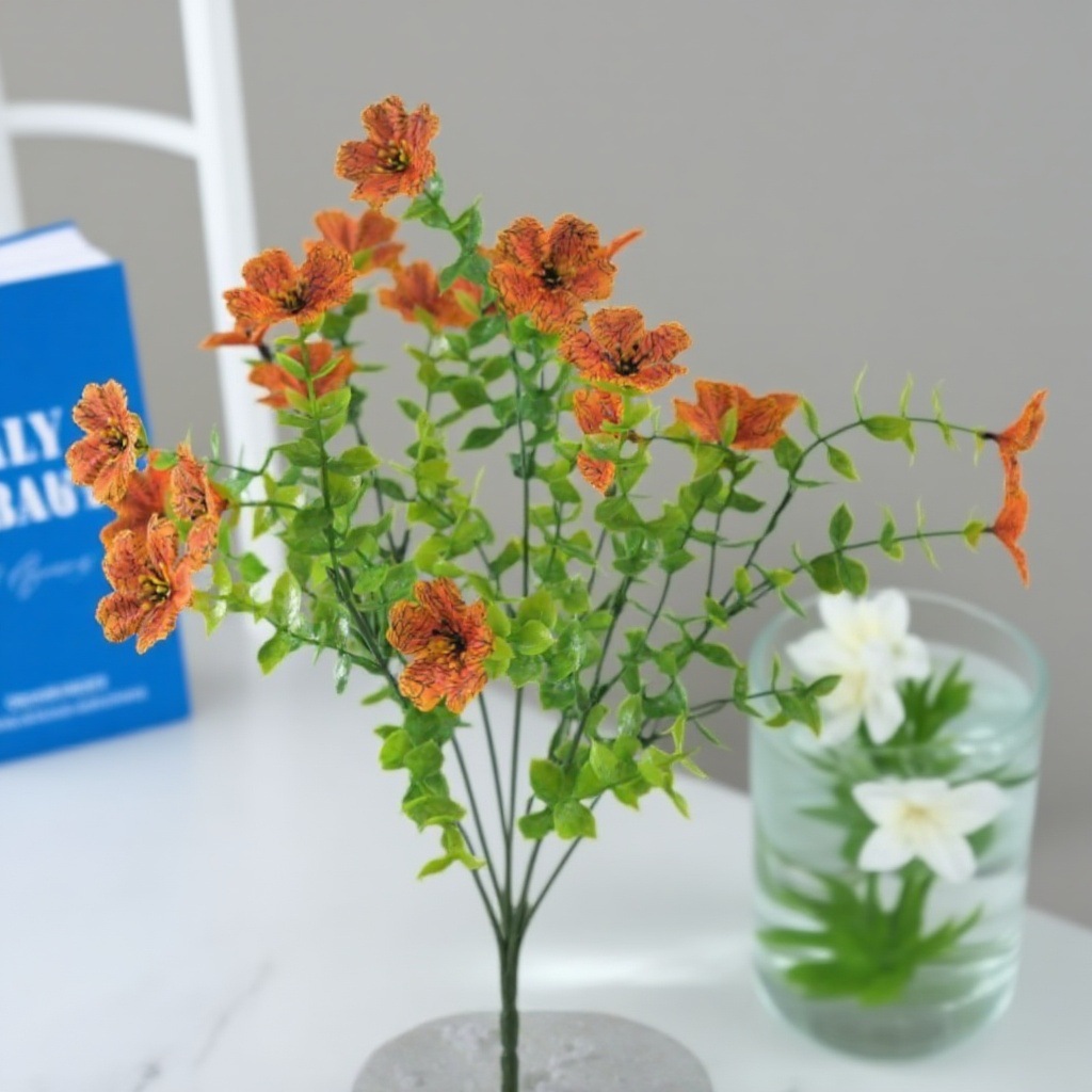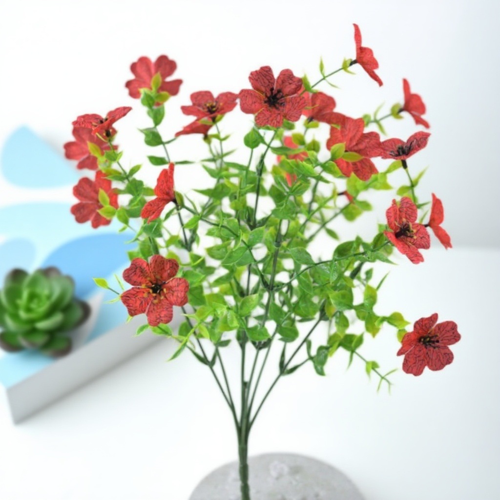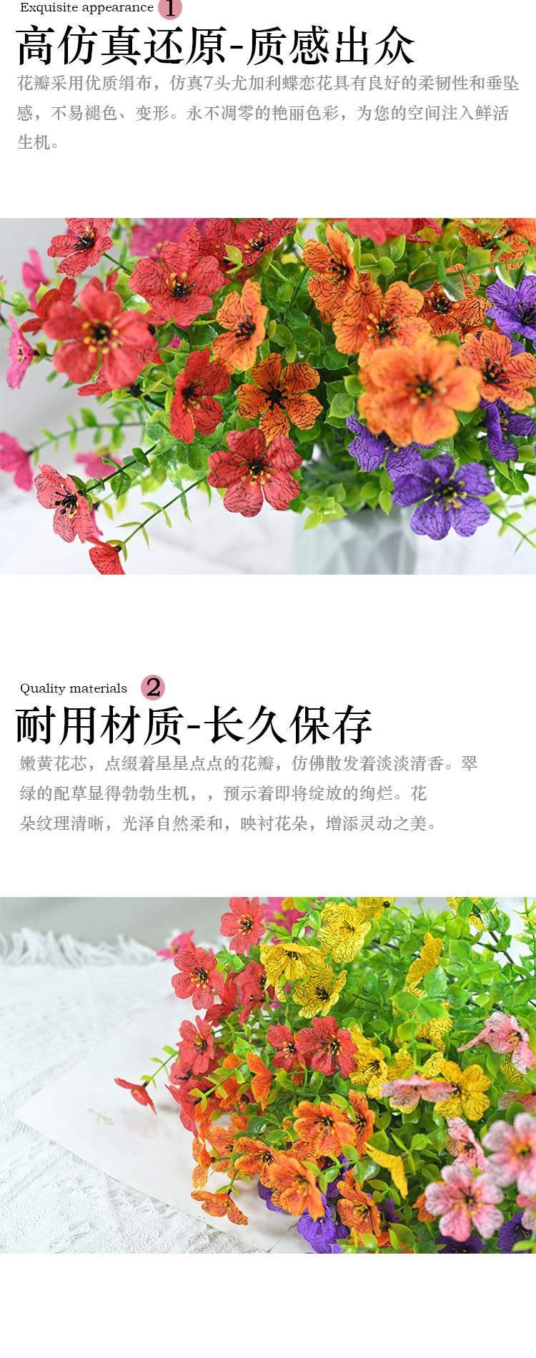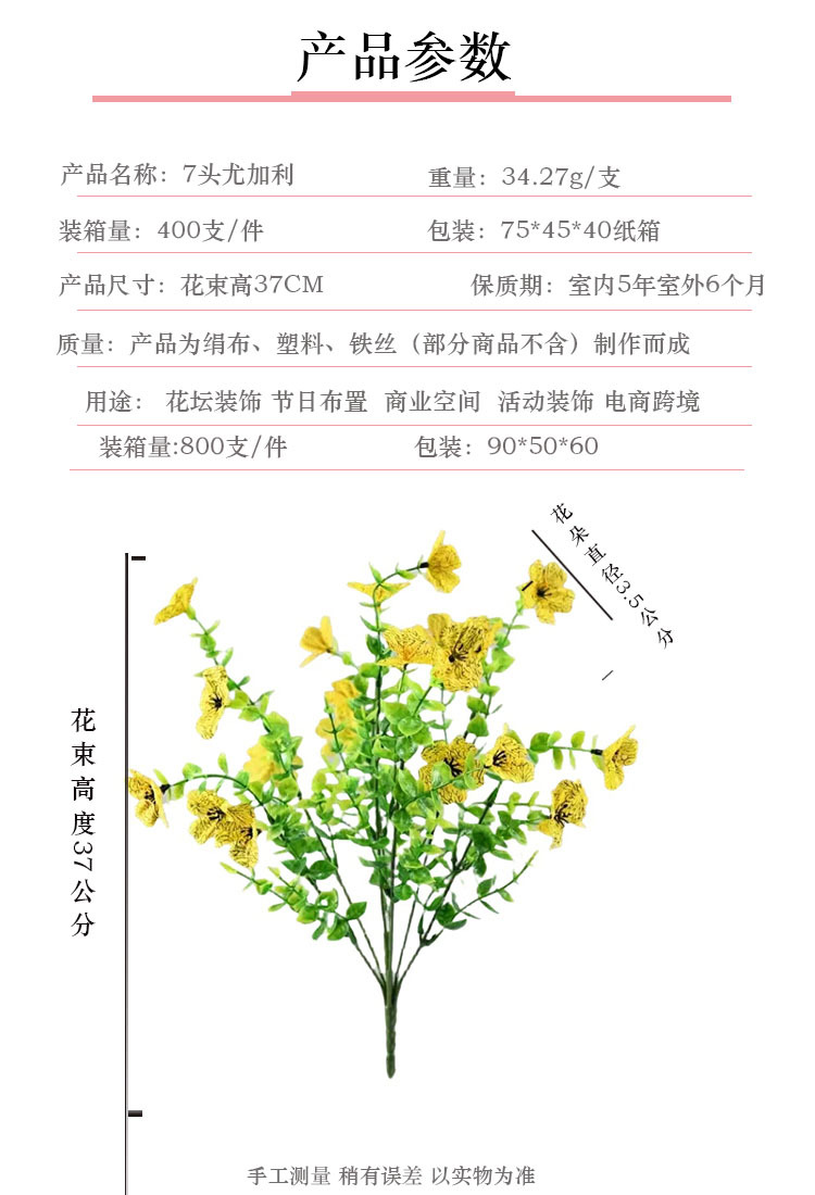 跨境热销仿真绿植七叉尤加利紫罗兰塑料花摄影背景花艺婚礼仿真花