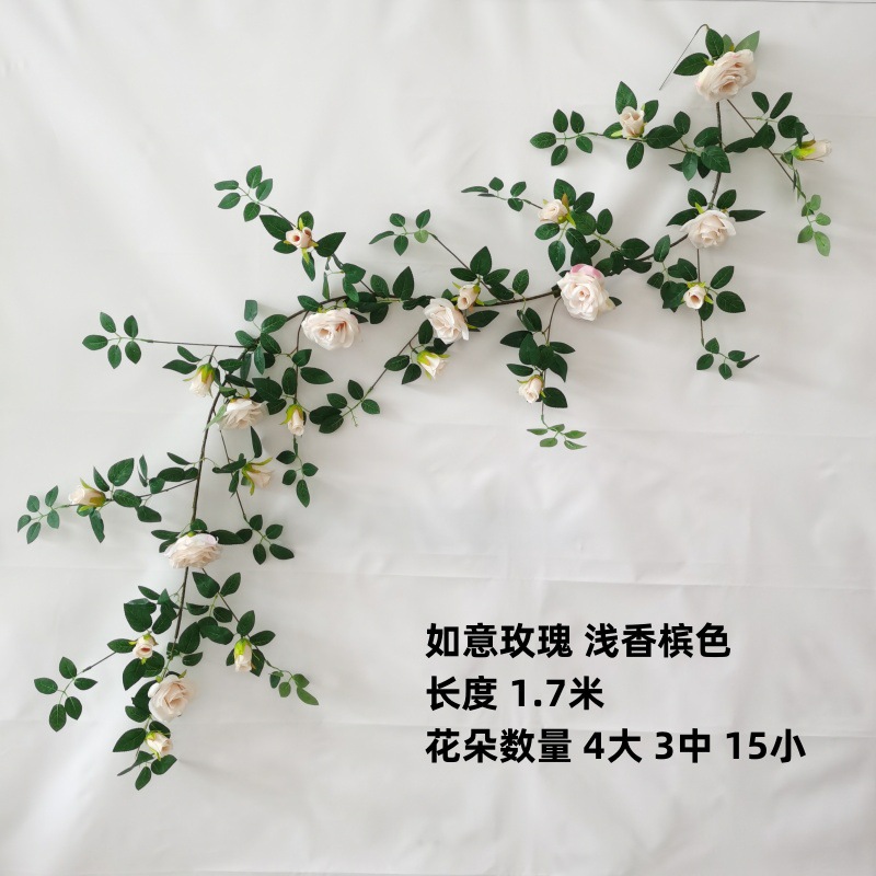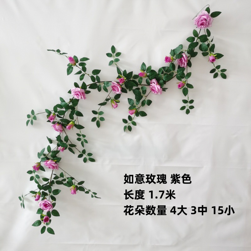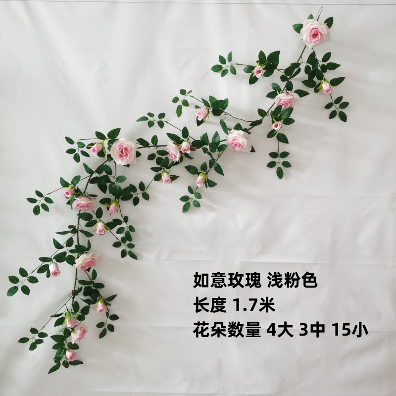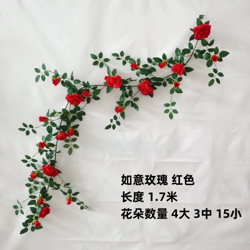仿真铁丝藤玫瑰花装饰花墙网红背景婚庆家居橱窗门头花艺蔷薇花藤