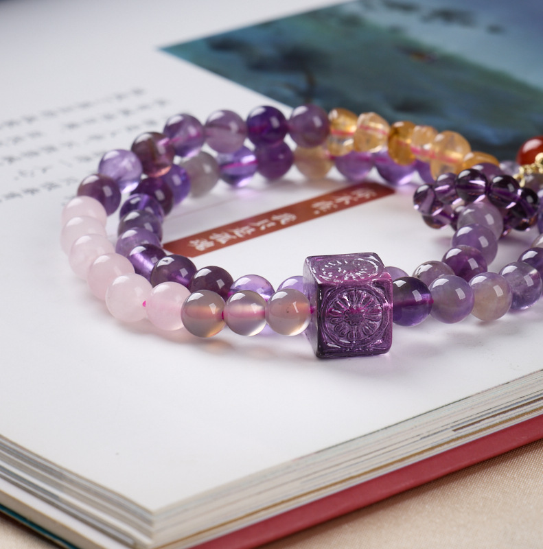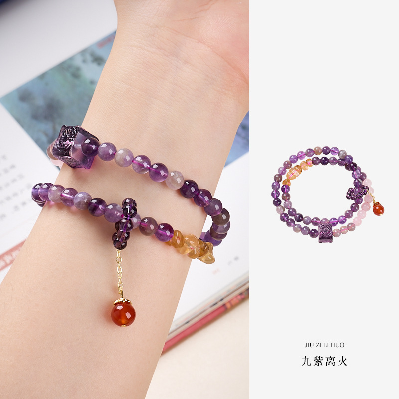九紫离火设计款双圈手串本命年水晶手链水晶紫水晶手链
