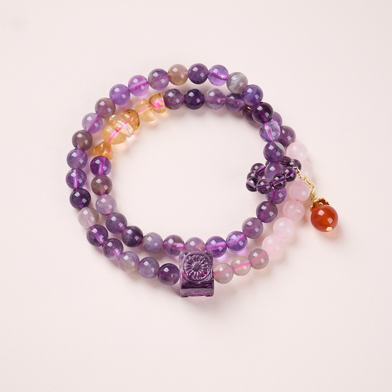 主材:6mm紫水晶,红玛瑙,铜镀金配件