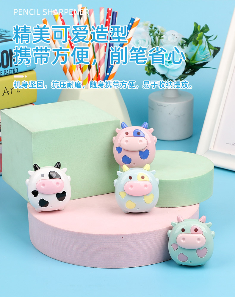 1909小奶牛卷笔刀可爱造型削笔刀儿童创意文具卡通便携式转笔刀