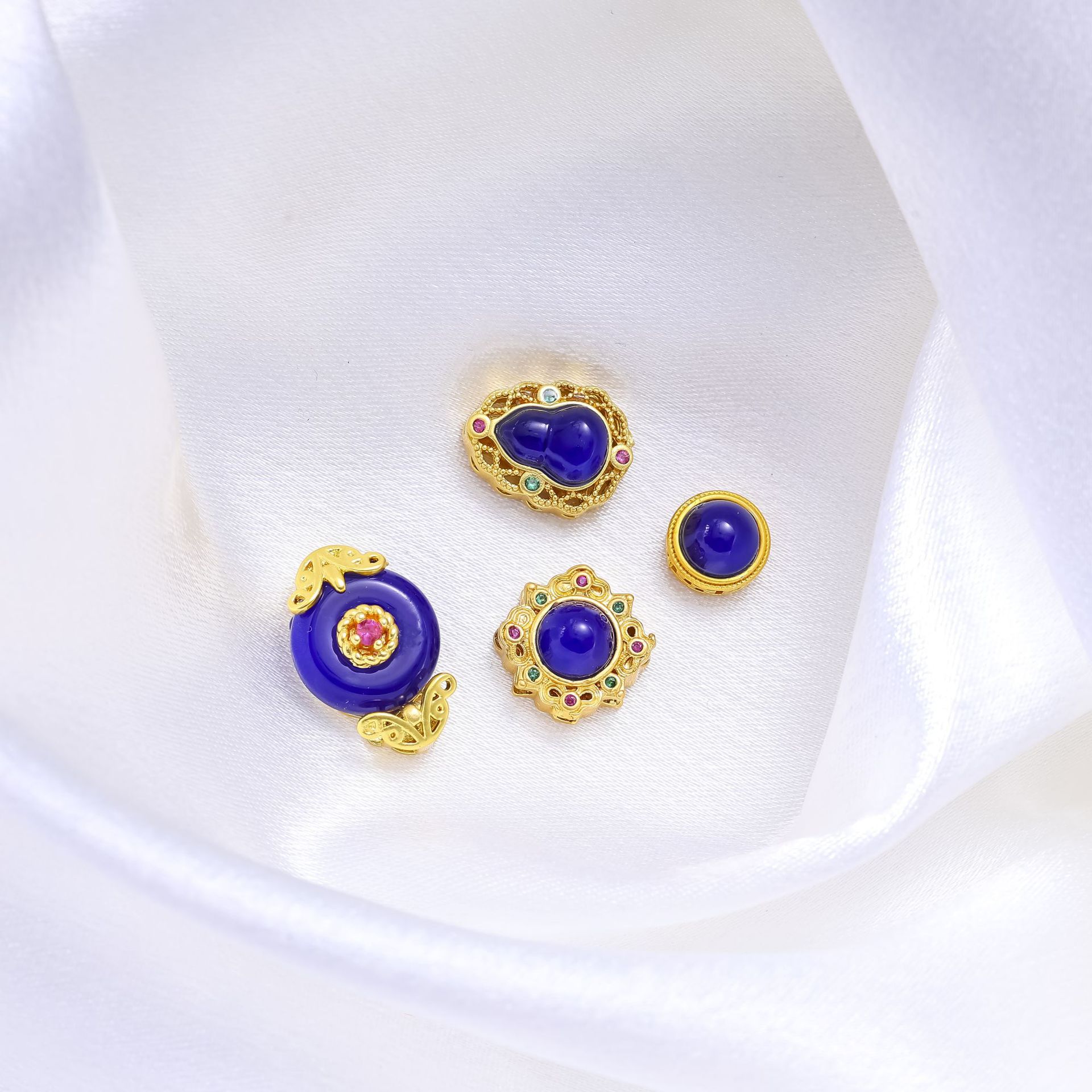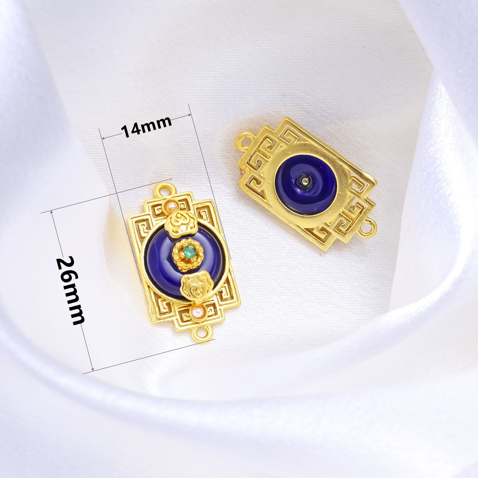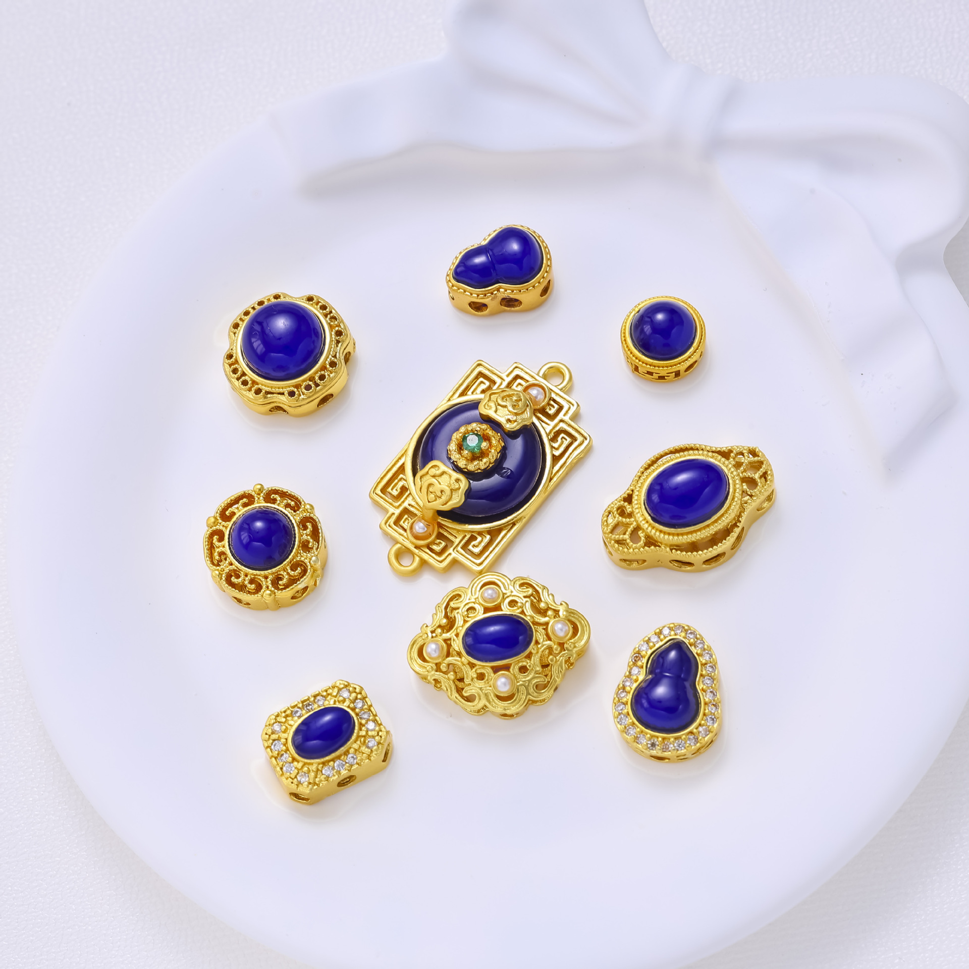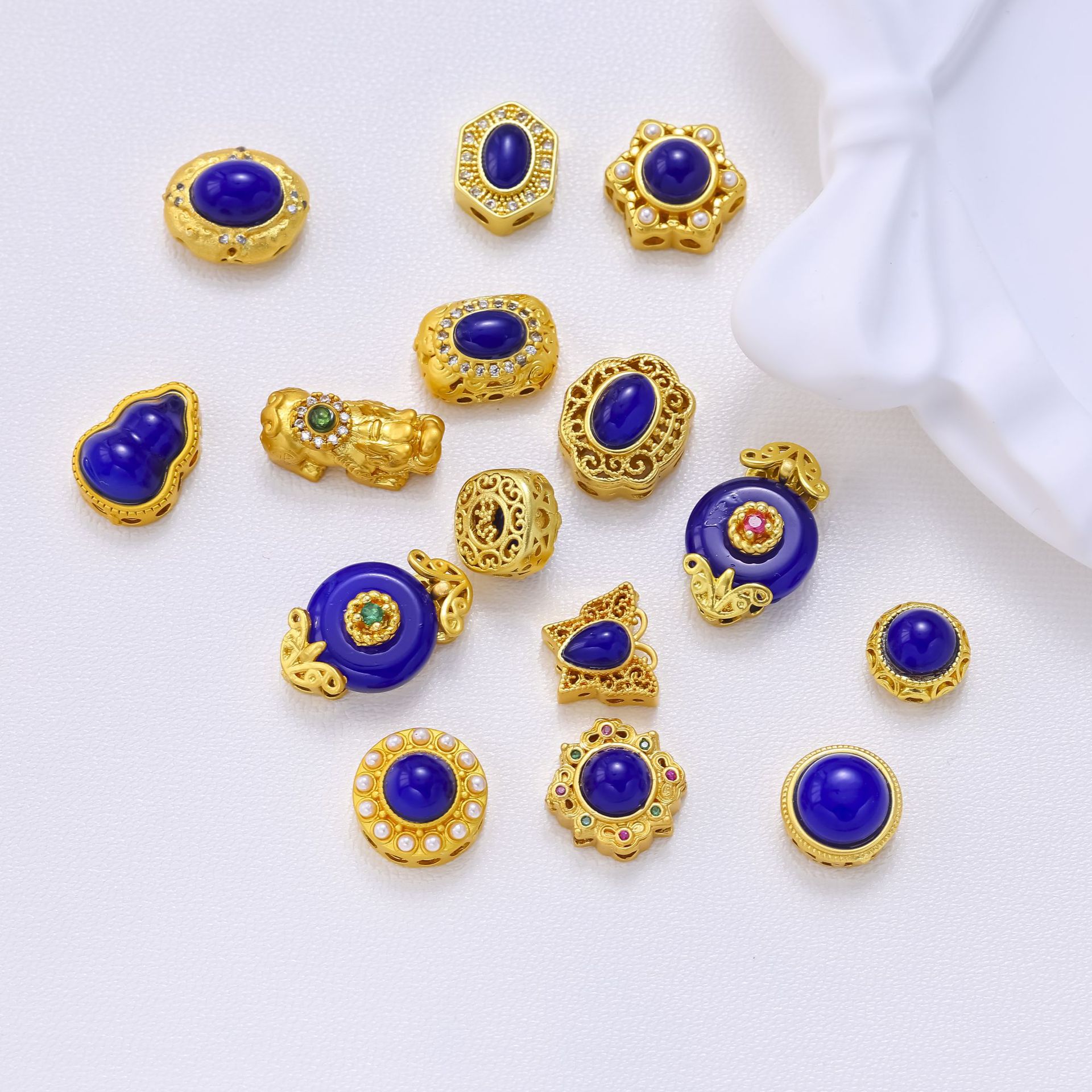 沙金隔珠戒面双吊配件仿青金石手链手串多圈吊坠DIY配件手工饰品