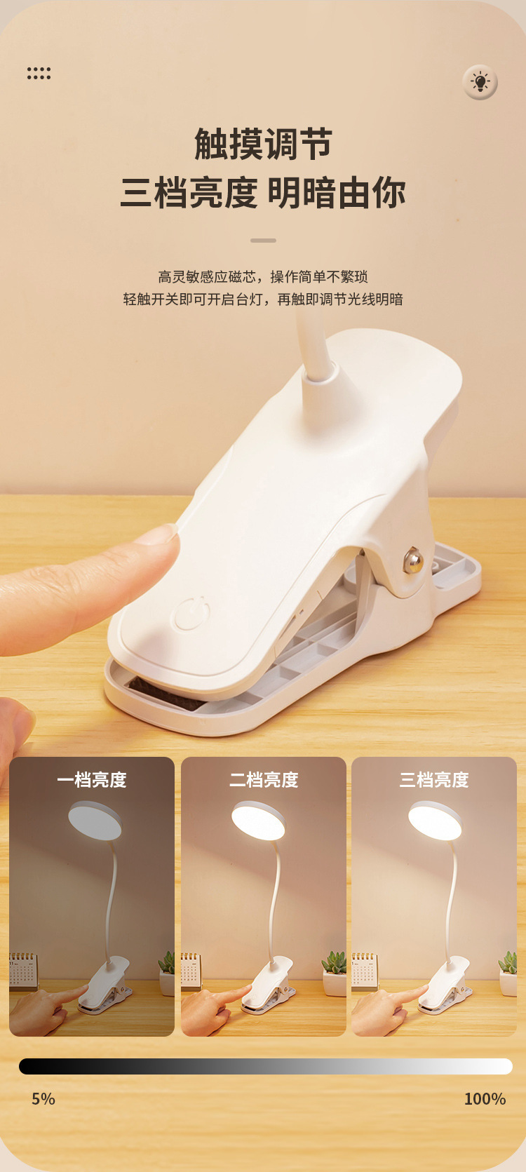 学生学习护眼led台灯创意充电夹子阅读灯宿舍卧室床头灯小夜灯